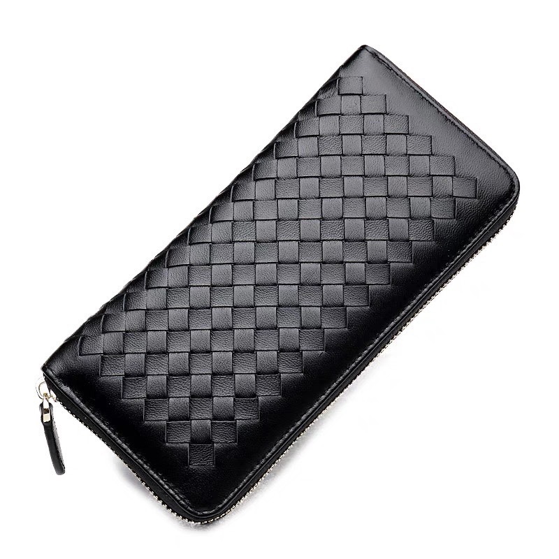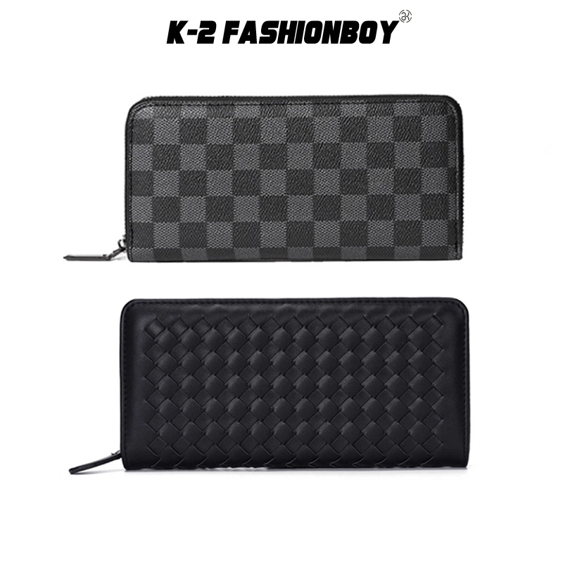 【K-2】高質感 方格 編織 皮革 經典紋路 長夾 手拿包 皮包 錢包 禮物 包 情侶 皮夾【KM70】方格|編織Long WalletsK-2 Fashionboy