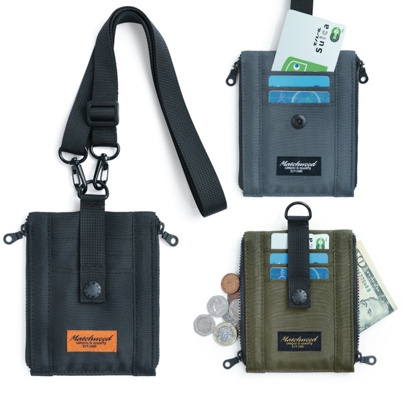【Matchwood】Defty 多用途頸掛斜背小袋 收納錢包 證件套 附背帶 共三色 WL-008黑色款|橄欖綠|灰色款Bifold & Trifold WalletsKIPLEO