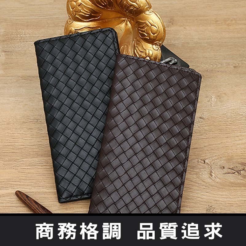 編織紋錢包 男長款 休閒 多卡位 錢夾 青年 豎款 男士 錢夾子 編織紋 男士長款 休閒多卡位錢夾 男款豎款錢夾 錢包時尚黑|大地棕Long WalletsHJBag旗艦店