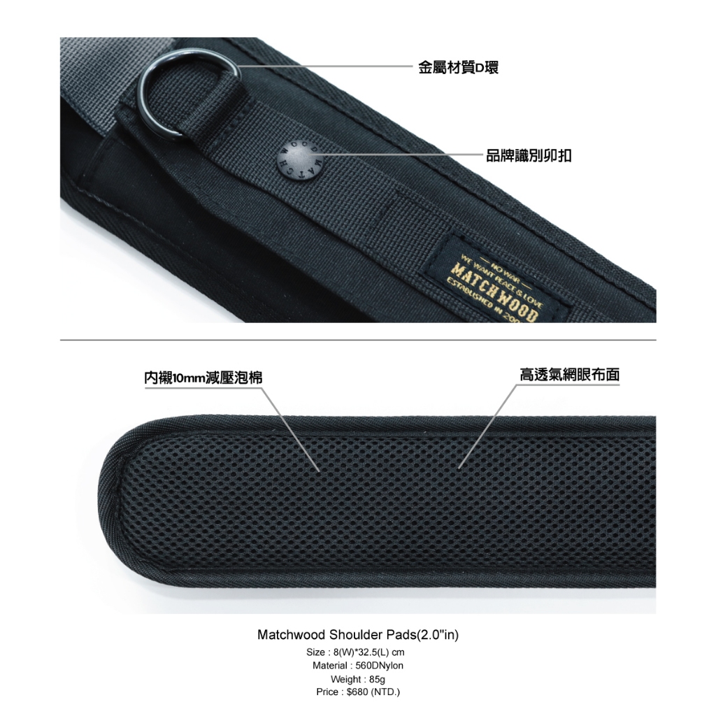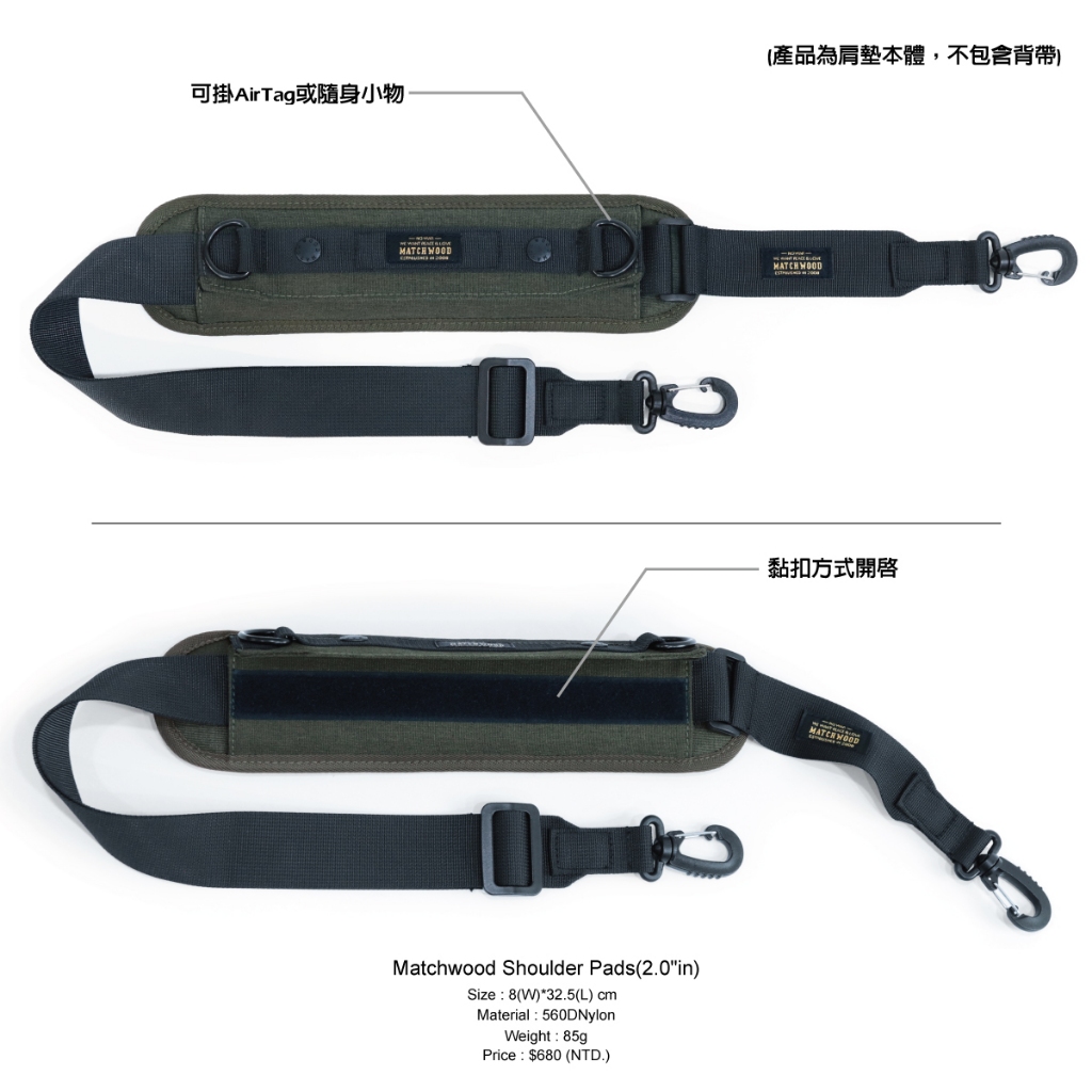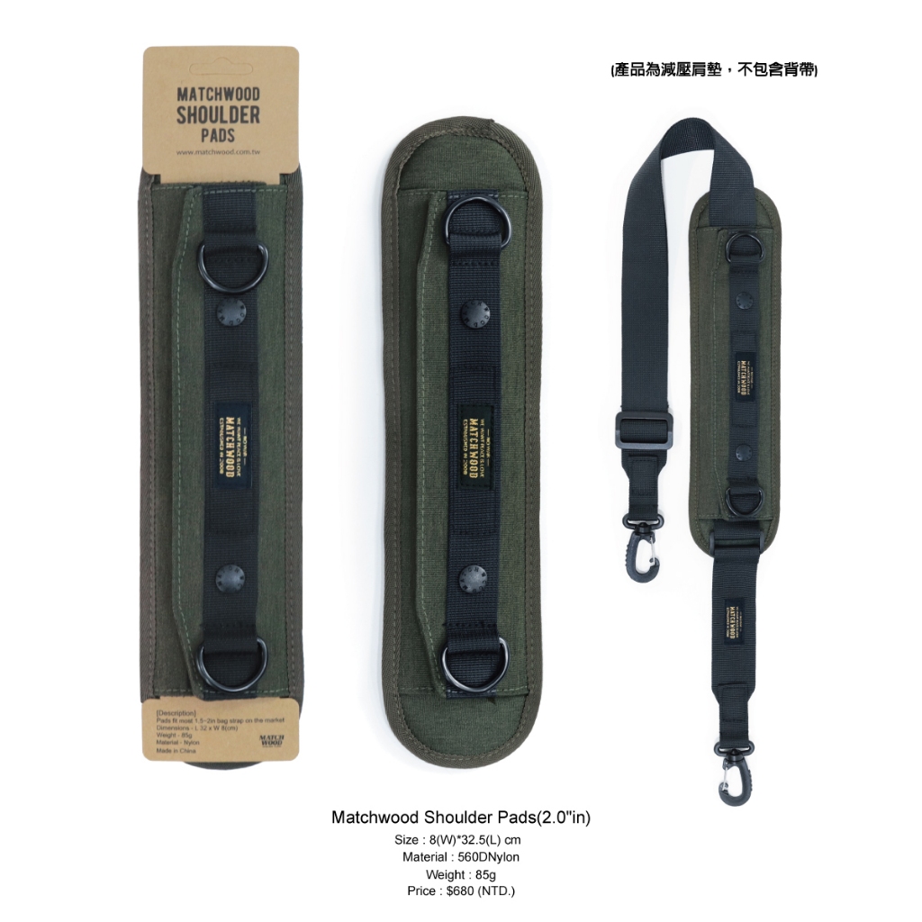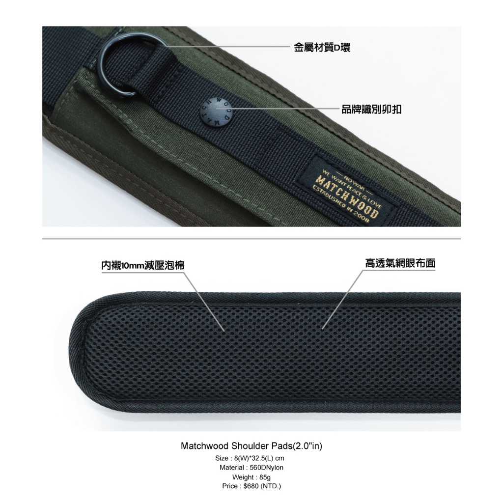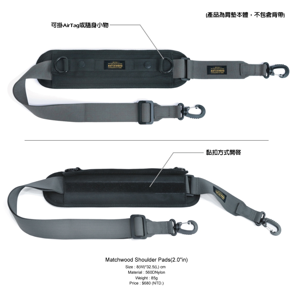 Matchwood Shoulder Pads (2.0″in) 中大型斜背包減壓肩墊 寬版背帶專用減壓墊 官方賣場黑底金標款|黑底橘標款|軍綠金標款matchwood