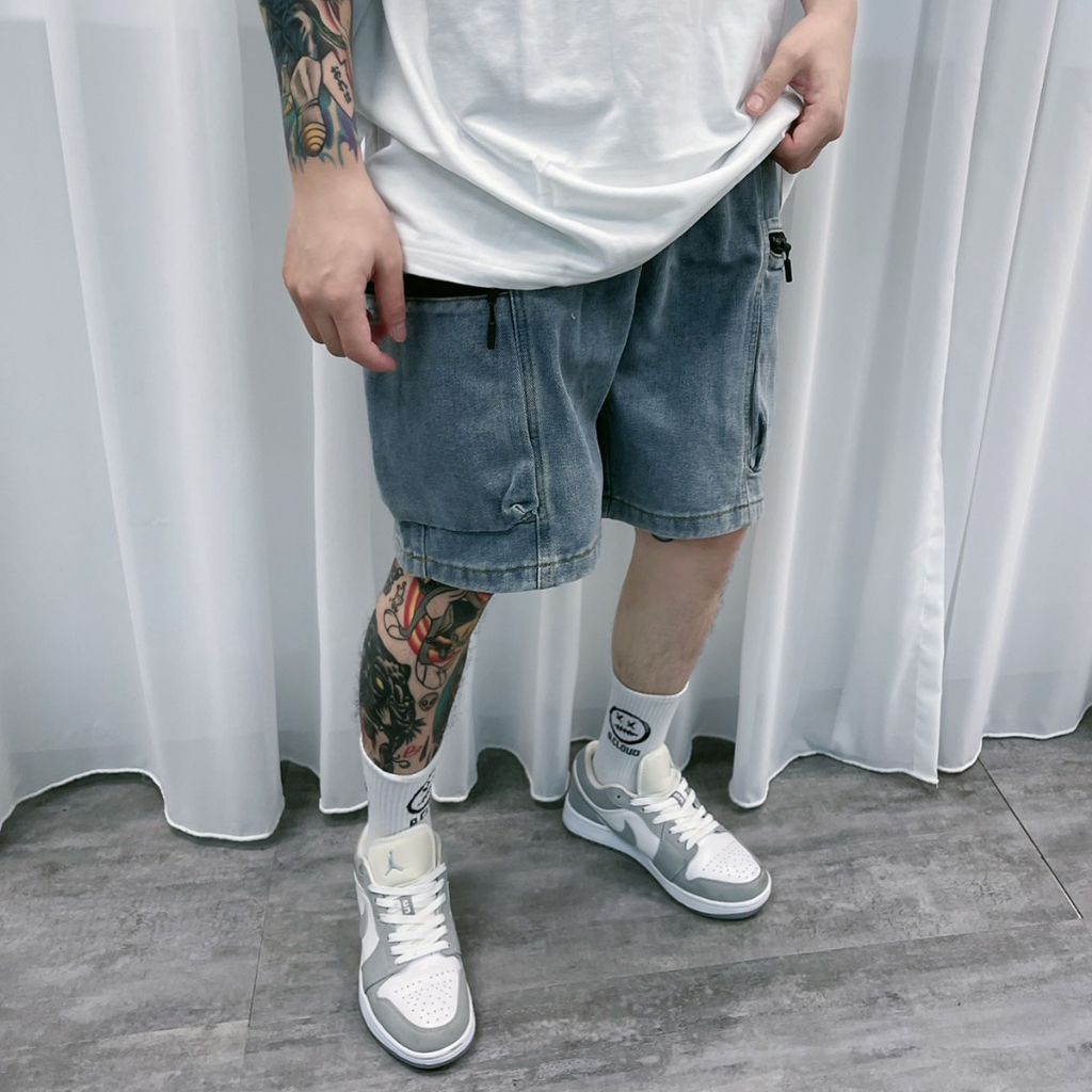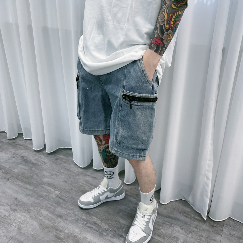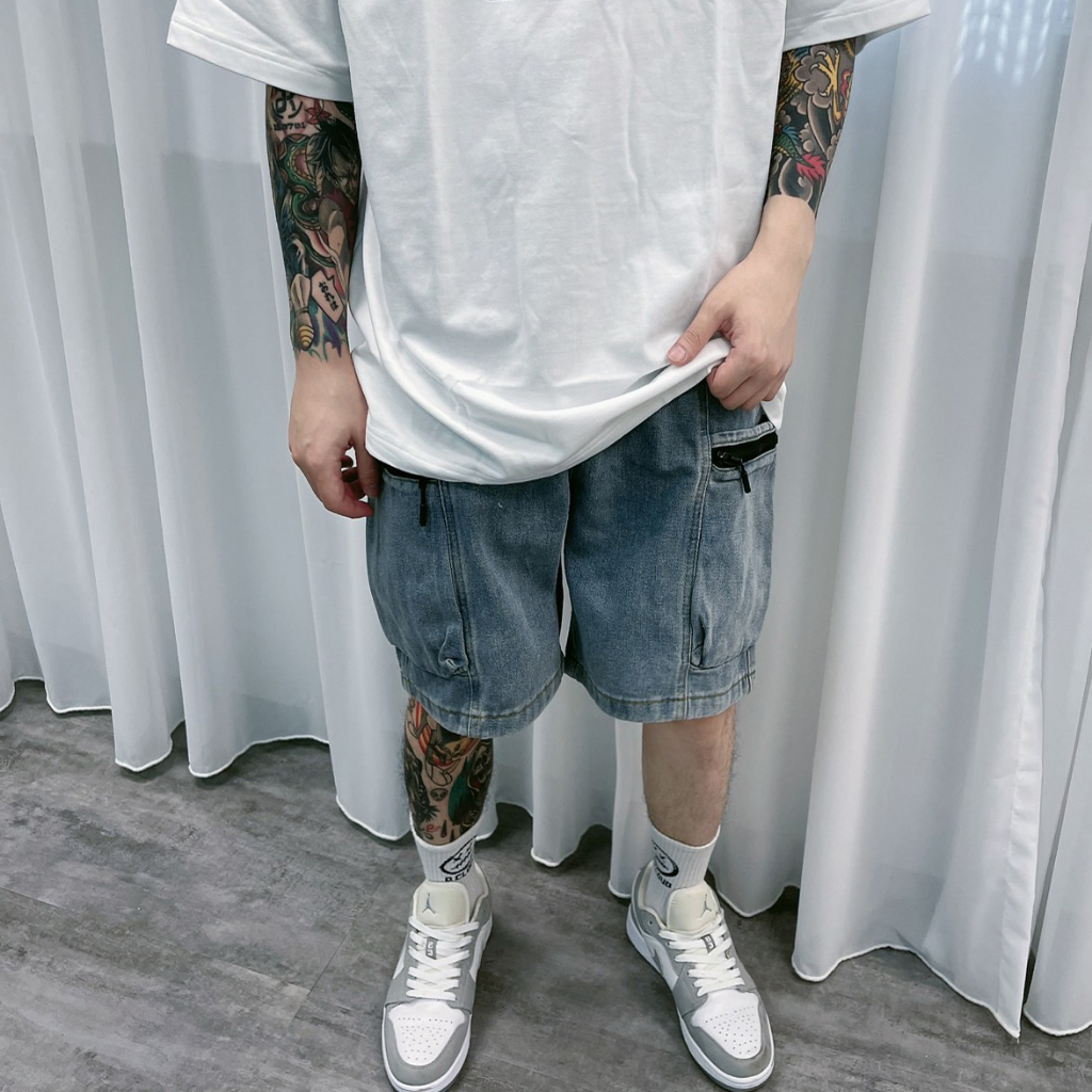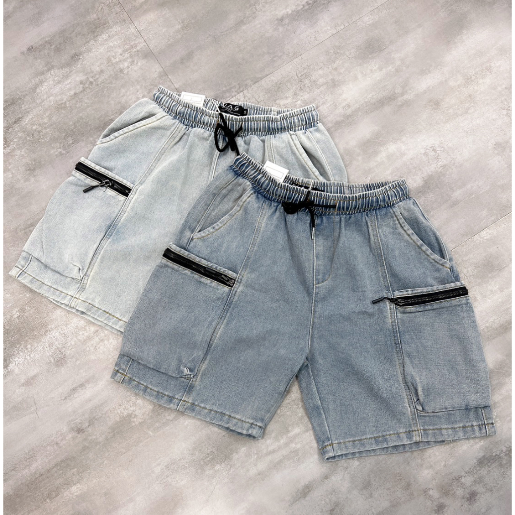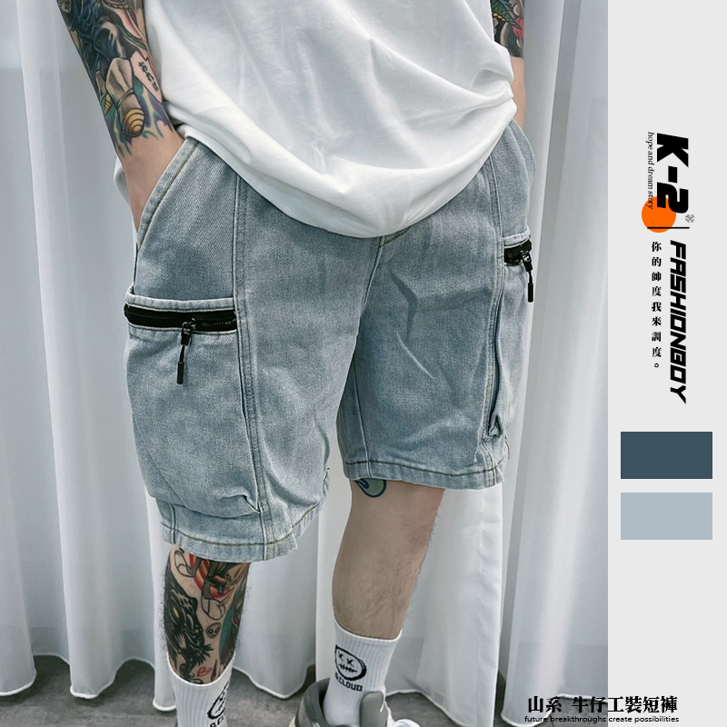【K-2】山系 拉鍊口袋 側面大口袋 工裝 牛仔短褲 短褲 鬆緊腰頭 抽繩 穿搭 舒適 休閒 中性【C69555】深藍,XXL|淺藍,XXL|深藍,L|深藍,XL|淺藍,M|淺藍,L|淺藍,XL|深藍,MK-2 Fashionboy