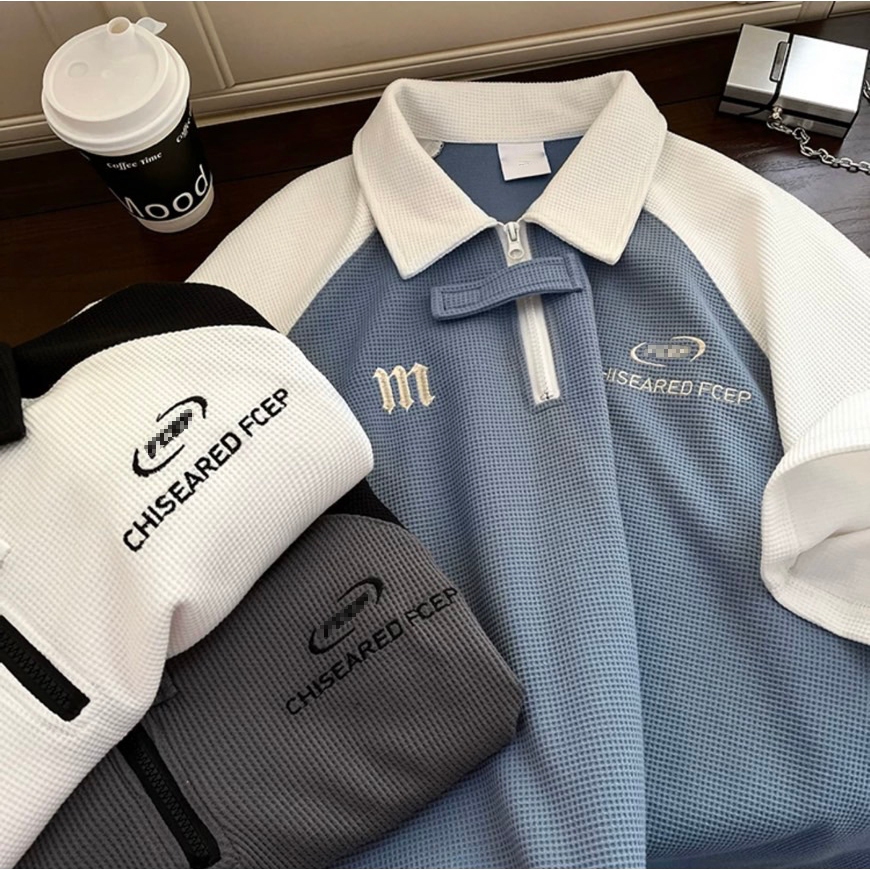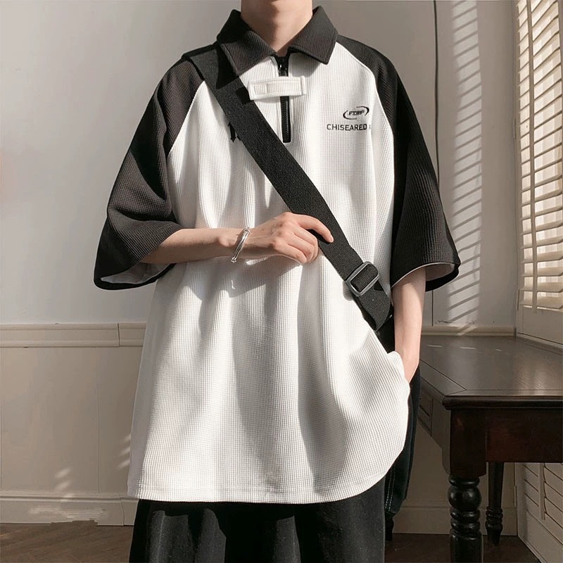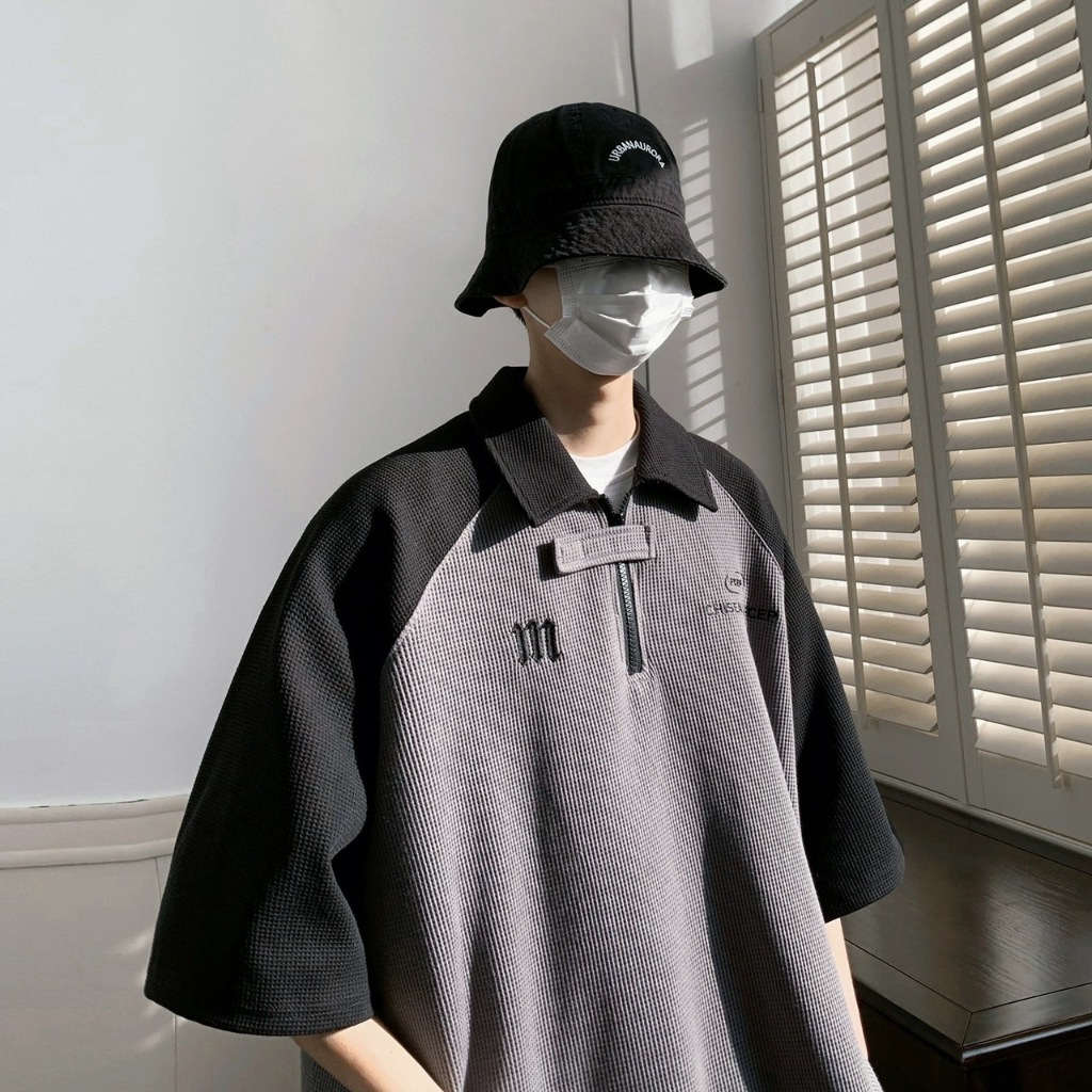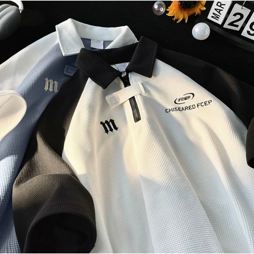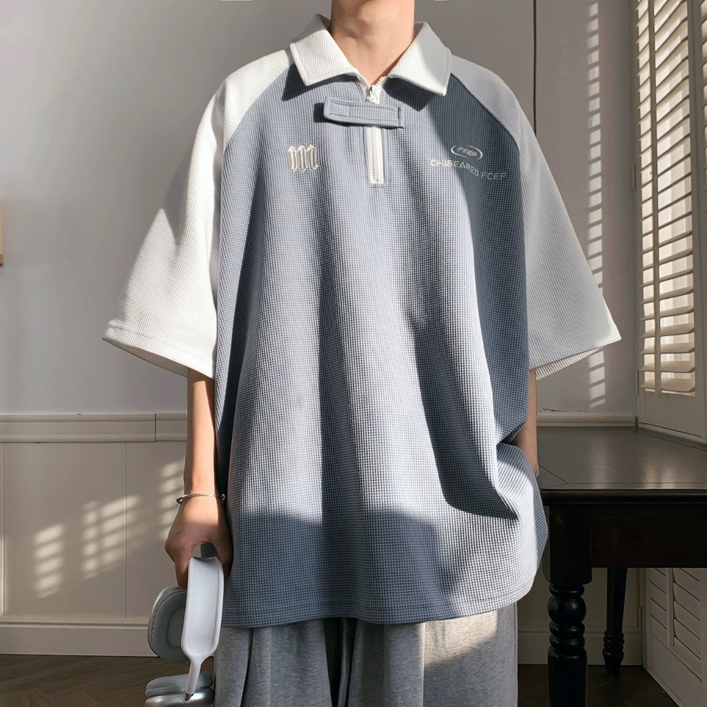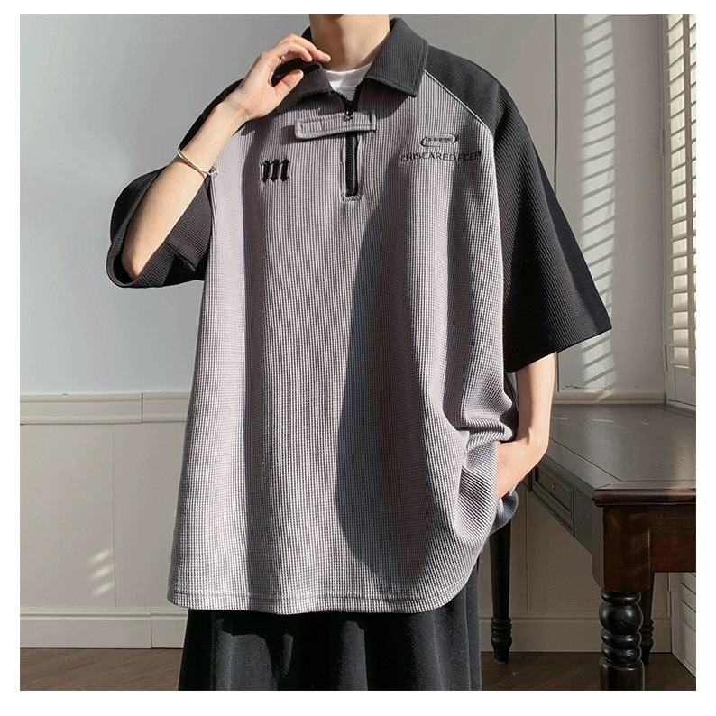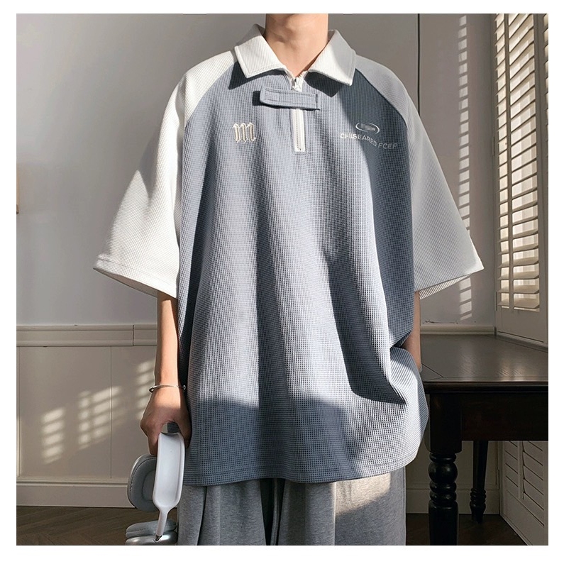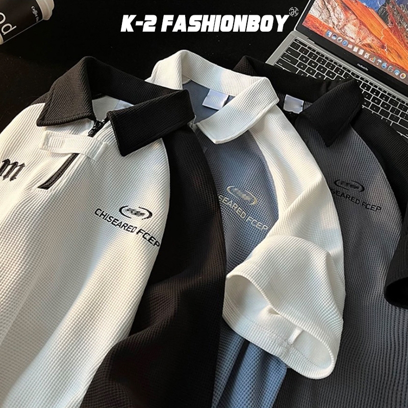 【K-2】夏季短袖POLO衫 拼接色 撞色 小眾設計感 翻領 短袖 華夫格 寬鬆上衣 刺繡 造型 短T M【KY27】白色,M|白色,L|白色,XL|白色,2XL|白色,3XL|深灰色,M|深灰色,L|深灰色,XL|深灰色,2XL|深灰色,3XL|藍色,M|藍色,L|藍色,XL|藍色,2XL|藍色,3XLPolo ShirtsK-2 Fashionboy