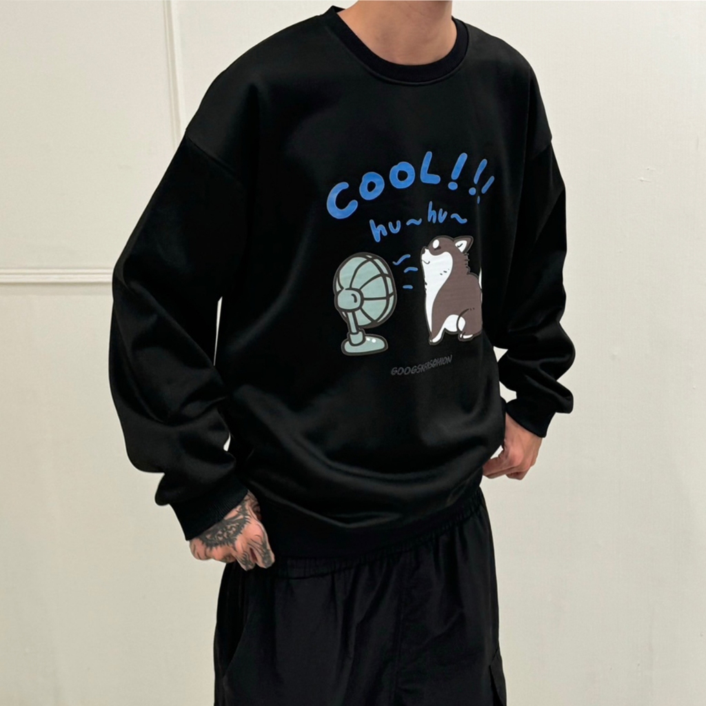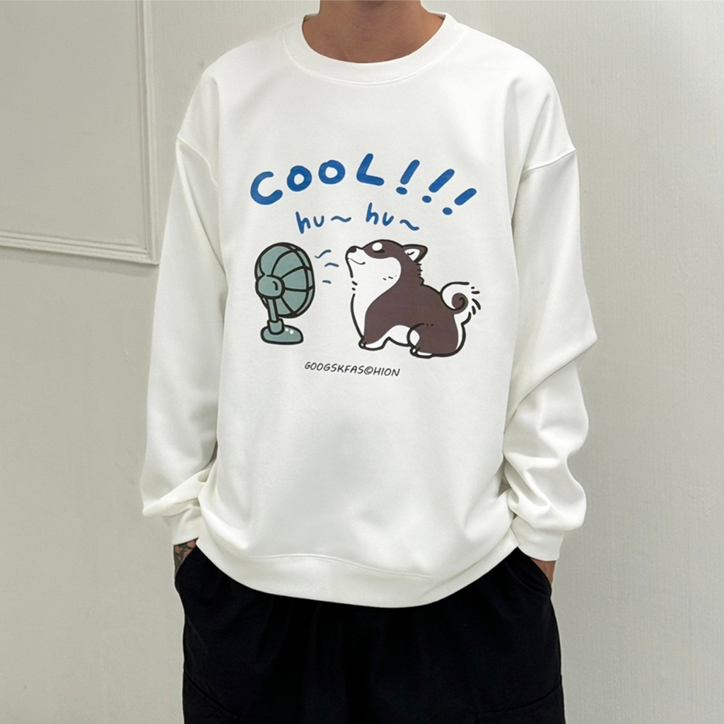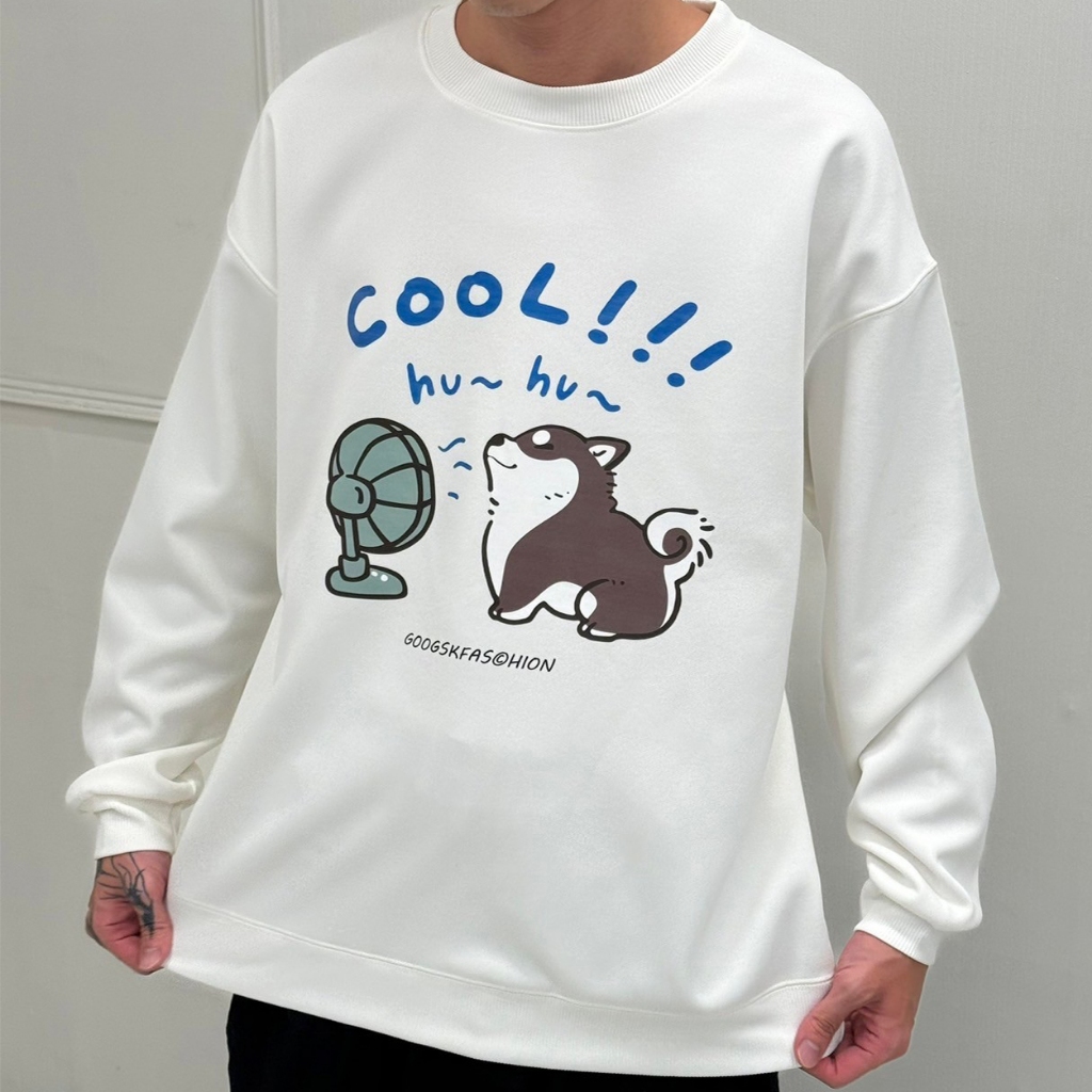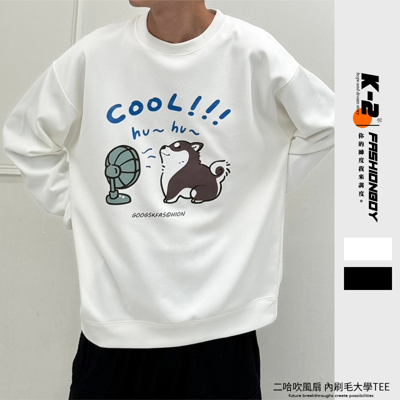 【K-2】COOL 哈士奇吹風扇 二哈 可愛 內刷毛 大學T 牛奶絨 寬鬆大學T 狗狗 大學踢 小狗 Y2K【W79】白色,M|白色,L|黑色,M|黑色,LSweatshirtsK-2 Fashionboy