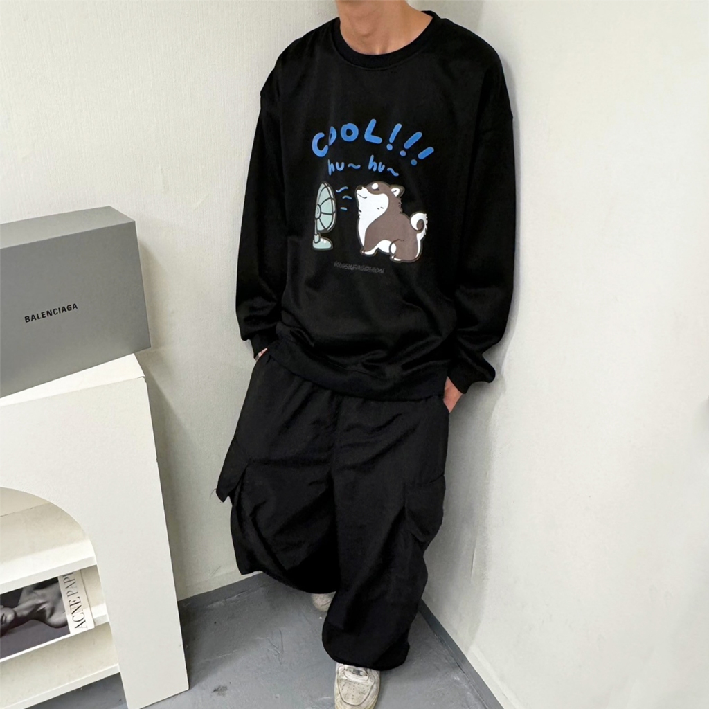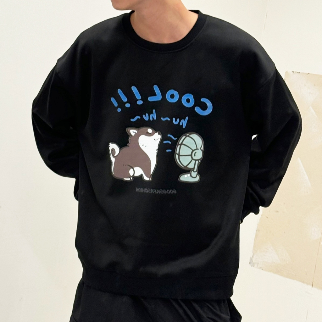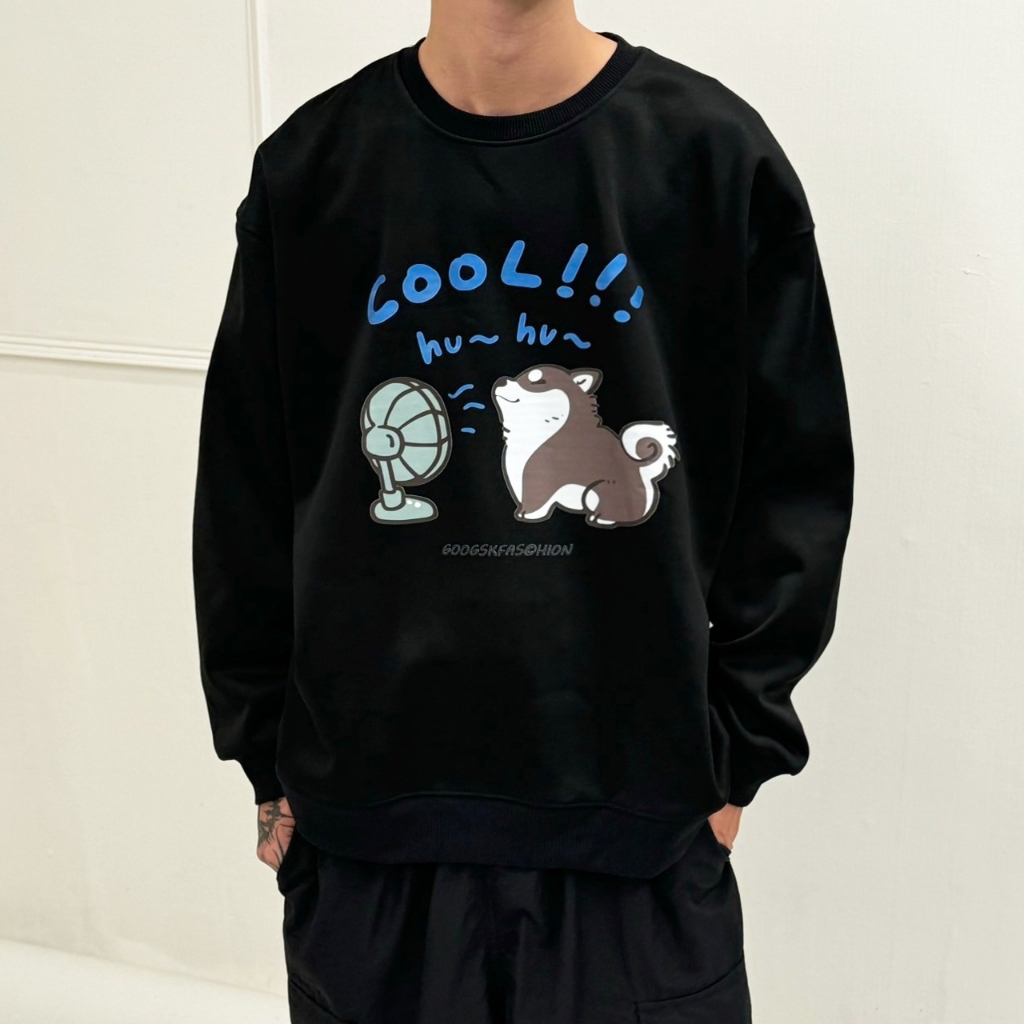 【K-2】COOL 哈士奇吹風扇 二哈 可愛 內刷毛 大學T 牛奶絨 寬鬆大學T 狗狗 大學踢 小狗 Y2K【W79】白色,M|白色,L|黑色,M|黑色,LSweatshirtsK-2 Fashionboy