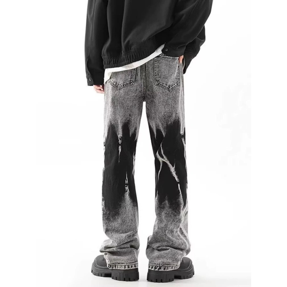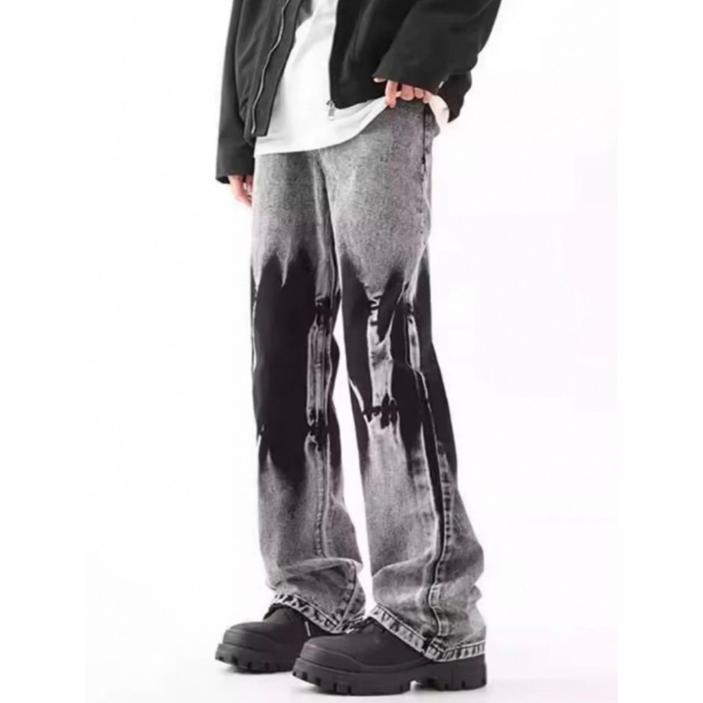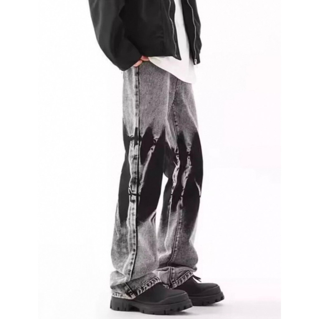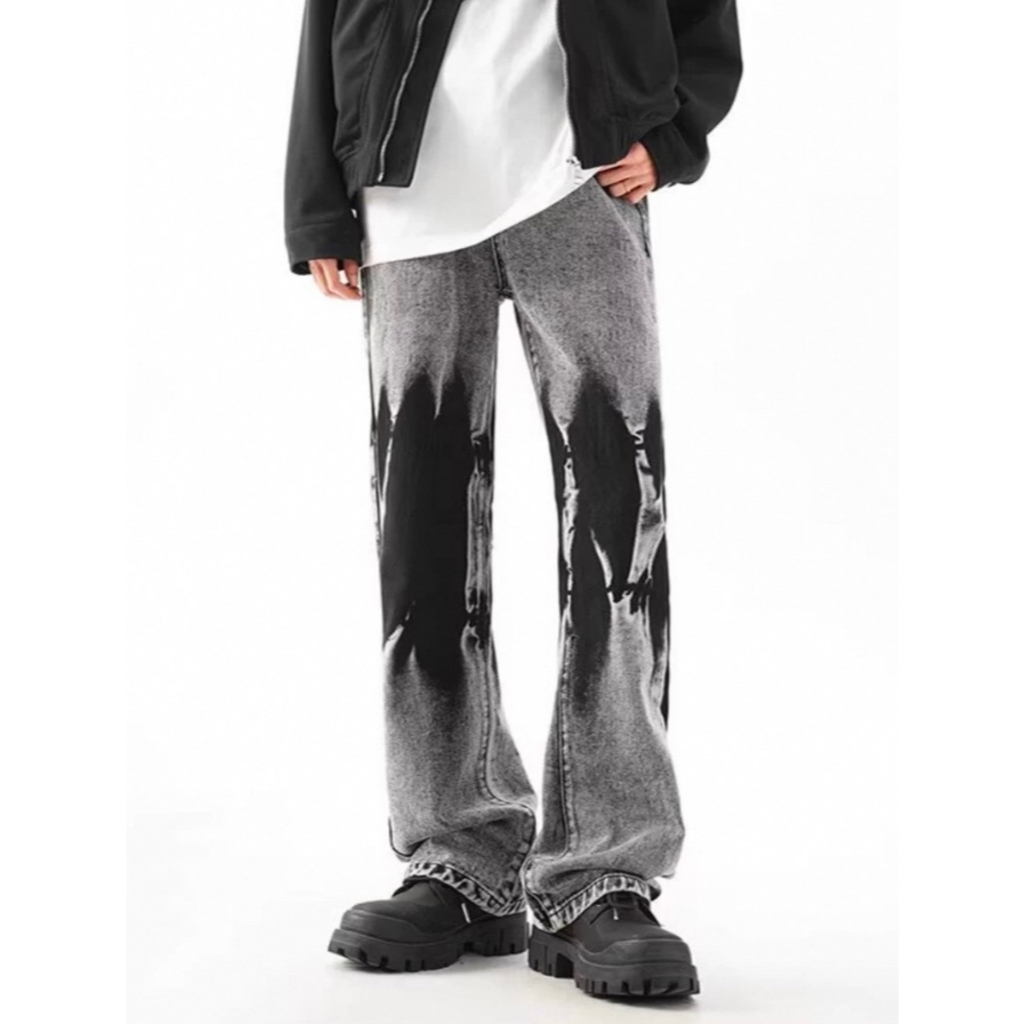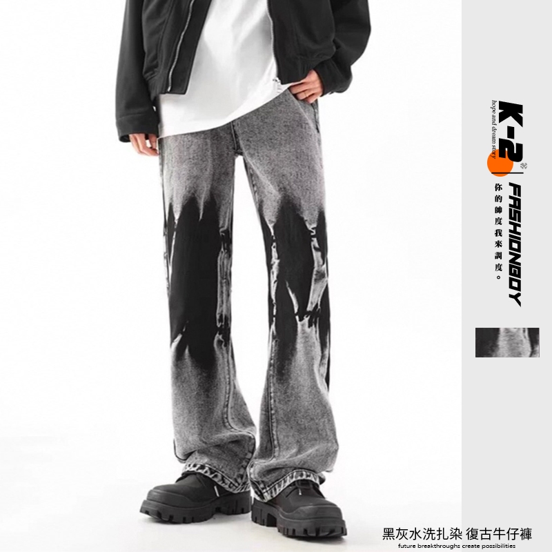 【K-2】復古槍灰扎染 藝術黑墨設計 水洗牛仔褲 灰黑色 復古長褲 直筒褲 牛仔褲 褲子 Y2K 休閒長褲【J2101】M|L|XL|XXLK-2 Fashionboy
