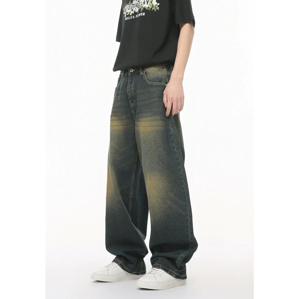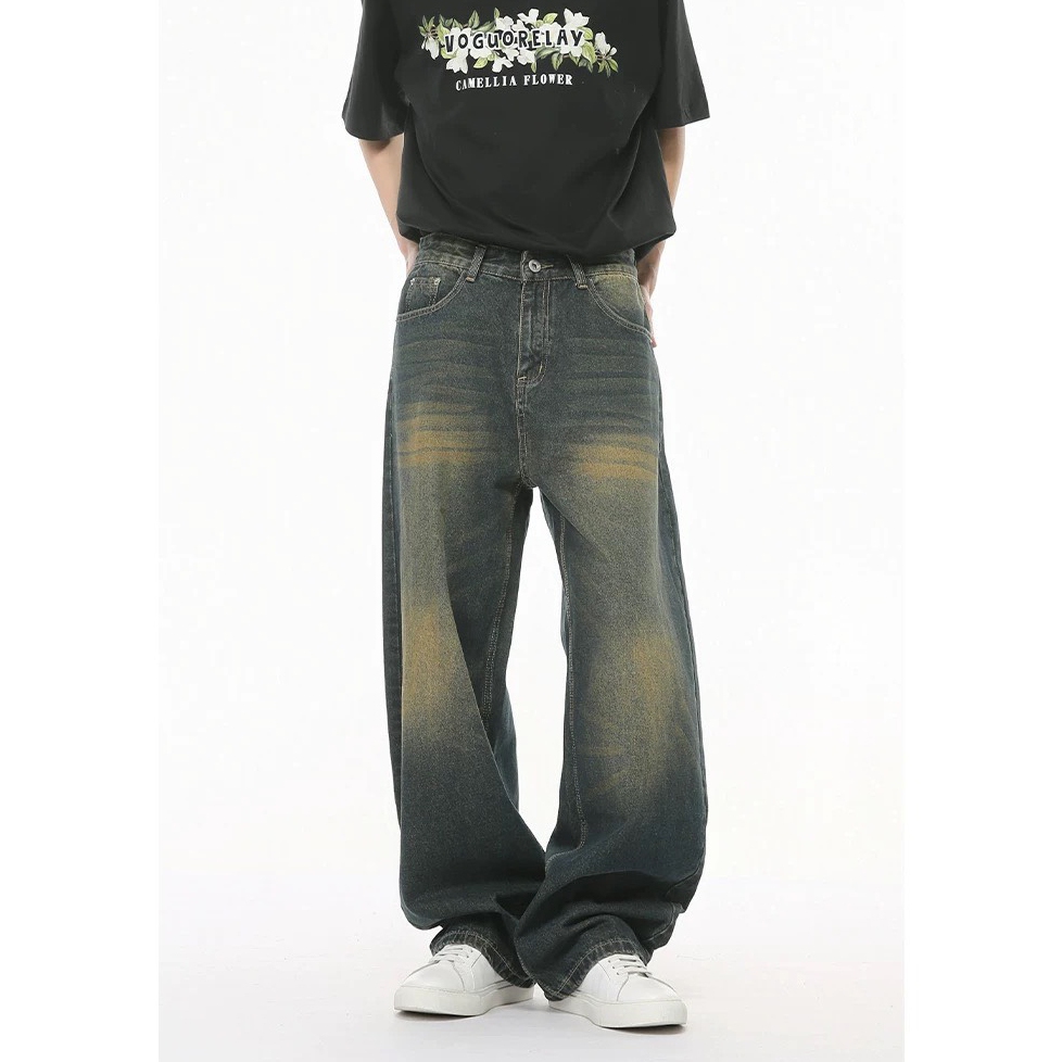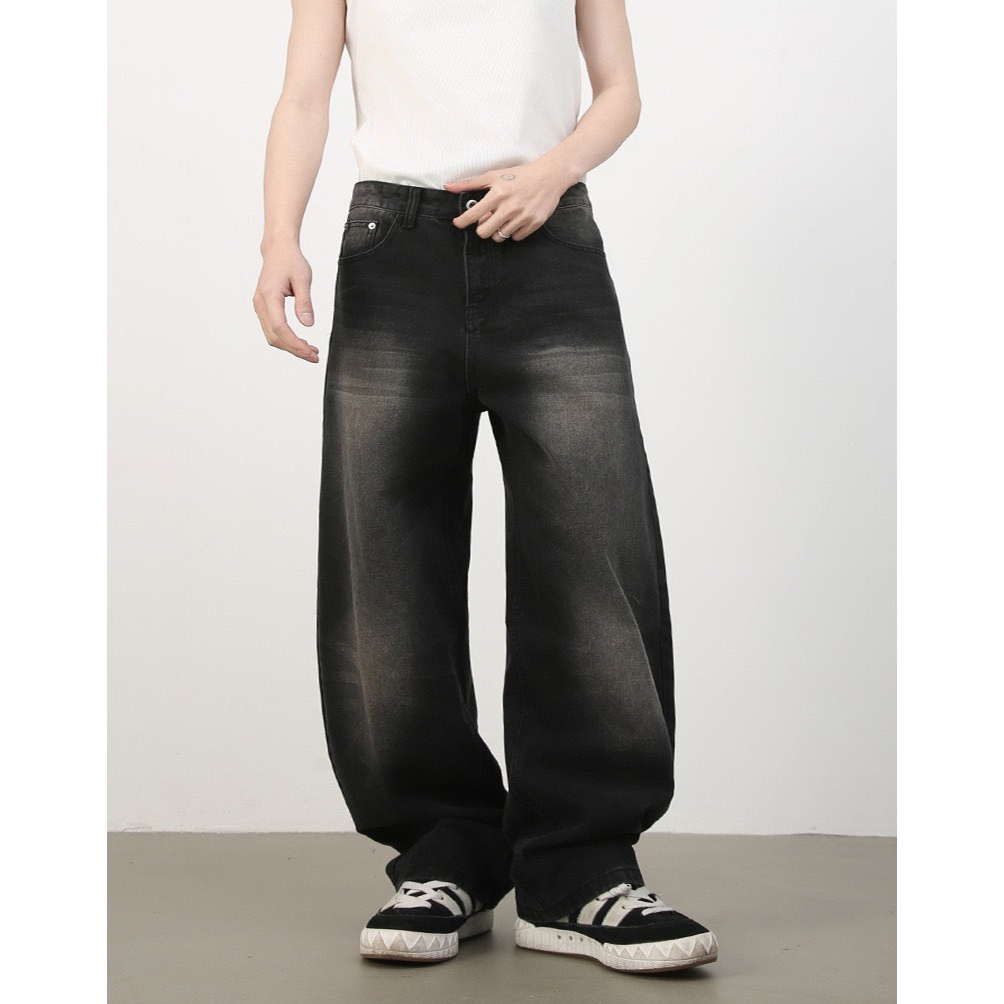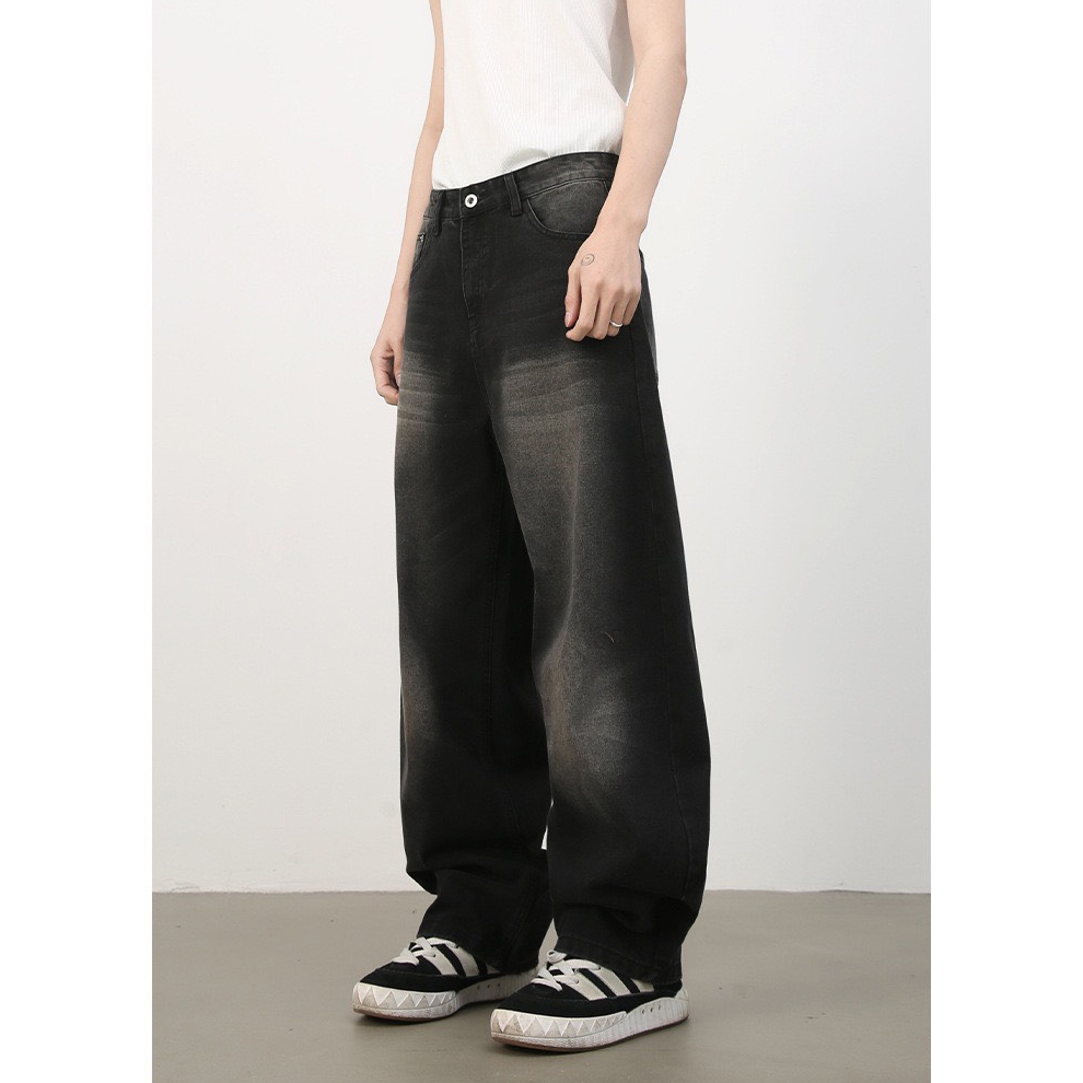 【K-2】復古槍灰扎染 藝術黑墨設計 水洗牛仔褲 灰黑色 復古長褲 直筒褲 牛仔褲 褲子 Y2K 休閒長褲【J2101】M|L|XL|XXLK-2 Fashionboy