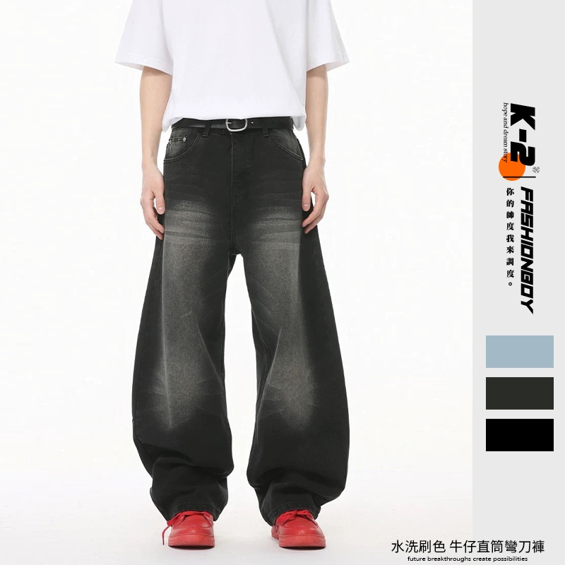 【K-2】Cleanfit boxy 水洗刷色 直筒彎刀褲 貓須 彎刀褲 鐮刀褲 廓形 牛仔褲 長褲【WH071X15】黑灰色,M|黑灰色,L|黑灰色,XL|淺藍色,M|淺藍色,L|淺藍色,XL|復古藍,M|復古藍,L|復古藍,XLK-2 Fashionboy