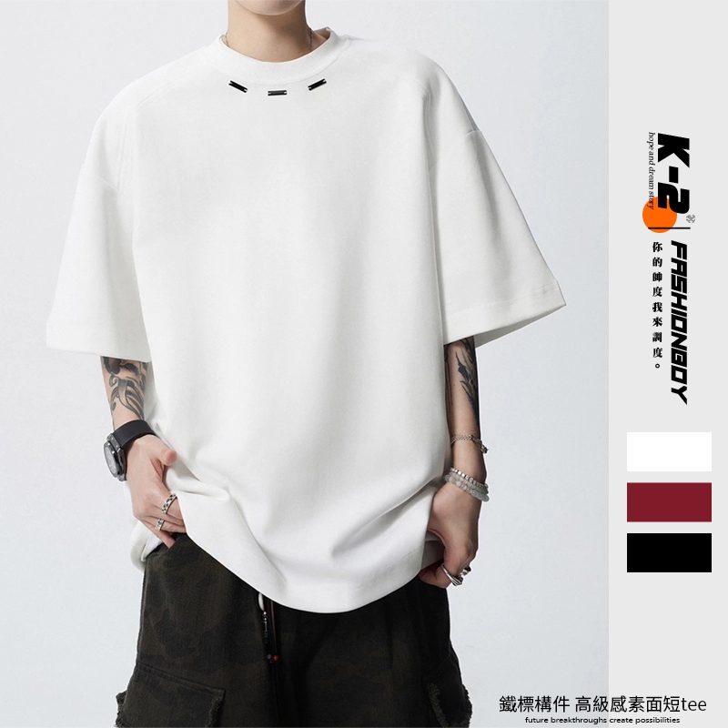 【K-2】鐵標 構件 高級感 素面 短袖上衣 個性 穿搭 五分袖 春夏 流行 男女不拘 金屬 構造【JHT10203】黑,M|黑,L|黑,XL|黑,XXL|白,M|白,L|白,XL|白,XXL|紅,M|紅,L|紅,XL|紅,XXLT-ShirtsK-2 Fashionboy