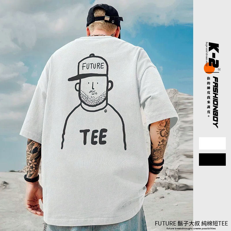【K-2】FUTURE 鬍子大叔 手繪塗鴉 插畫 未來 鬍子 大叔 純棉 短T 短袖 上衣 棒球帽 K2【JT2088】白色,L|白色,XL|黑色,M|黑色,L|黑色,XL|白色,MT-ShirtsK-2 Fashionboy
