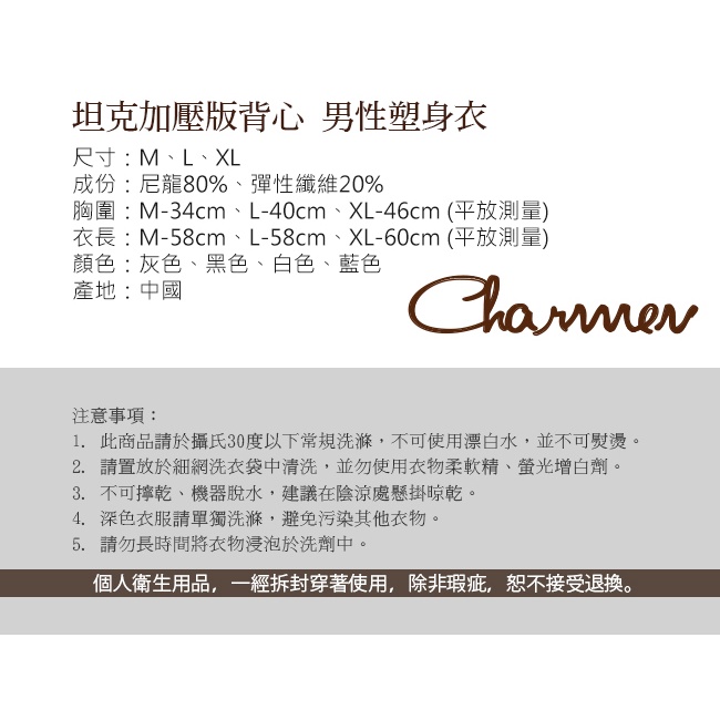 【Charmen】坦克加壓版背心 | 男性塑身衣 收腹挺背 男內著 (台灣24h出貨)灰色_M|灰色_L|灰色_XL|白色_M|白色_L|白色_XL|黑色_M|黑色_L|黑色_XLUnderwearLeader Sports 官方直營店