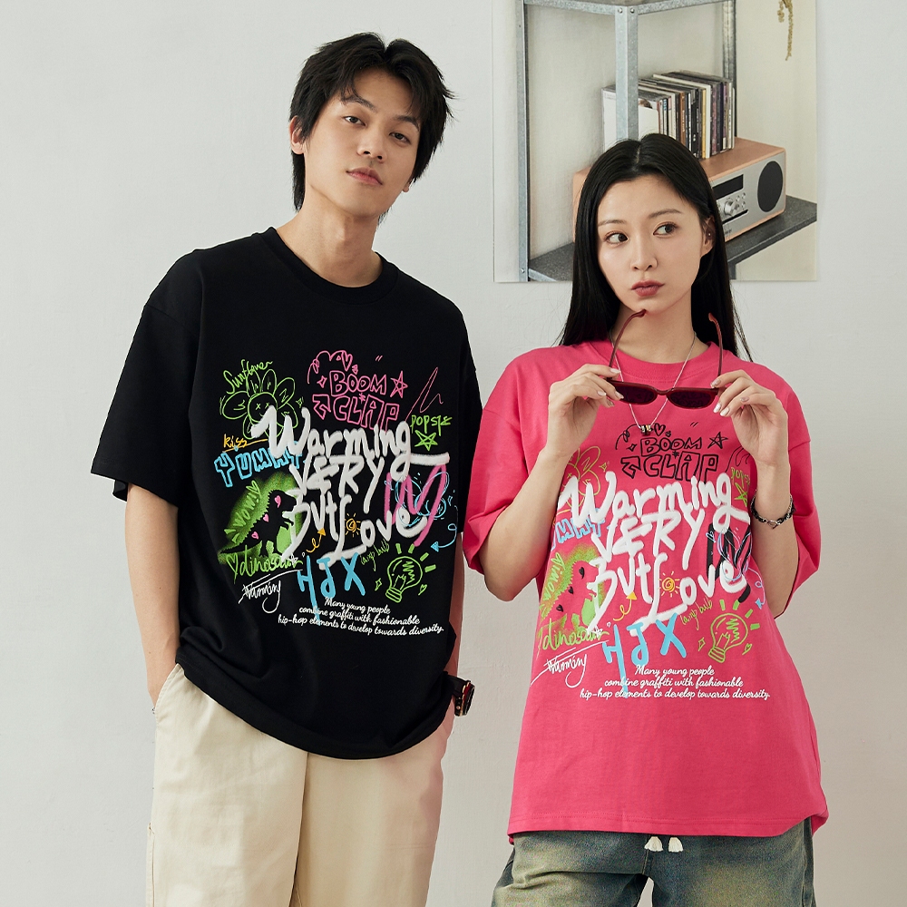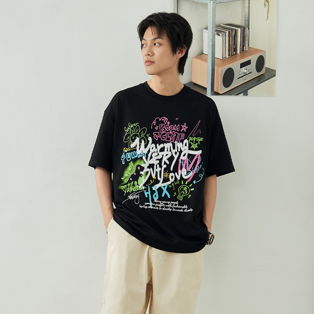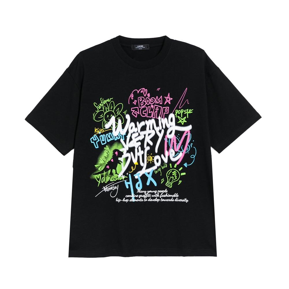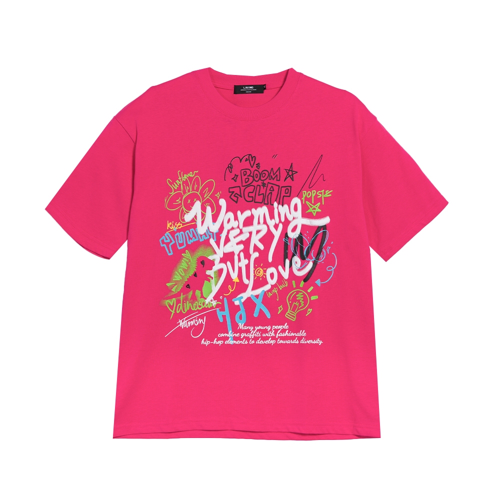 LAKING-街頭手繪感塗鴉短T黑色,M|黑色,L|黑色,XL|粉色,M|粉色,L|粉色,XLT-ShirtsLAKING官方旗艦店
