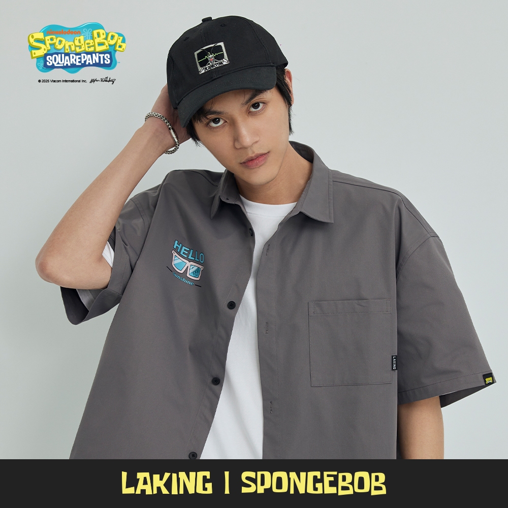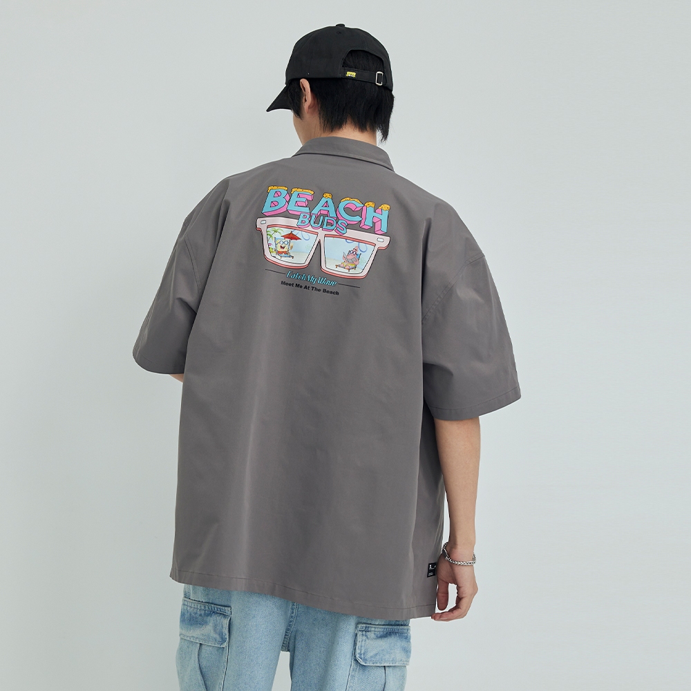 LAKING-海綿寶寶-夏日狂歡夥伴背圖短襯灰色,M|灰色,L|白色,M|白色,LShirtsLAKING官方旗艦店