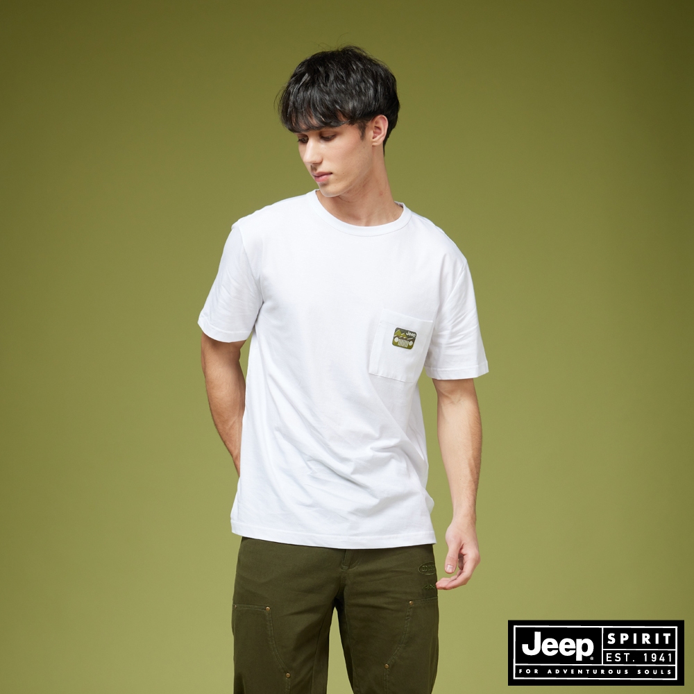 JEEP 男裝 迷彩布繡口袋純棉短袖T恤-白色S|M|L|XL|XXLT-ShirtsJeep 官方直營旗艦店