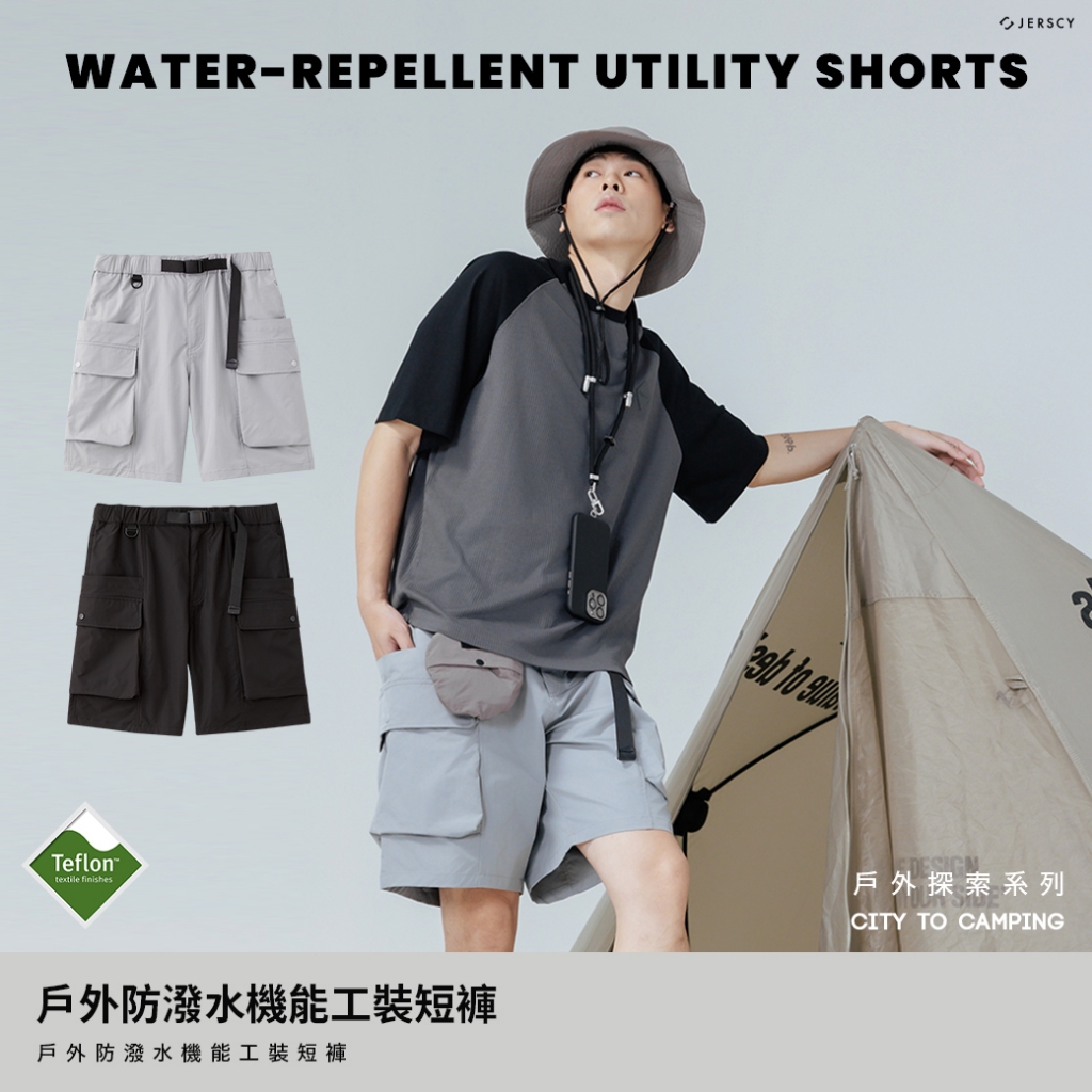 JERSCY [戶外防潑水機能工裝短褲] 男短褲 男生長褲 短褲 休閒褲 男生褲子 男褲 [1523401]灰色,S|灰色,M|灰色,L|灰色,XL|灰色,XXL|黑色,S|黑色,M|黑色,L|黑色,XL|黑色,XXLJERSCY 極簡風格男裝