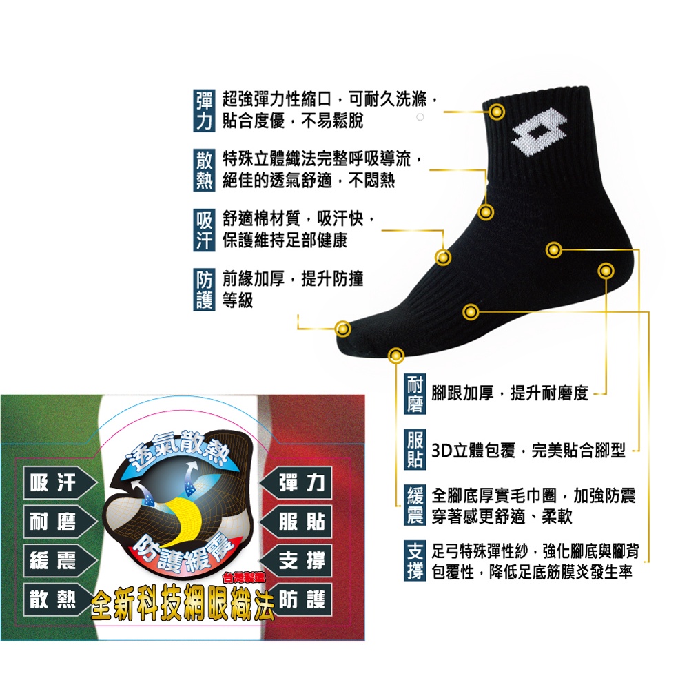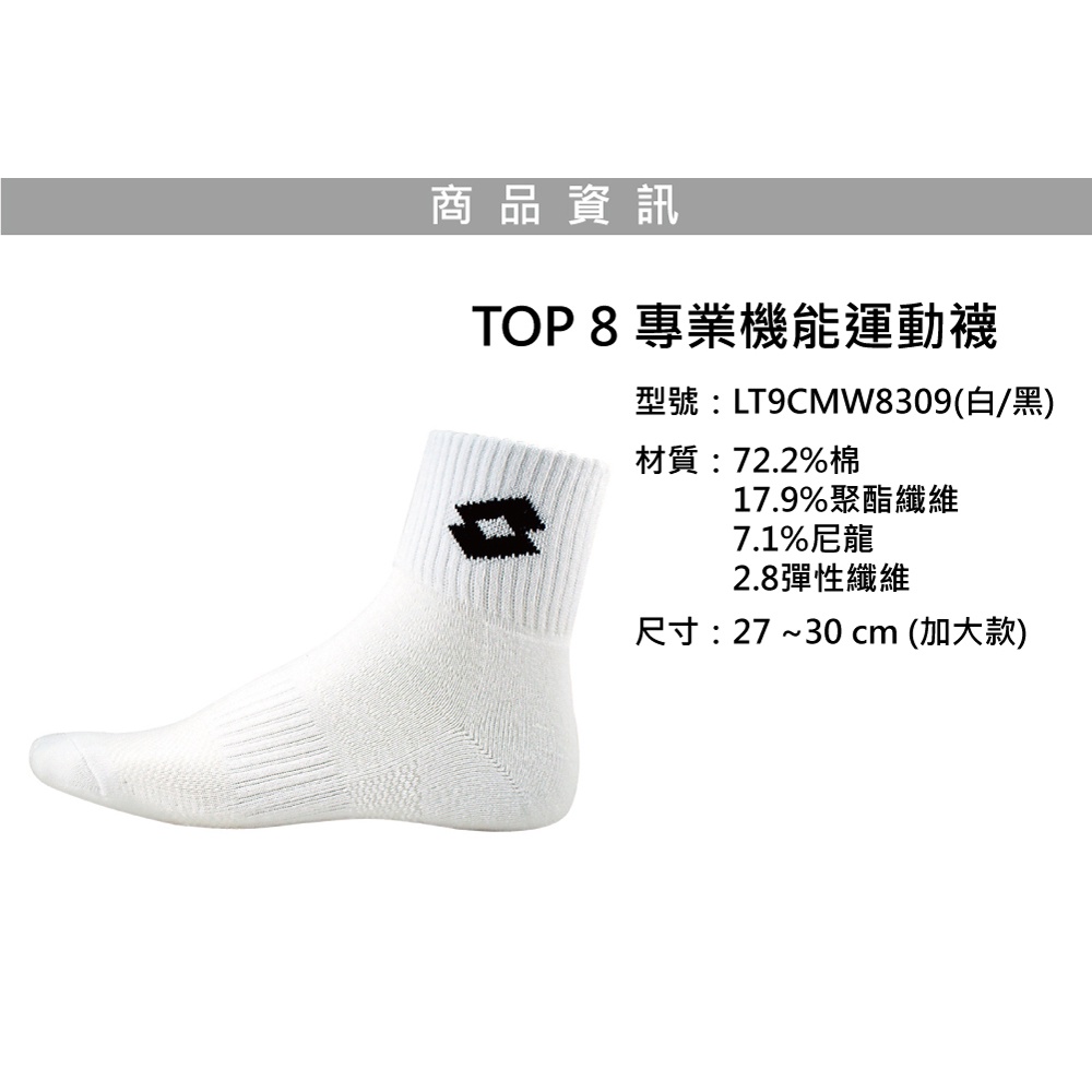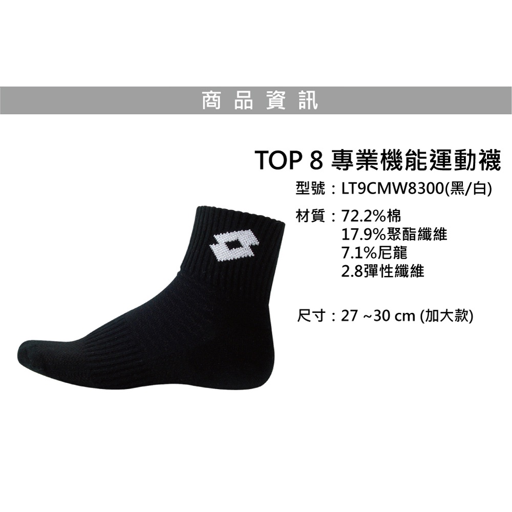 【LOTTO 義大利】TOP 8 專業機能運動襪-加大款(多色任選)灰藍(27-30CM)|白/黑(27-30CM)|黑/白(27-30CM)LOTTO 樂得官方商城