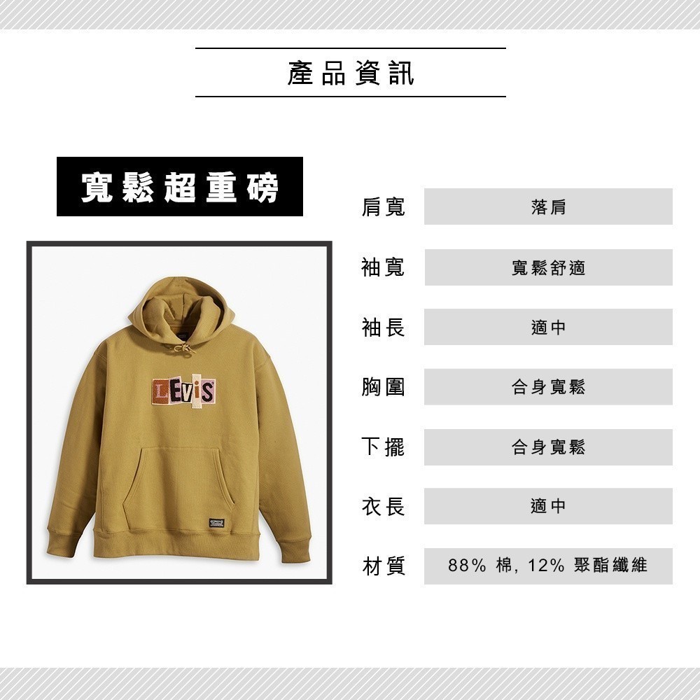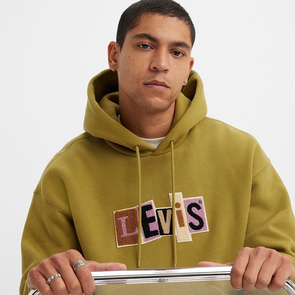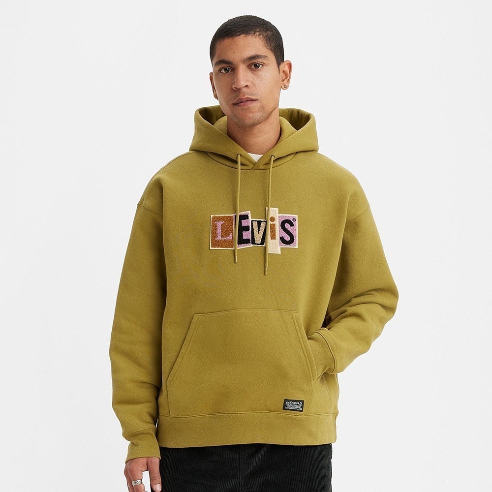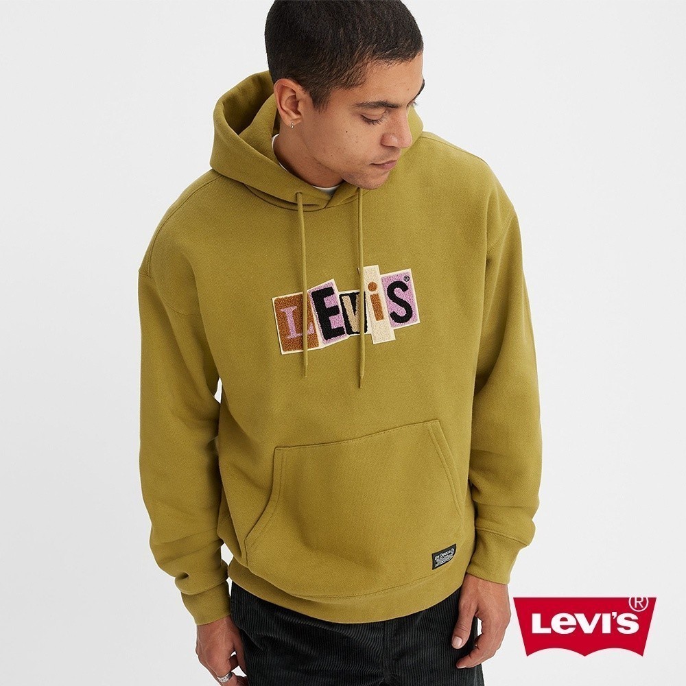 Levis 滑板系列 男款 寬鬆版超重磅口袋帽T / 拼接布章Logo / 蘚苔綠 男 A1008-0006 熱賣單品L|S|MHoodiesLevi’s官方旗艦店