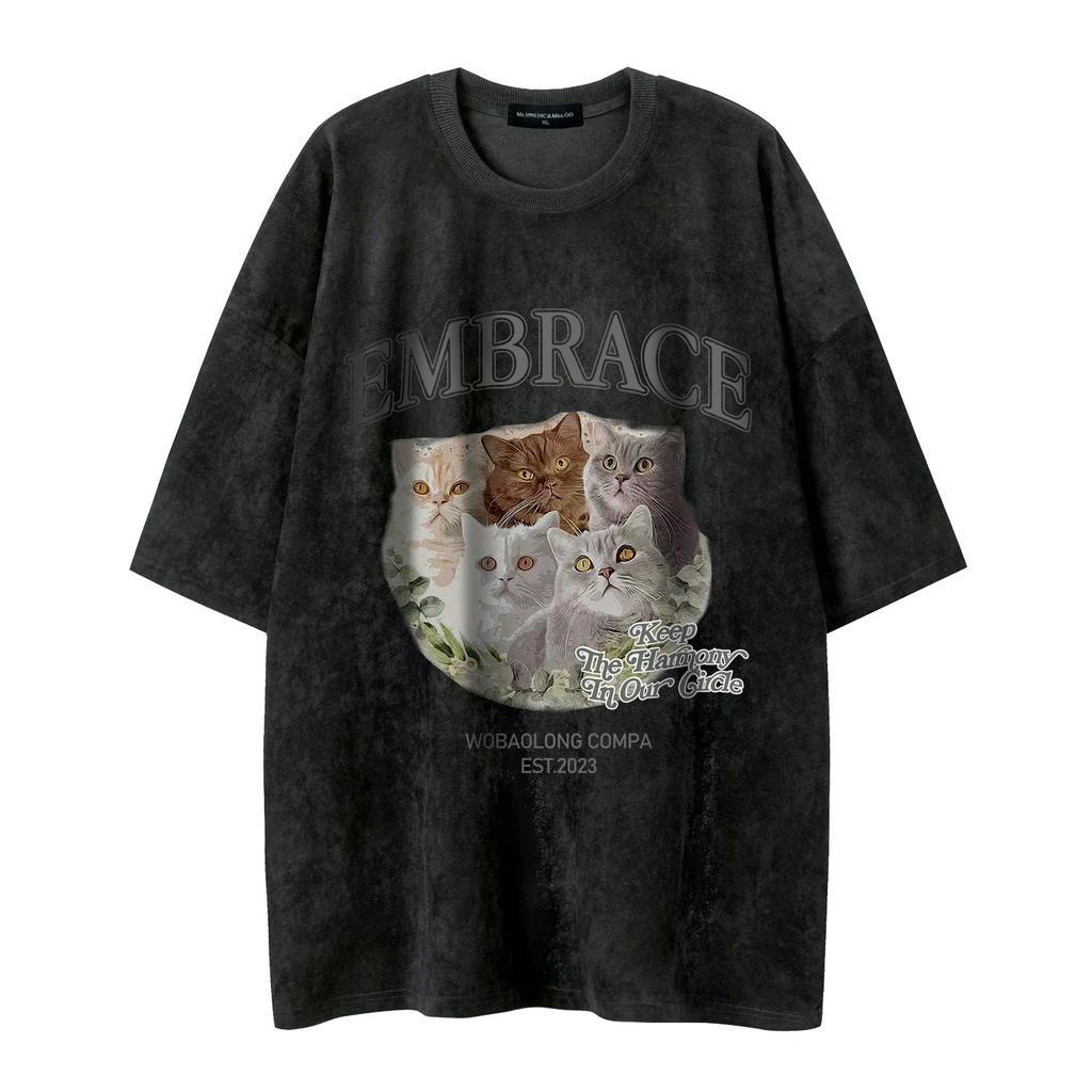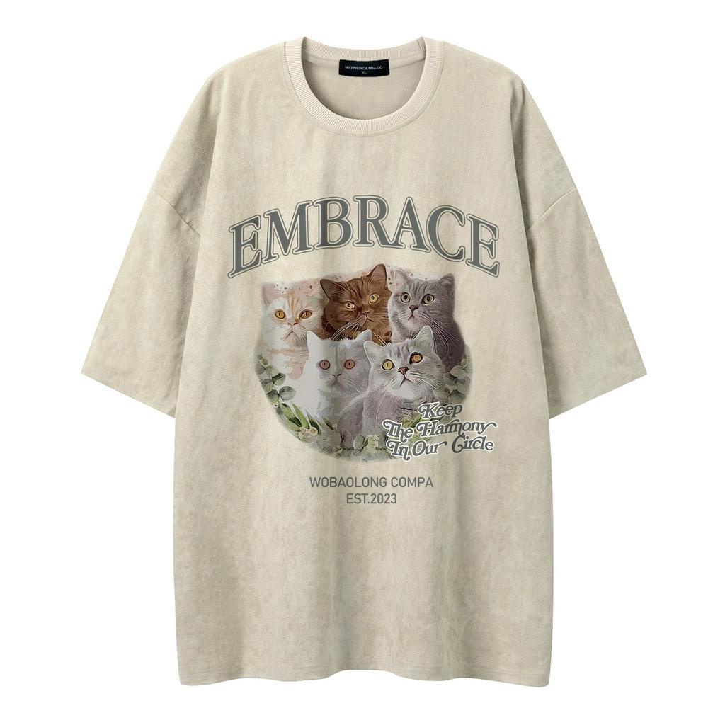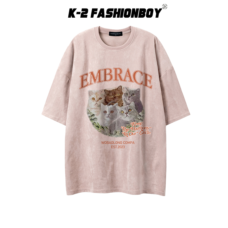 【K-2】EMBRACE 2023 麂皮絨 五隻小貓 英國短貓 寵物 短T 短袖 穿搭 休閒 貓奴【AJPRT3237】黑,L|黑,XL|粉,M|杏,L|黑,M|粉,XL|杏,M|杏,XL|粉,LT-ShirtsK-2 Fashionboy