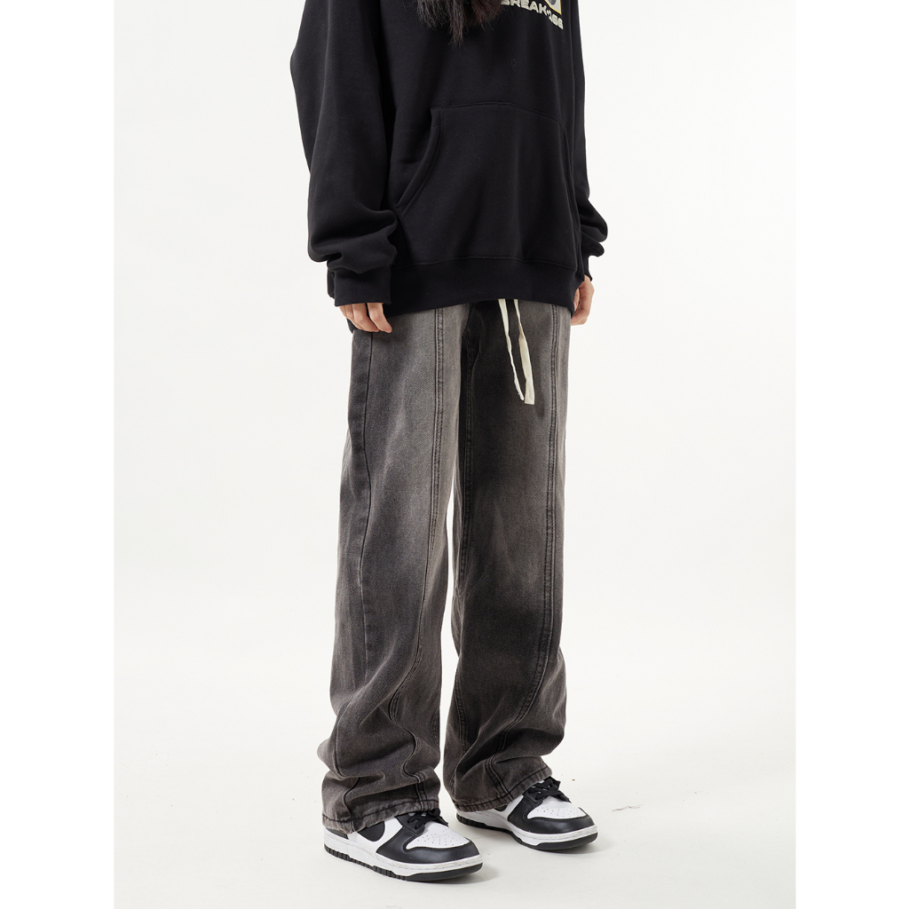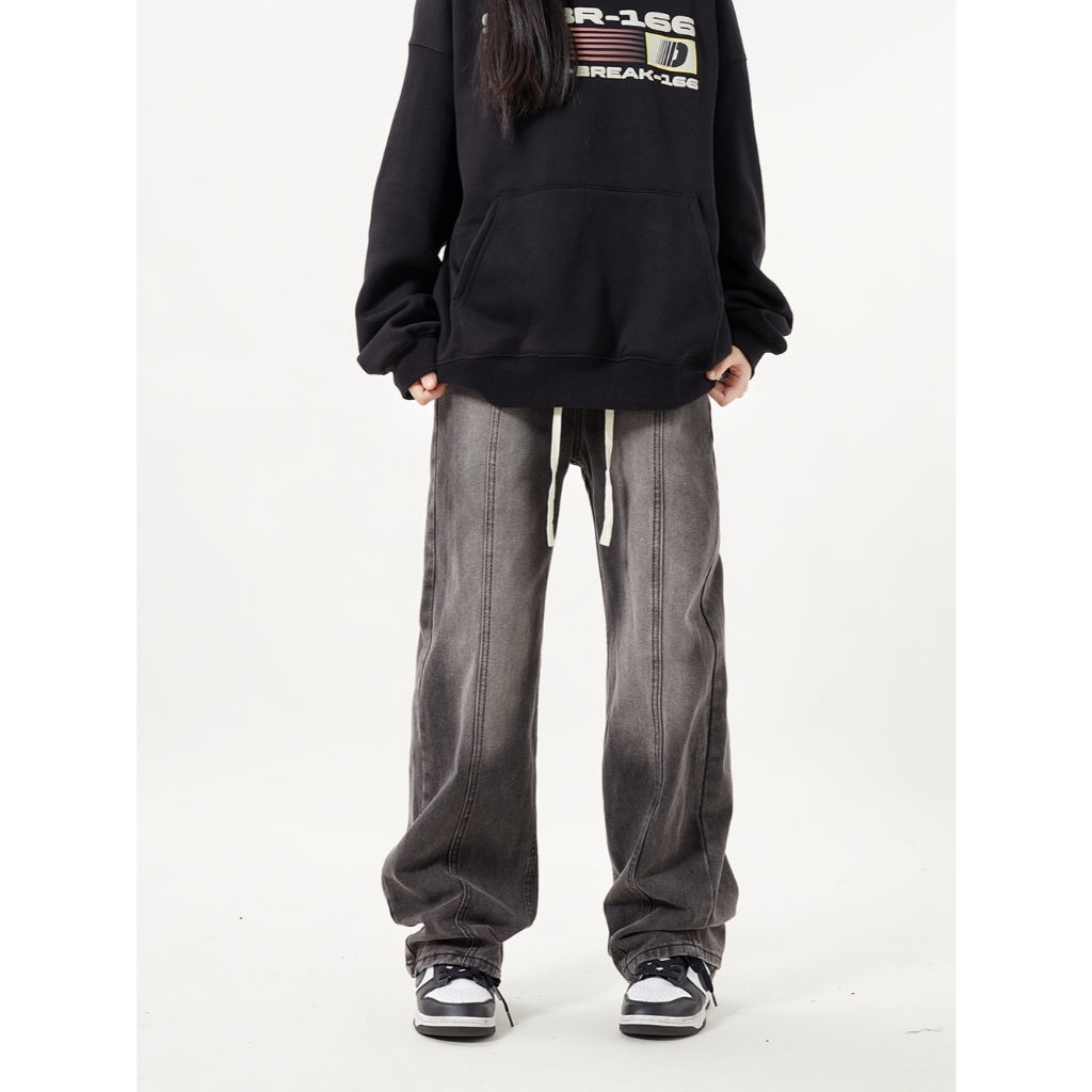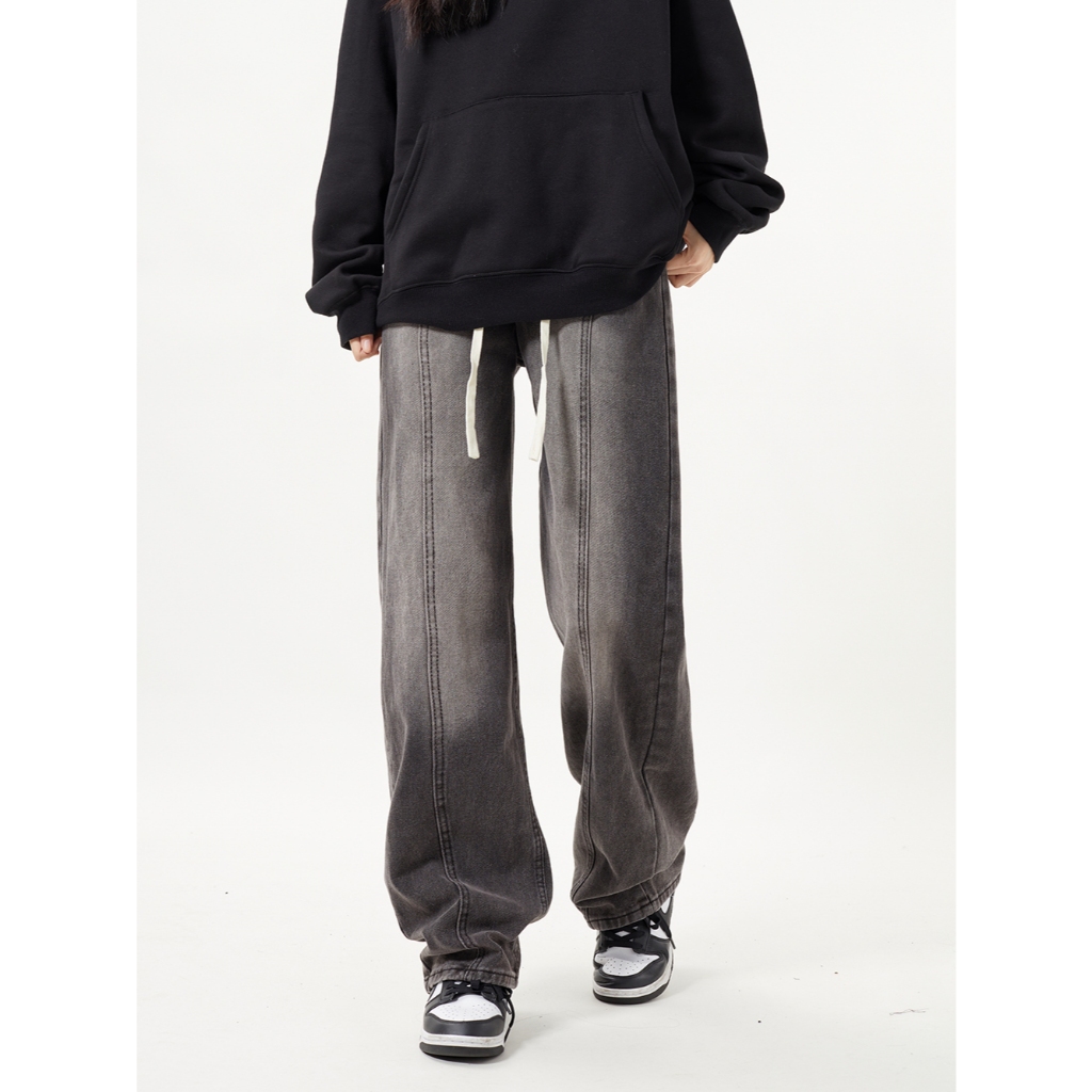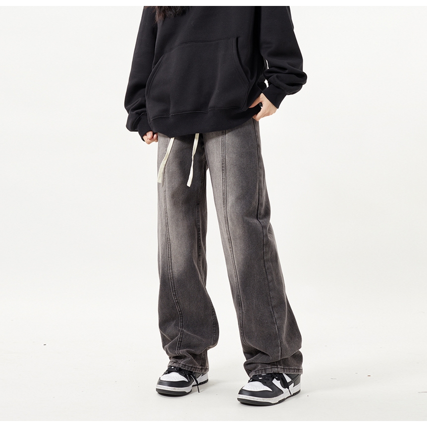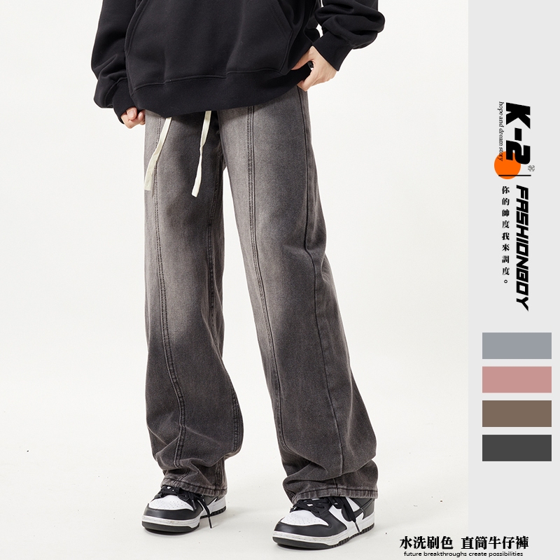 【K-2】九色 水洗刷色 直筒牛仔長褲 立體車線 鬆緊腰頭 抽繩 多巴胺 長褲 牛仔褲 穿搭 潮流【AWD003】黑灰,S|黑灰,M|黑灰,L|黑灰,XL|黑灰,XXLK-2 Fashionboy