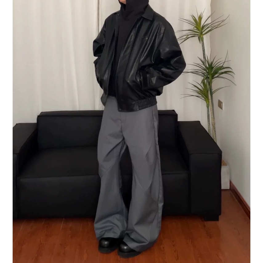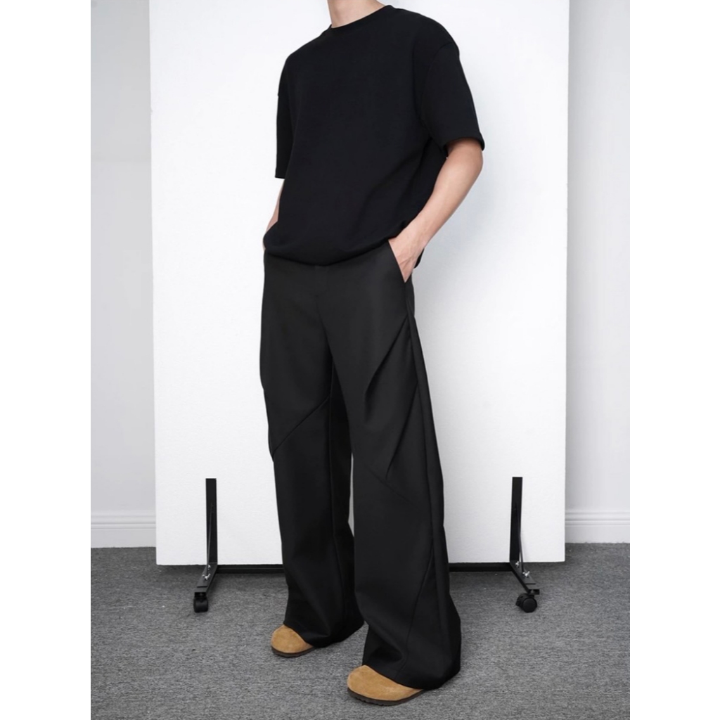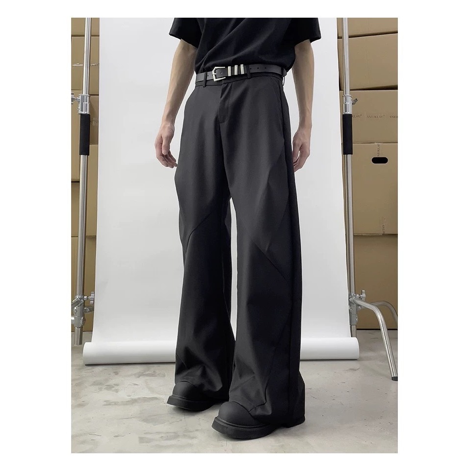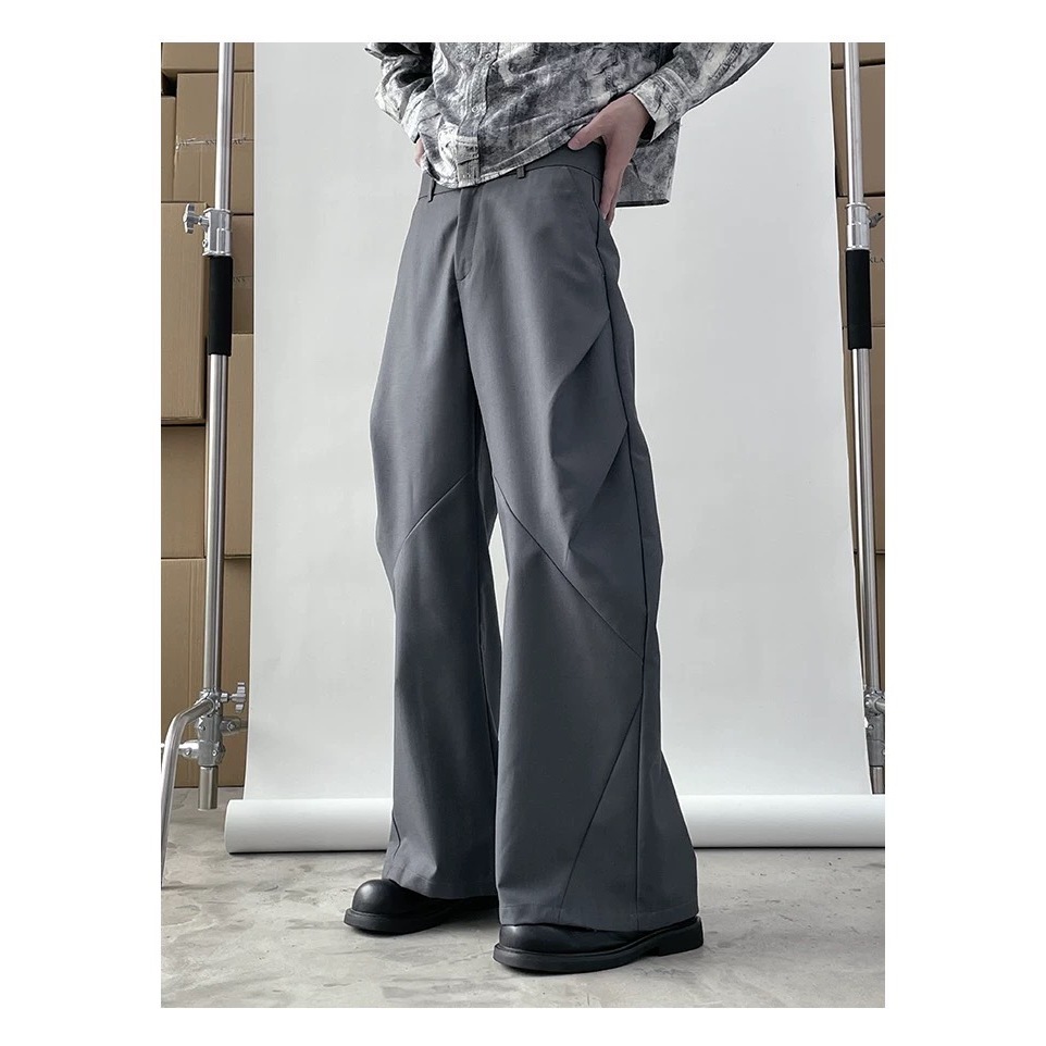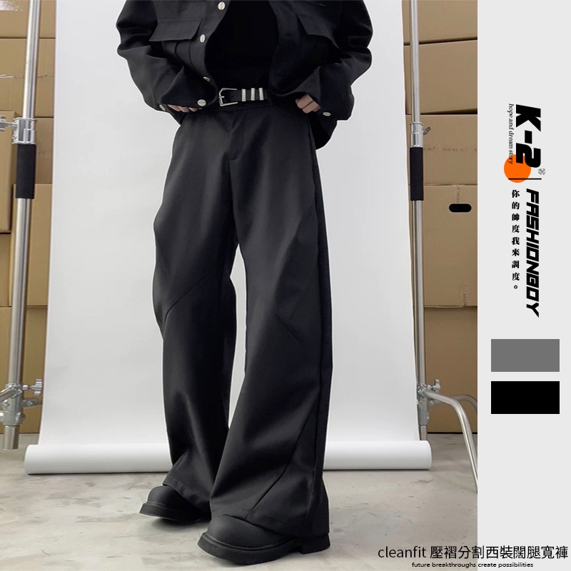【K-2】cleanfit 爆帥炸街款 壓褶分割 硬挺重磅 闊腿版型 西裝寬褲 寬褲 西裝褲 休閒長褲 西褲【KC39】灰色,M|灰色,L|灰色,XL|黑色,M|黑色,L|黑色,XLSuit PantsK-2 Fashionboy