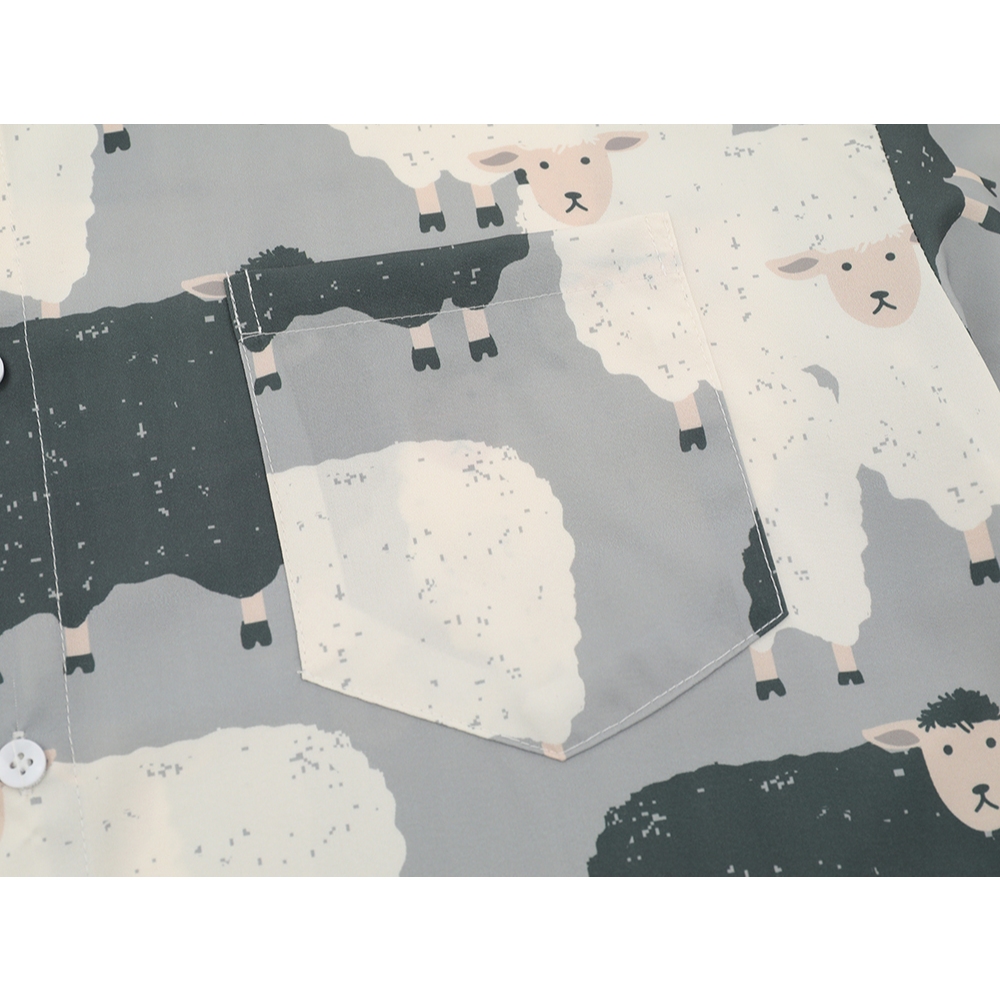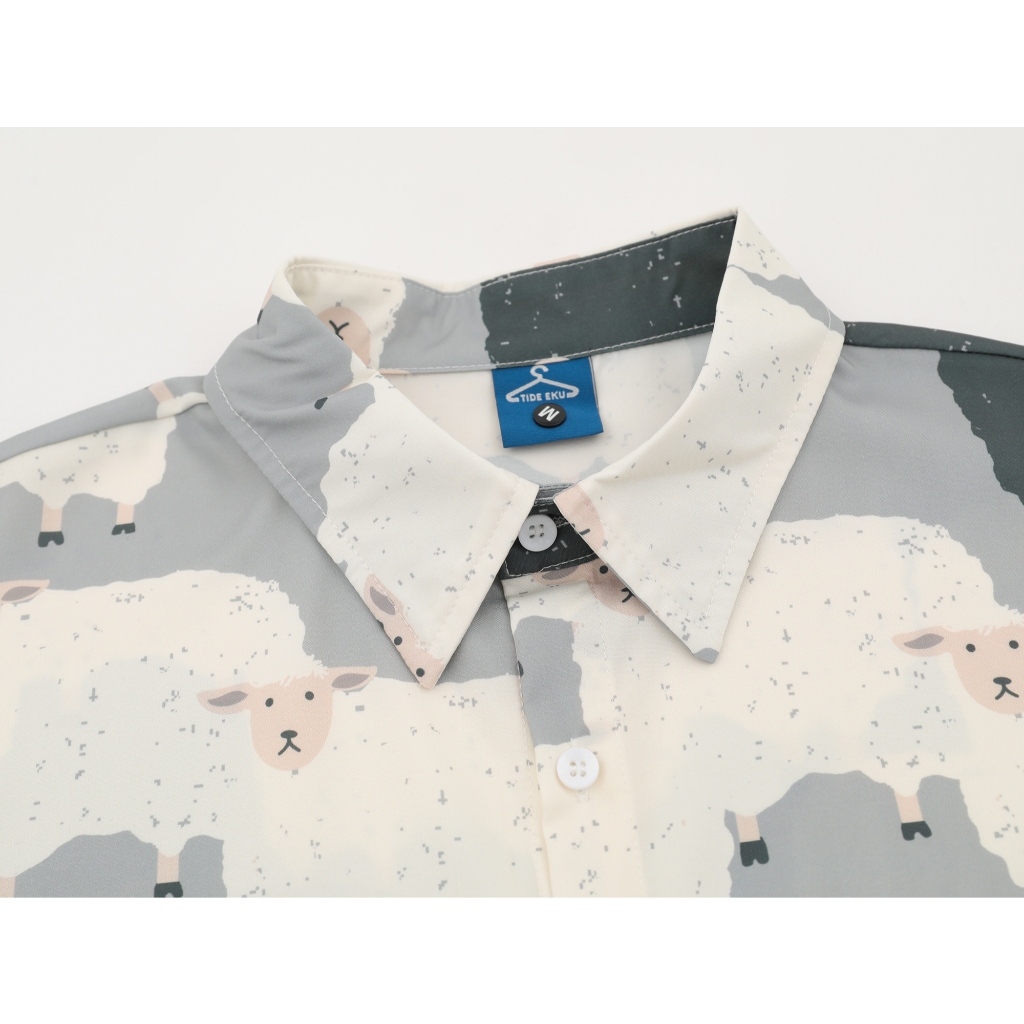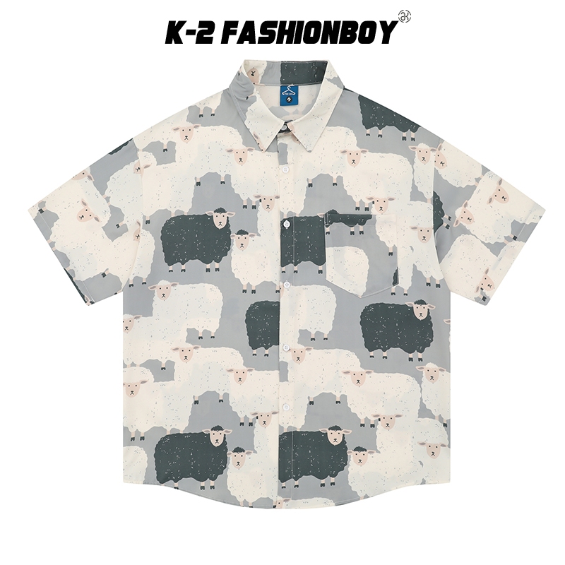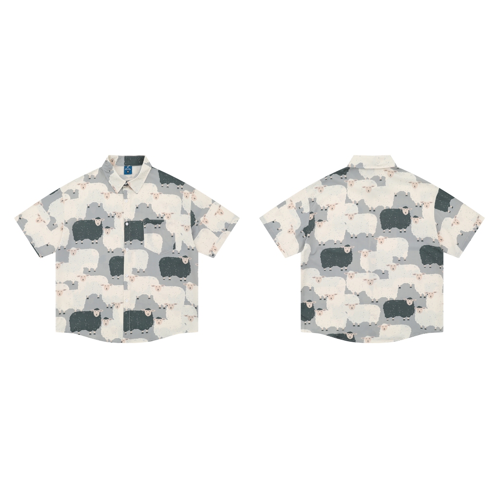 【K-2】小綿羊 黑白 綿羊 童趣 插畫 可愛 短袖襯衫 薄款 男女不拘 海邊 春夏【J5720】M|L|XL|XXLShirtsK-2 Fashionboy
