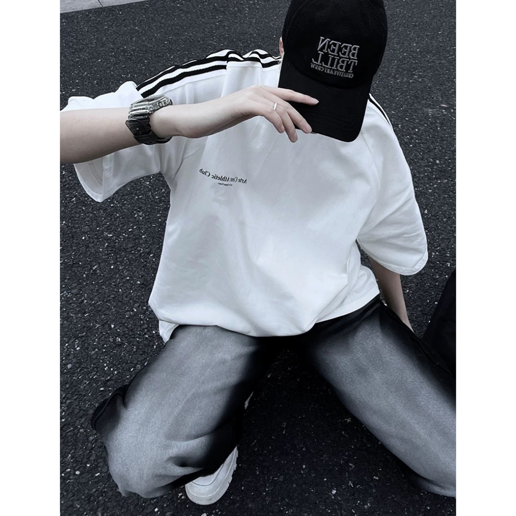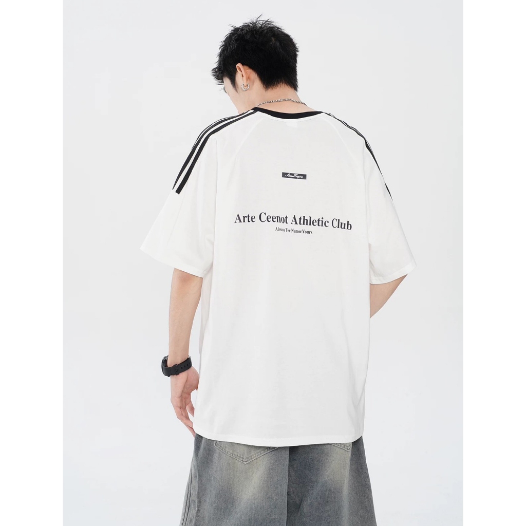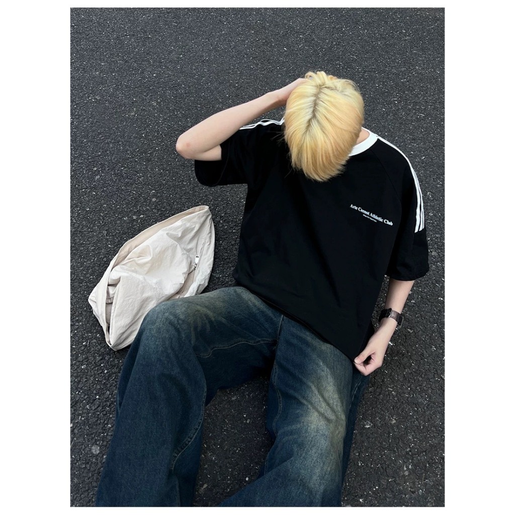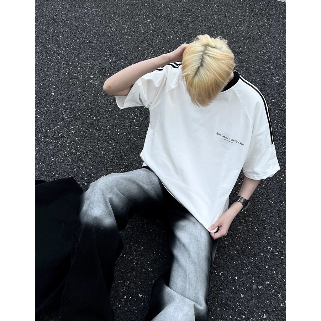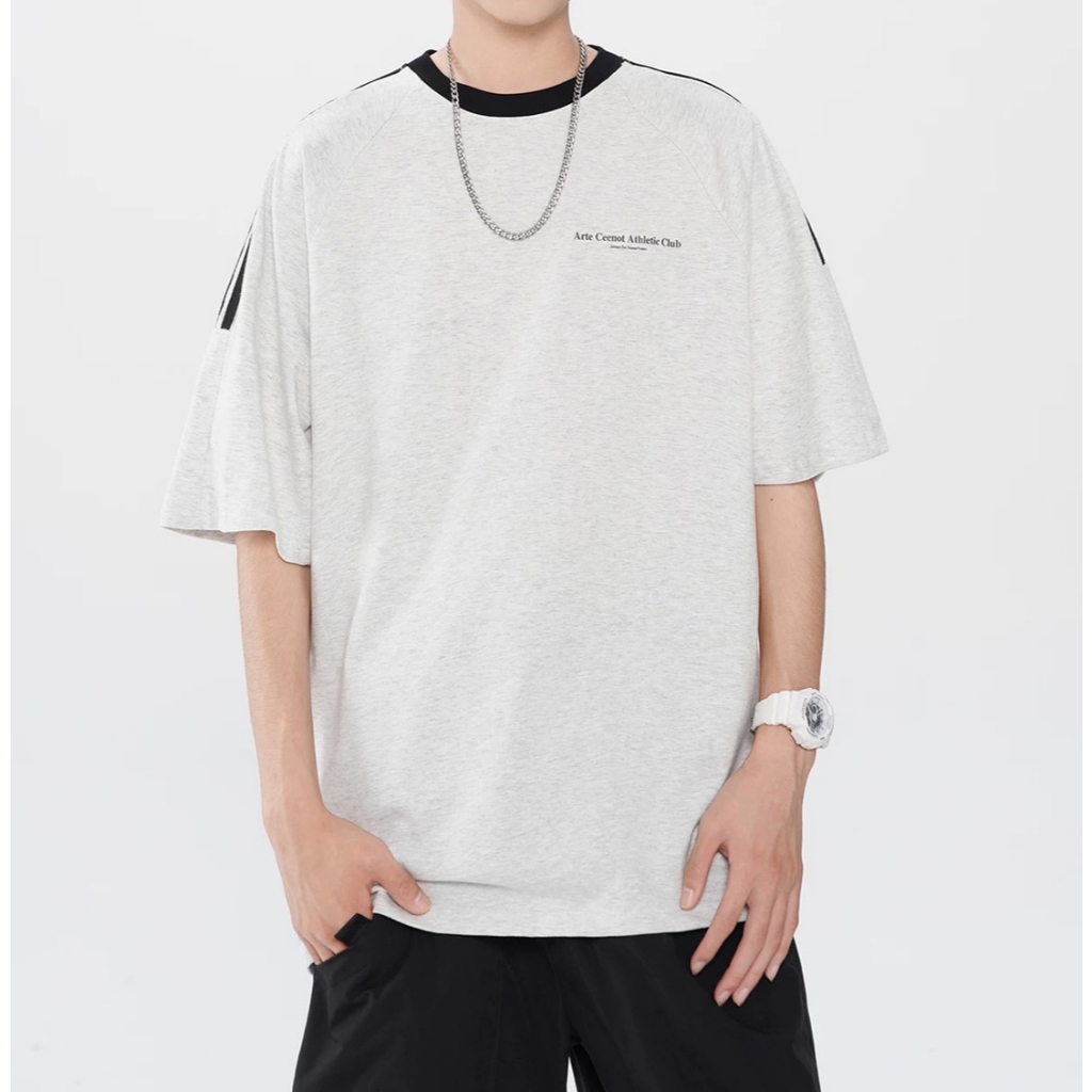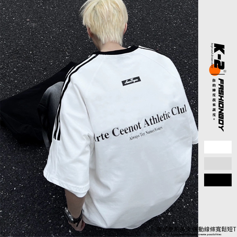 【K-2】美式簡約 小LOGO 字母 俱樂部 插肩 線條T 運動線條 寬鬆短T 短袖 上衣 復古 上衣【JJS03】白色,M|白色,L|白色,XL|米灰色,M|米灰色,L|米灰色,XL|黑色,M|黑色,L|黑色,XLT-ShirtsK-2 Fashionboy
