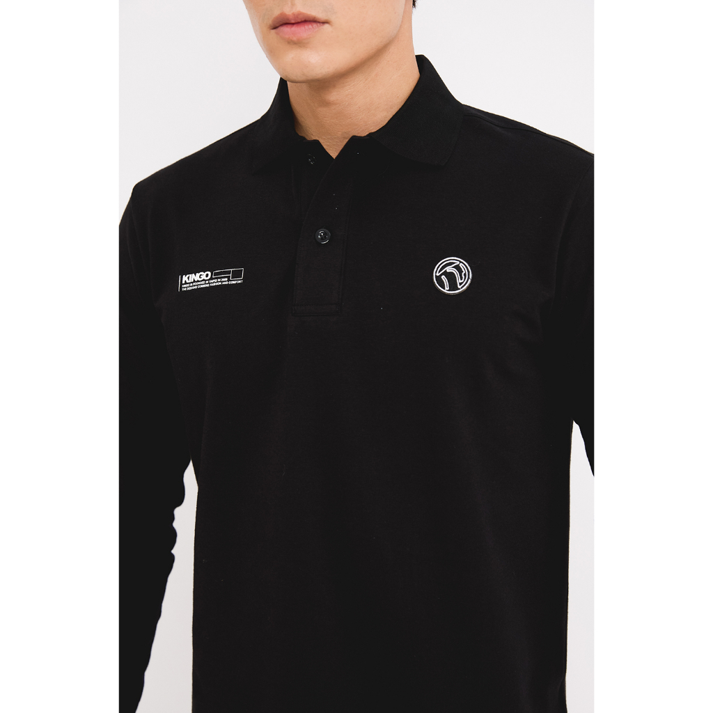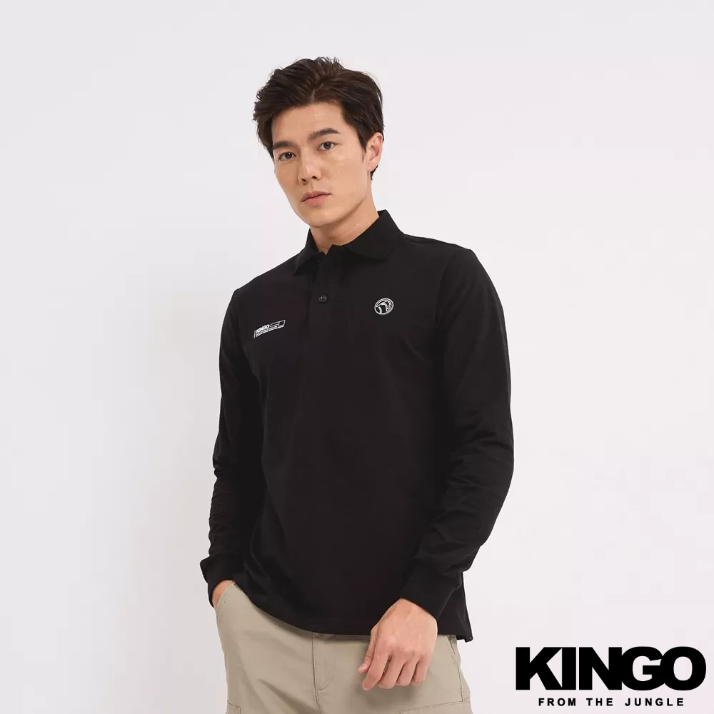 KINGO男款|Logo素面長袖Polo衫