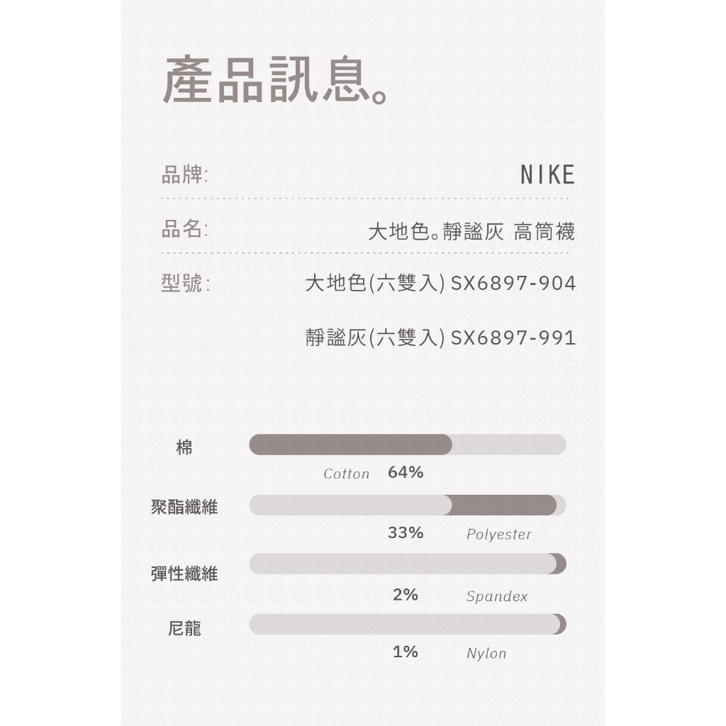 【商城正品|現貨】Nike 襪子 長襪 高筒襪 運動襪 大地色 奶茶 無彩色系列 靜謐灰 小勾 6雙入 SX6897靜謐灰 / SX6897-991,S (經實測,20~24 cm 皆可穿)|靜謐灰 / SX6897-991,M(經實測,22~27 cm 皆可穿)|靜謐灰 / SX6897-991,L(經實測,27~30.5cm皆可穿)|靜謐灰 / SX6897-991,XL(經實測,30~33.5cm皆可穿)|大地色 / SX6897-904,M(經實測,22~27 cm 皆可穿)|大地色 / SX6897-904,L(經實測,27~30.5cm皆可穿)|大地色 / SX6897-904,XL(經實測,30~33.5cm皆可穿)|3色一組 / SX6888-915,S (經實測,20~24 cm 皆可穿)|3色一組 / SX6888-915,M(經實測,22~27 cm 皆可穿)|3色一組 / SX6888-915,L(經實測,27~30.5cm皆可穿)|3色一組 / SX6888-915,XL(經實測,30~33.5cm皆可穿)|大地色 / SX6897-904,S (經實測,20~24 cm 皆可穿)KISS MY ACE