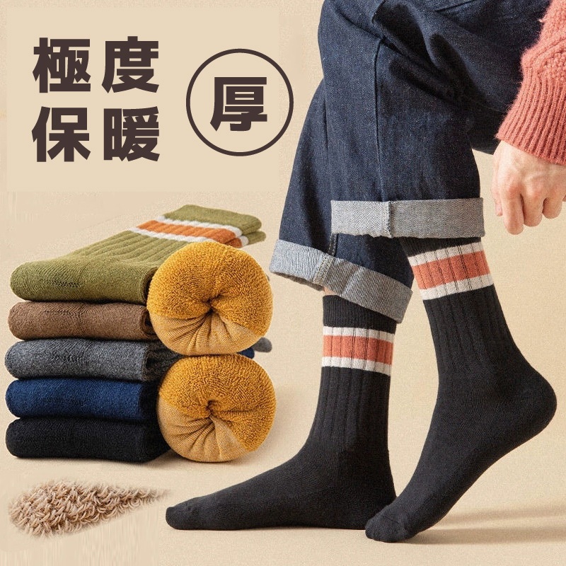 【Pincers 品麝士】韓版加絨加厚保暖中筒襪 中筒襪 冬襪 厚襪星空黑|焦糖咖啡|深麻灰|淺麻灰|軍綠kyoyeh 國岳