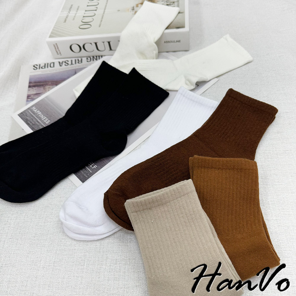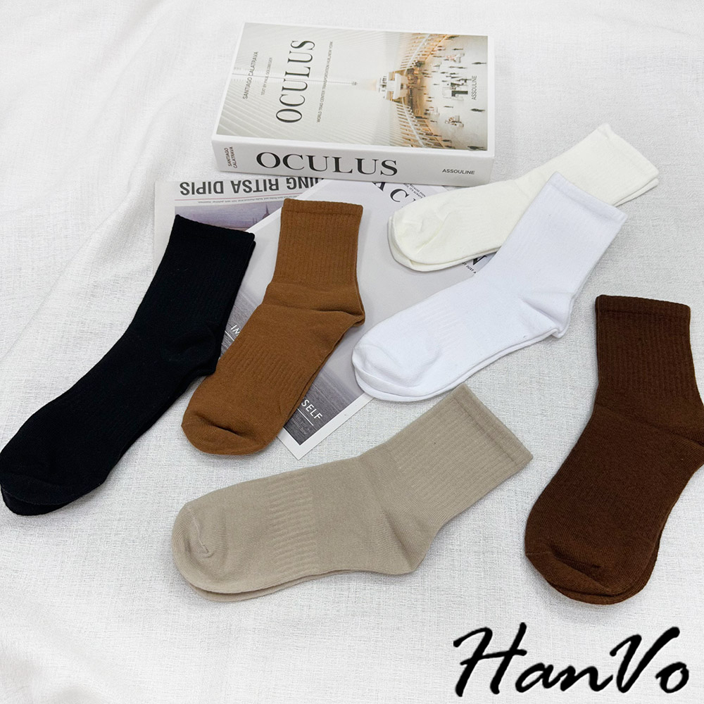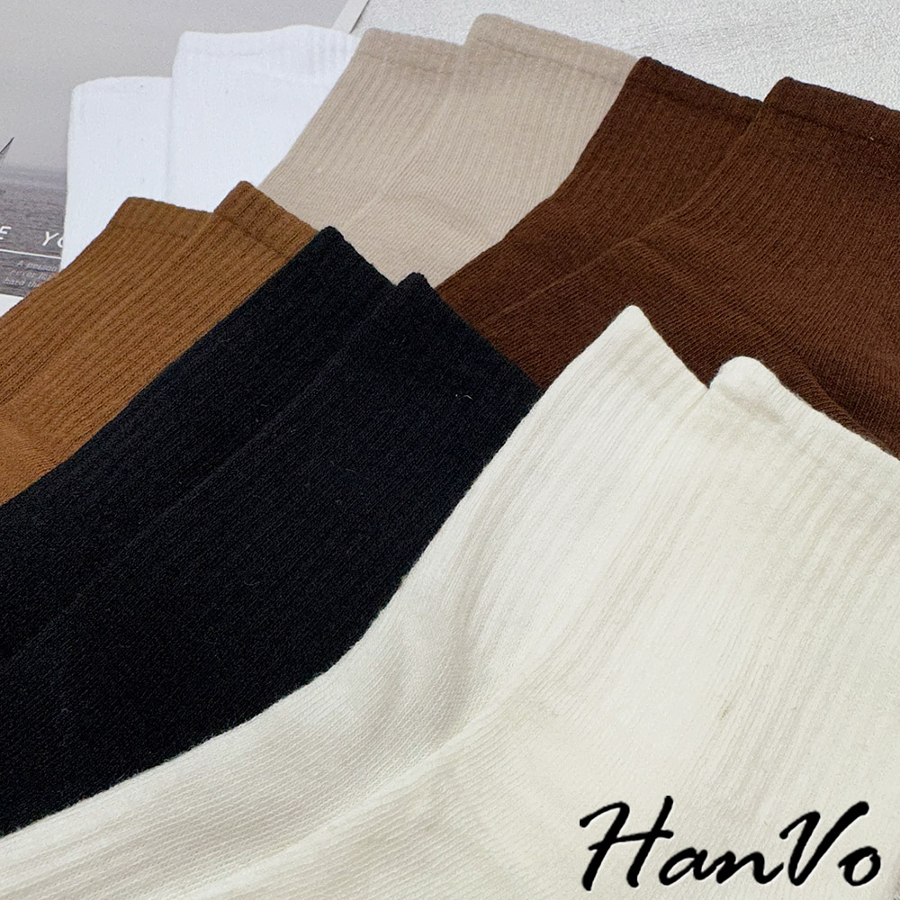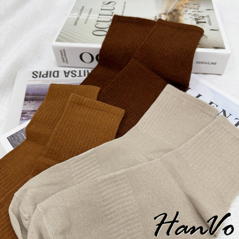 【HanVo】男款大地咖色系透氣中筒襪 舒適親膚柔軟棉質襪 韓國潮流百搭休閒襪 男生配件 B07-7013駝色|奶白|咖色|卡色HanVo Wear Collection