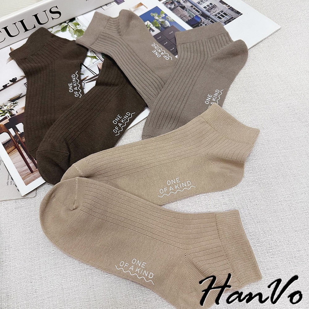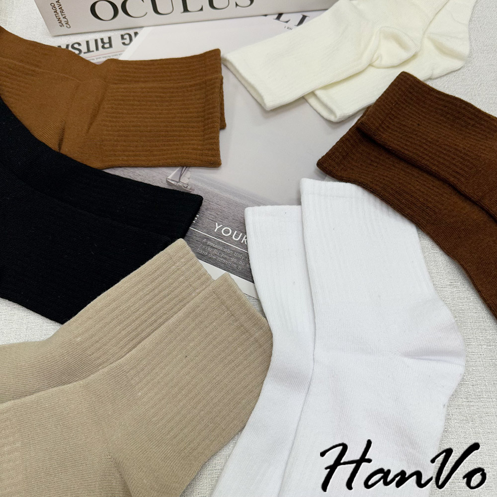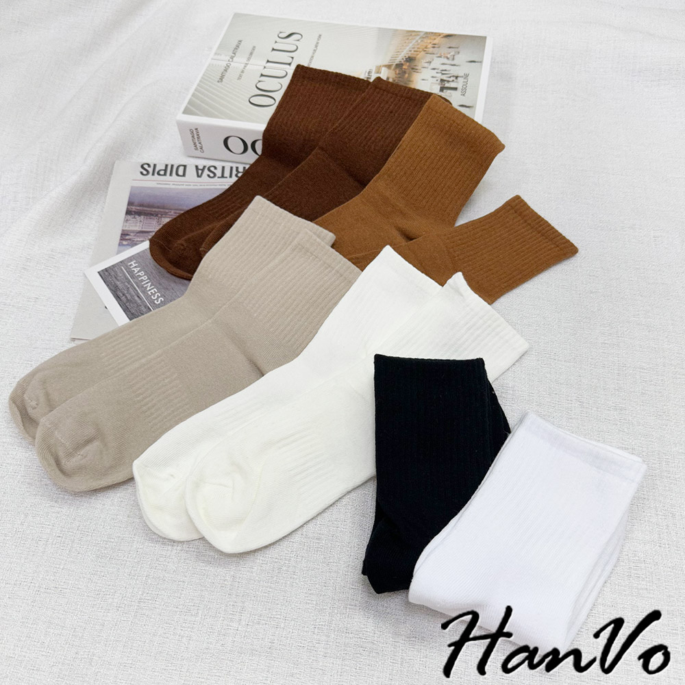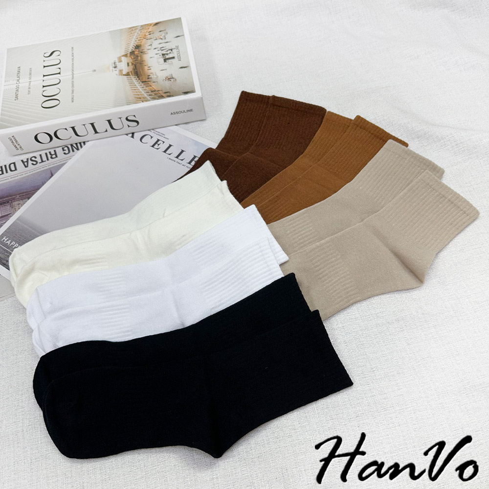 【HanVo】男款大地咖色系透氣中筒襪 舒適親膚柔軟棉質襪 韓國潮流百搭休閒襪 男生配件 B07-7013駝色|奶白|咖色|卡色HanVo Wear Collection
