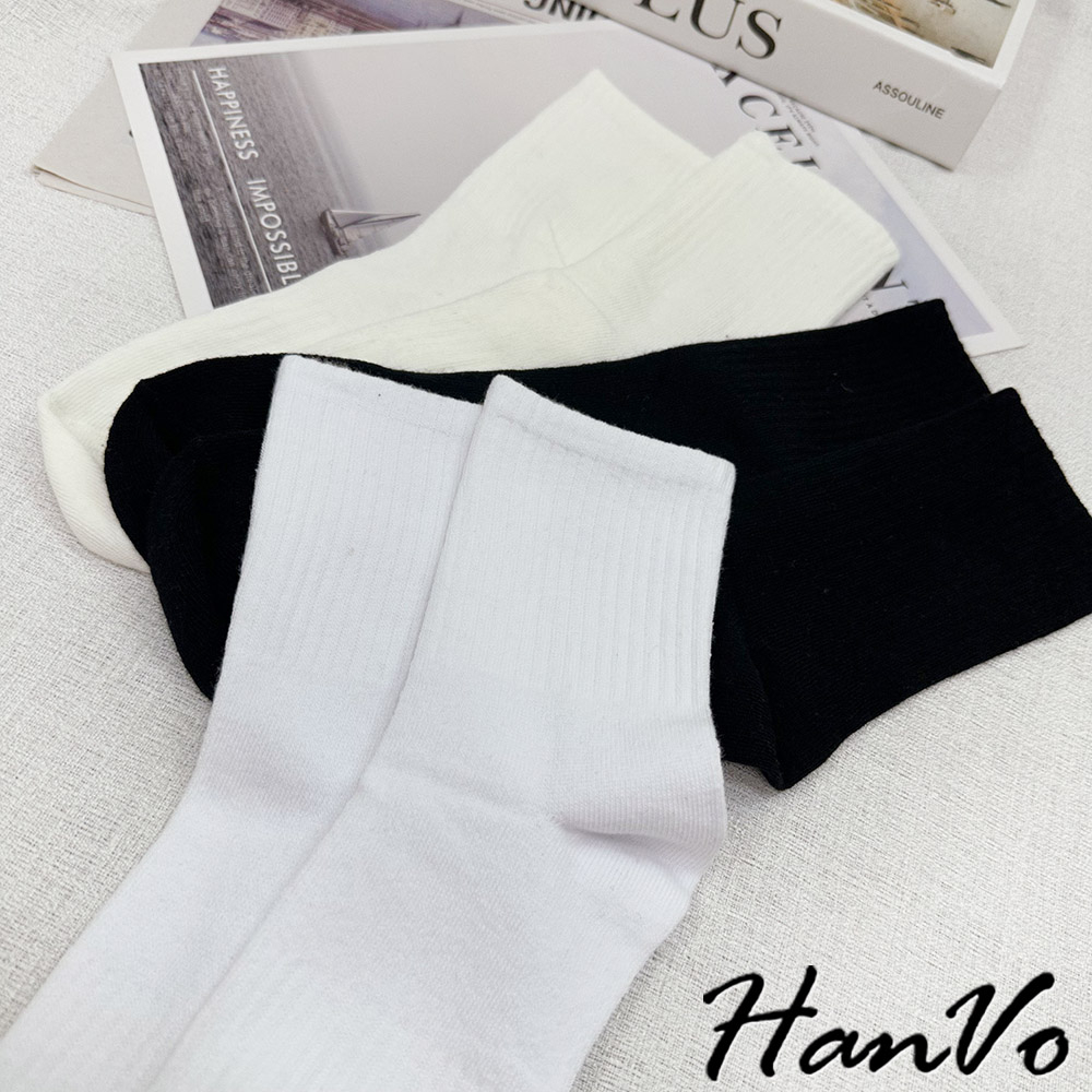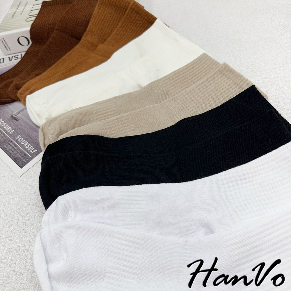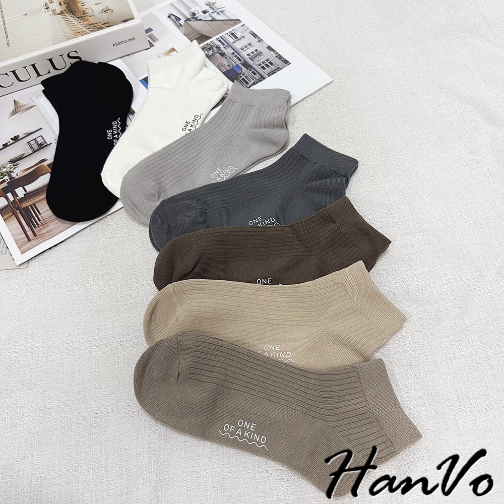 【HanVo】男款簡約純色棉質透氣襪 潮流時尚休閒襪 百搭舒適運動襪 男生配件 B07-7034卡其色|深木咖|可可咖|石板灰|淡霧灰|森林黑|綿羊白HanVo Wear Collection