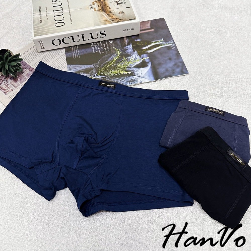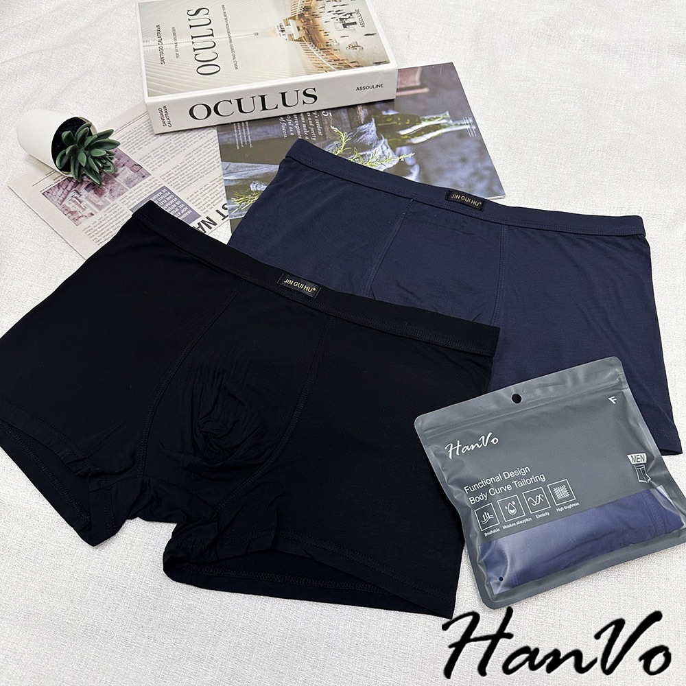 【HanVo】英文小標莫代爾時尚內褲 簡約親膚柔軟中腰 獨立包裝 流行男款內褲 內著 B05-5059午夜黑|皇家藍|熔岩灰UnderwearHanVo Wear Collection