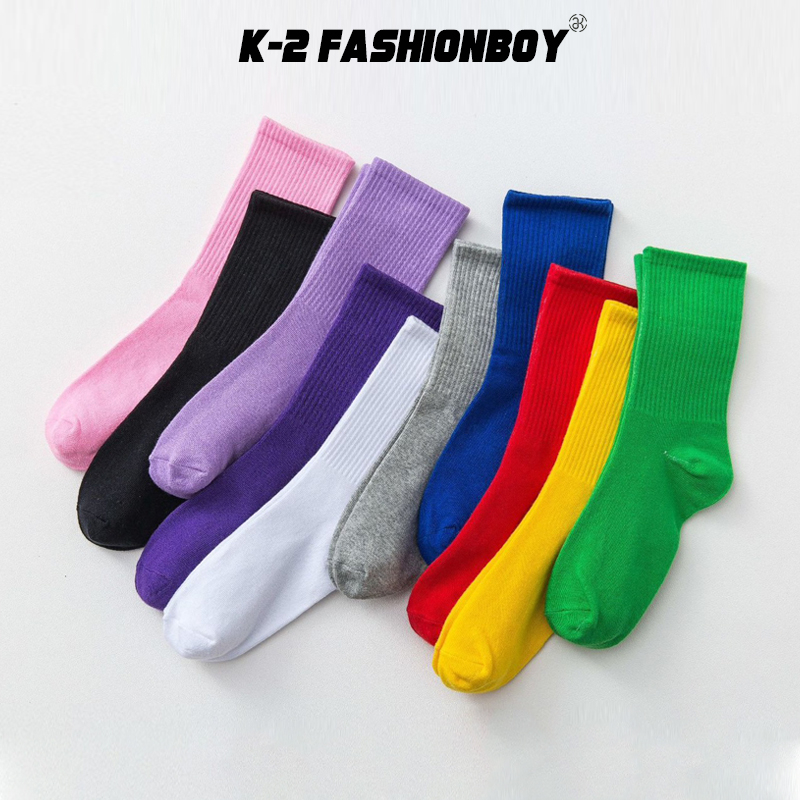【K-2】純棉 工廠直銷 高品質襪子 棉襪 長襪 素襪 中筒襪 穿搭 VIBE Y2K 糖果襪 襪子 襪【KM101】紫色|紅色|寶藍色|淡紫色|黃色|綠色|粉色|灰色|白色|黑色K-2 Fashionboy