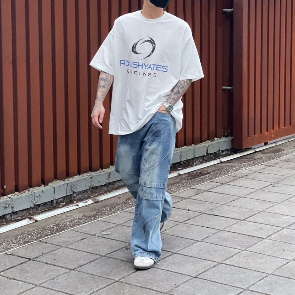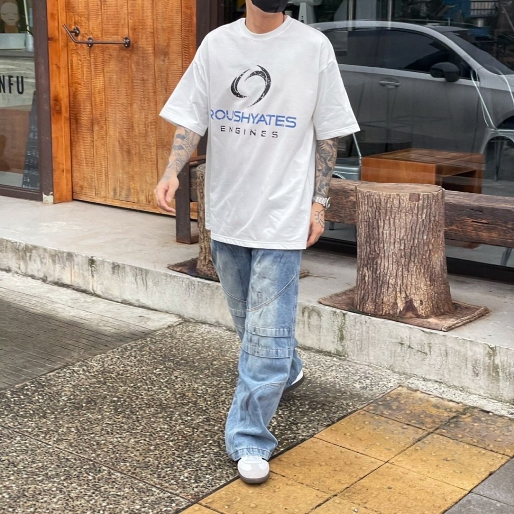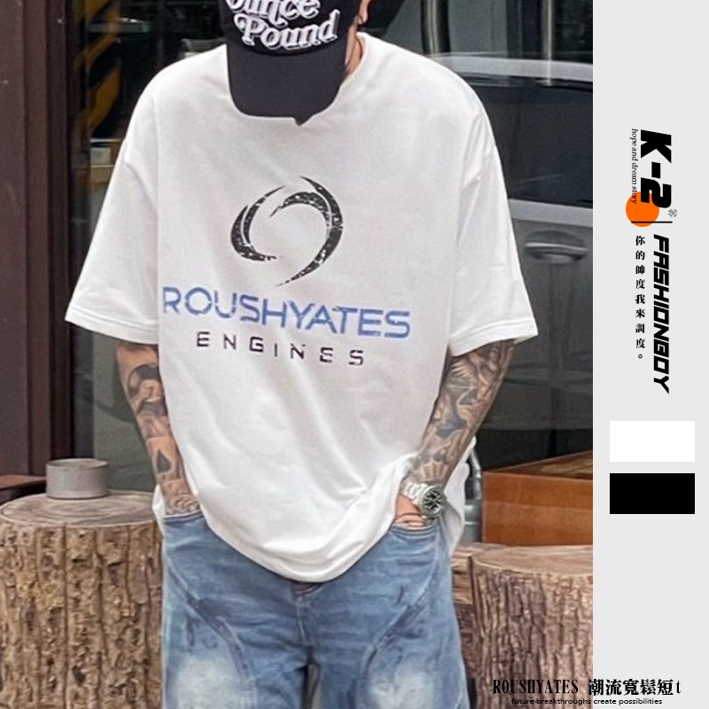 【K-2】ROUSHYATES ENGINES 潮流 LOGO 落肩 寬鬆 OOTD 短袖 上衣 短T【k2690】白色|黑色T-ShirtsK-2 Fashionboy