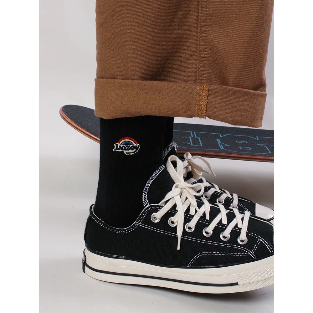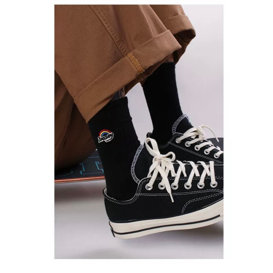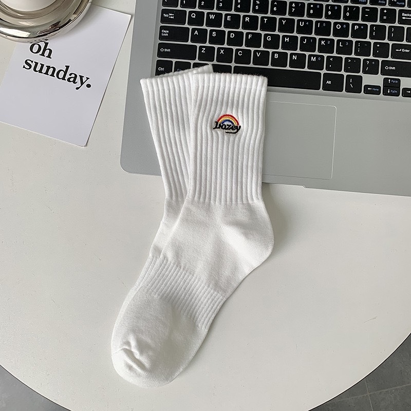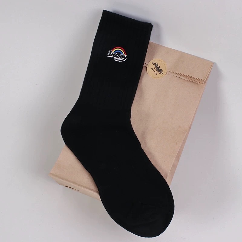 【K-2】刺繡彩虹襪 純棉 長襪 高筒襪 刺繡 美式 彩虹 男襪 女襪 運動襪 襪子 襪 穿搭襪 街頭【KM150】白色|黑色K-2 Fashionboy