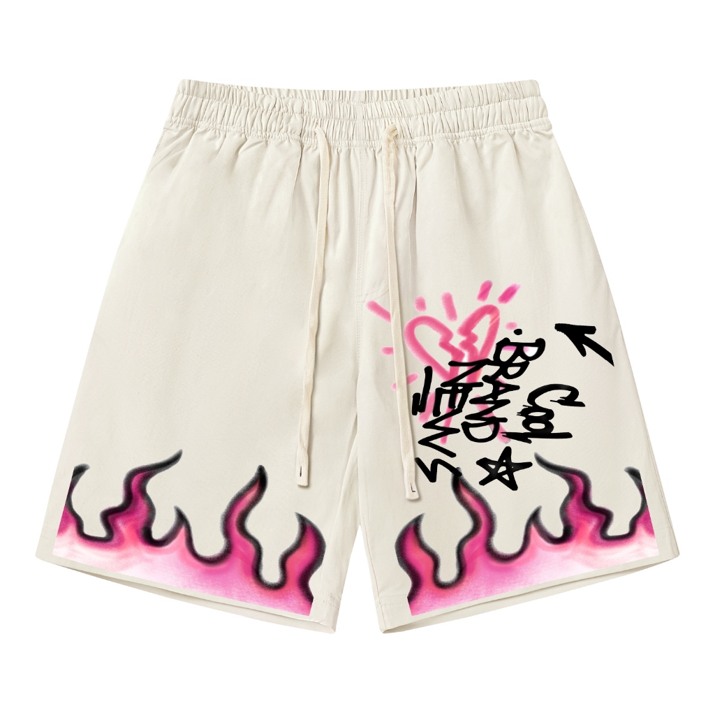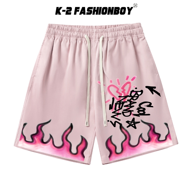 【K-2】美式 街頭 火焰 塗鴉 心碎愛心 箭頭 抽繩 尼龍短褲 短褲 穿搭 個性 男女不拘 粉色短褲【JD544】粉,M|粉,L|粉,XL|杏,M|杏,L|杏,XLK-2 Fashionboy