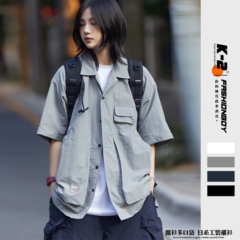 【K-2】台灣出貨 日系工裝襯衫 開衫 多口袋 設計感 大口袋 襯衣 夏季寬鬆短袖 多色可選 短袖男【KC969】白色,L|白色,XL|白色,2XL|白色,3XL|灰色,L|灰色,XL|灰色,2XL|灰色,3XL|黑色,L|黑色,XL|黑色,2XL|黑色,3XL|藏青色,L|藏青色,XL|藏青色,2XL|藏青色,3XLShirtsK-2 Fashionboy