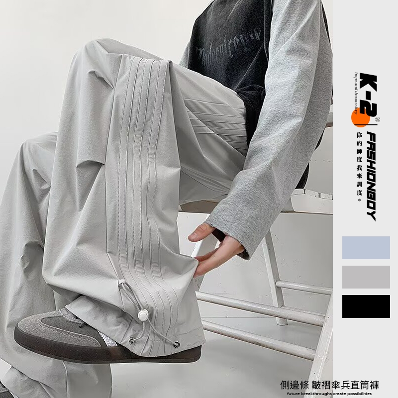 【K-2】美式休閒 傘兵皺褶 直筒褲 休閒長褲 多巴胺 復古長褲 直筒長褲 小扣環 側邊條 工裝褲 Y2K【JK788】灰色,M|灰色,L|灰色,XL|灰色,XXL|藍色,M|藍色,L|藍色,XL|藍色,XXL|黑色,M|黑色,L|黑色,XL|黑色,XXLCargoK-2 Fashionboy