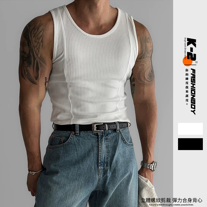 【K-2】立體 螺紋剪裁彈力背心 吊嘎 裁縫 彈力 純棉 基本款 素背心 彈性 內搭 百搭 背心 健身 運動 K2 帥白色,L|白色,XL|白色,2XL|白色,3XL|黑色,L|黑色,XL|黑色,2XL|黑色,3XLTanksK-2 Fashionboy