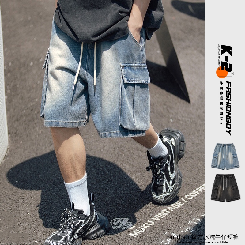 【K-2】outdoor 復古水洗 牛仔工作褲 牛仔短褲 牛仔褲 工作褲 工裝 山系 短褲 Y2K 褲子【W2257】水洗藍,M|水洗藍,L|水洗藍,XL|水洗黑,M|水洗黑,L|水洗黑,XLK-2 Fashionboy