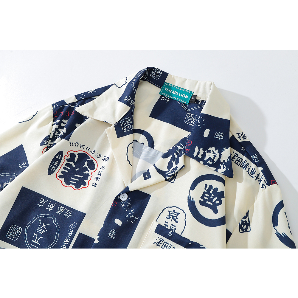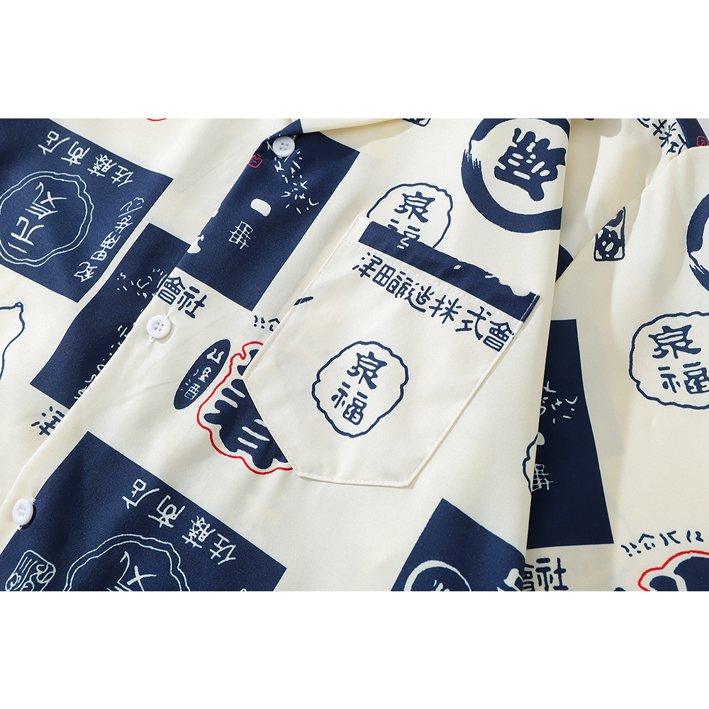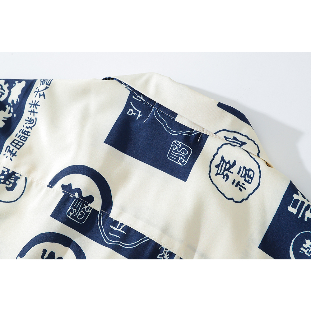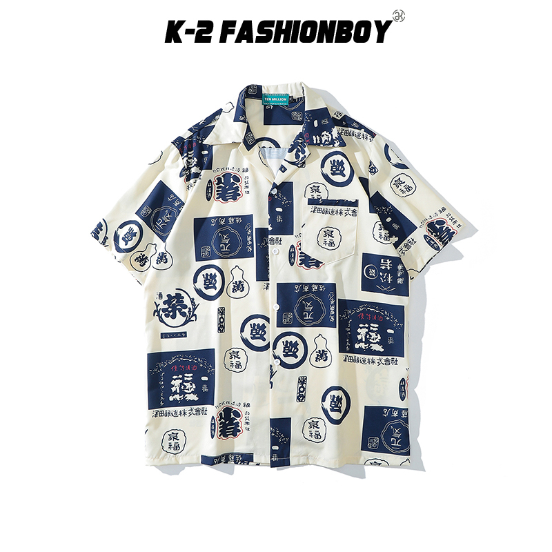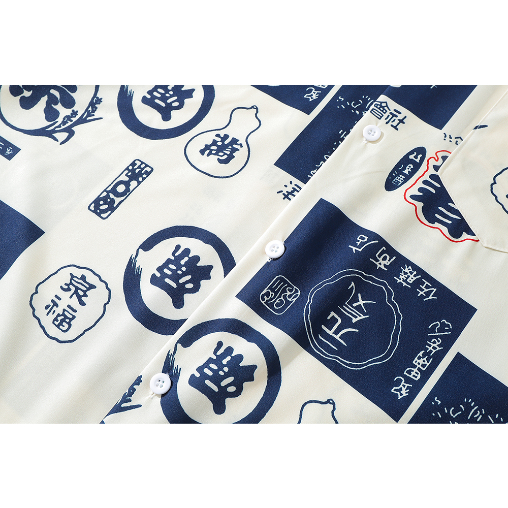 【K-2】元氣 茶 居酒屋 復古 短袖襯衫 滿版 花襯衫 old school穿搭 翻領 襯衫 短T【A77103】M|L|XL|XXLShirtsK-2 Fashionboy