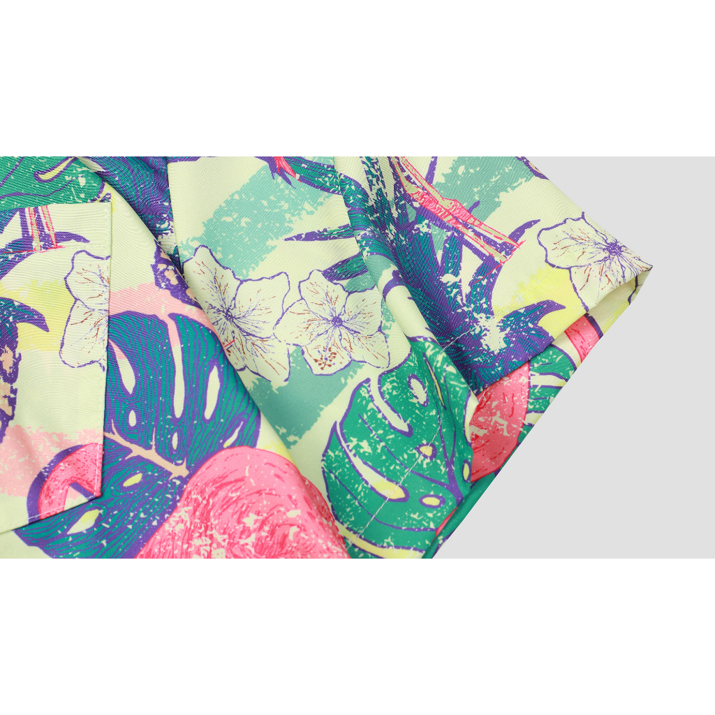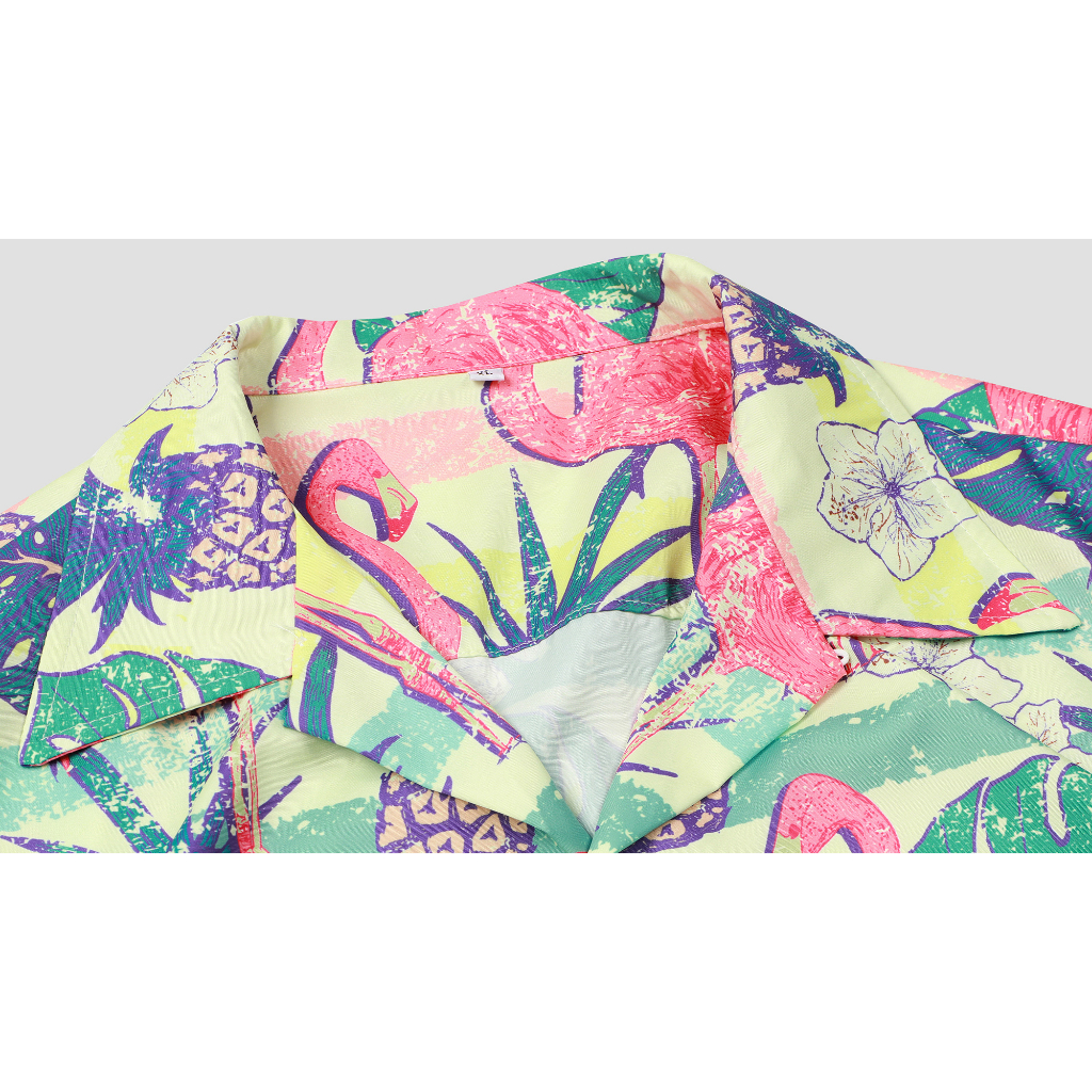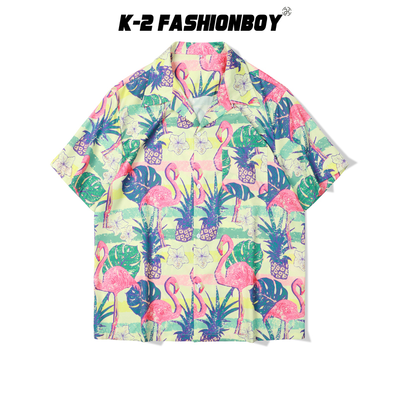 【K-2】鳳梨 荷葉 丹頂鶴 粉色鶴 滿版 小花 口袋襯衫 短袖襯衫 穿搭 夏日 情侶 海邊 衝浪【A3356】XL|XXL|M|LShirtsK-2 Fashionboy