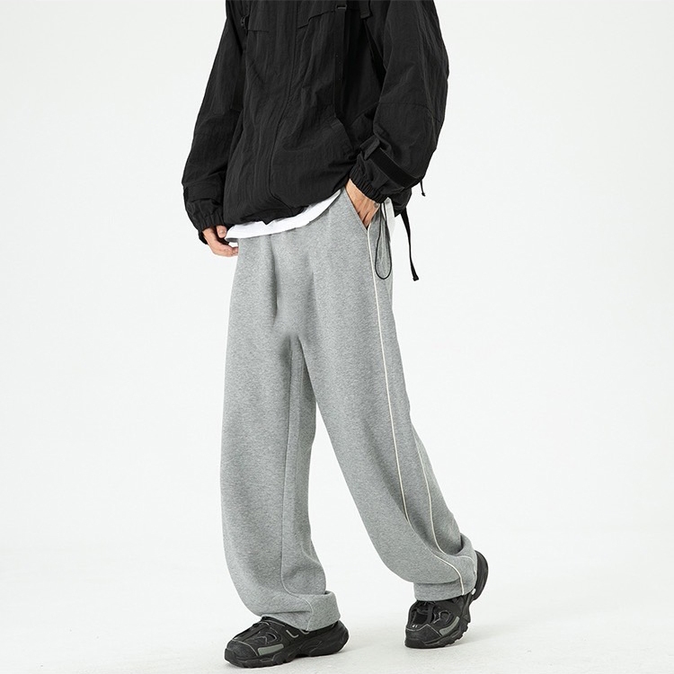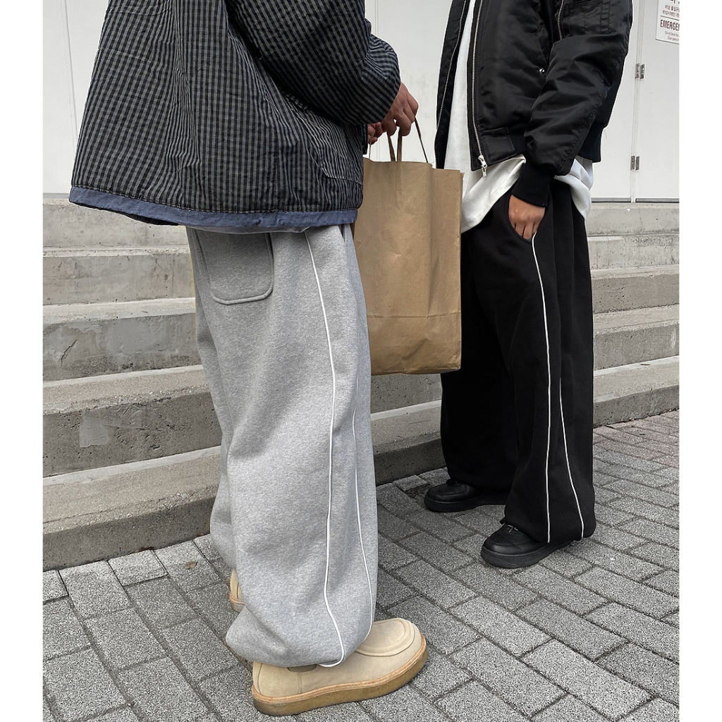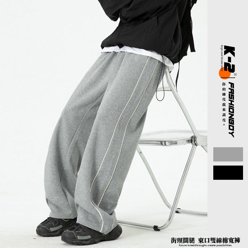 【K-2】CITYBOY 白邊 雙線 直筒 重磅棉褲 落地 棉長褲 束口褲 直筒褲 休閒長褲 Y2K 滑版【W62】灰色,M|灰色,L|灰色,XL|黑色,M|黑色,L|黑色,XLPantsK-2 Fashionboy