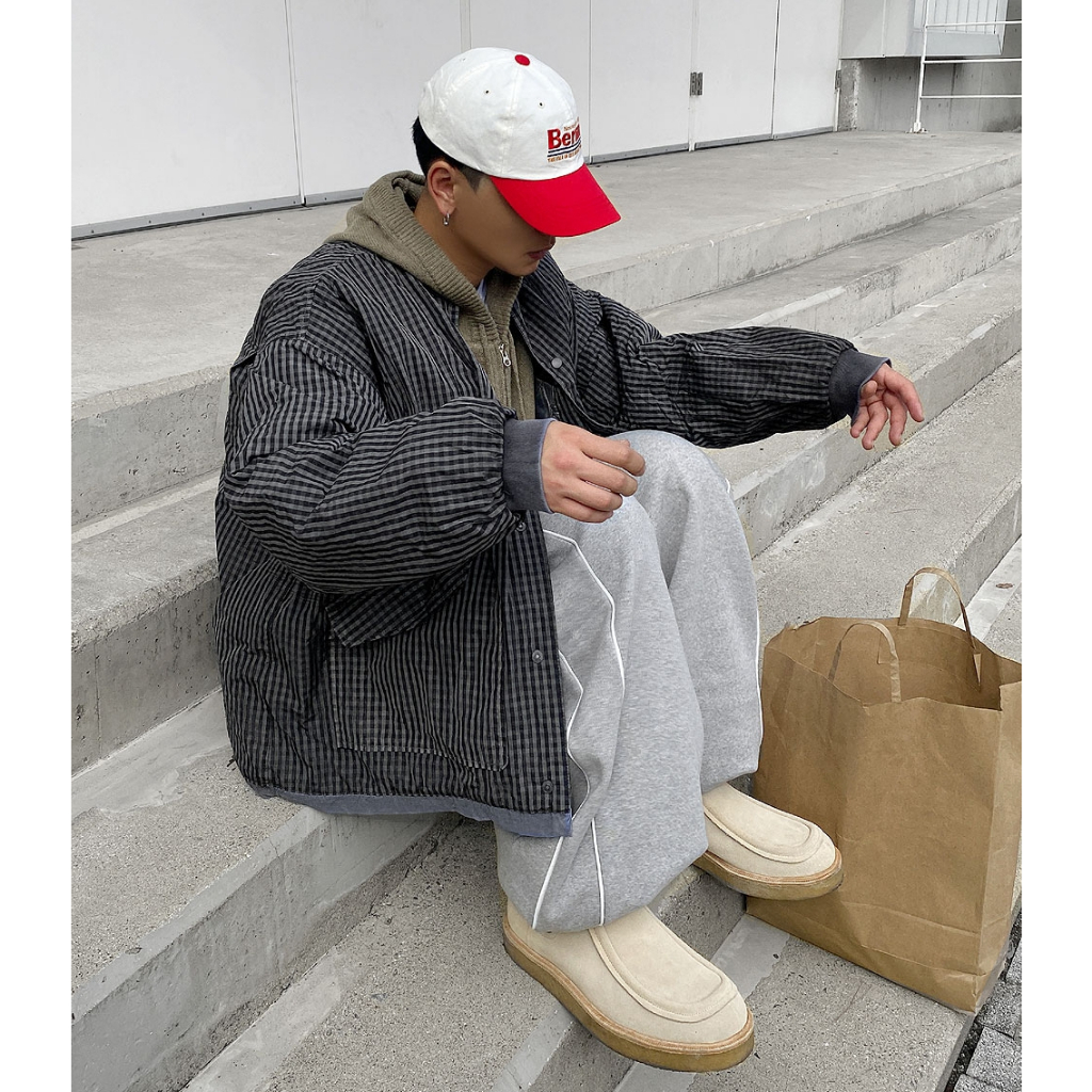 【K-2】CITYBOY 白邊 雙線 直筒 重磅棉褲 落地 棉長褲 束口褲 直筒褲 休閒長褲 Y2K 滑版【W62】