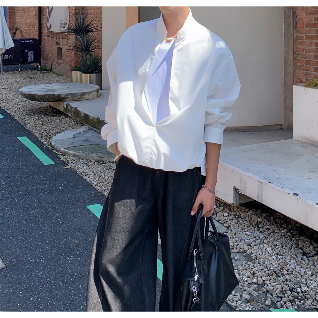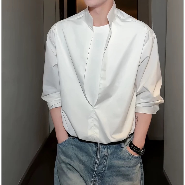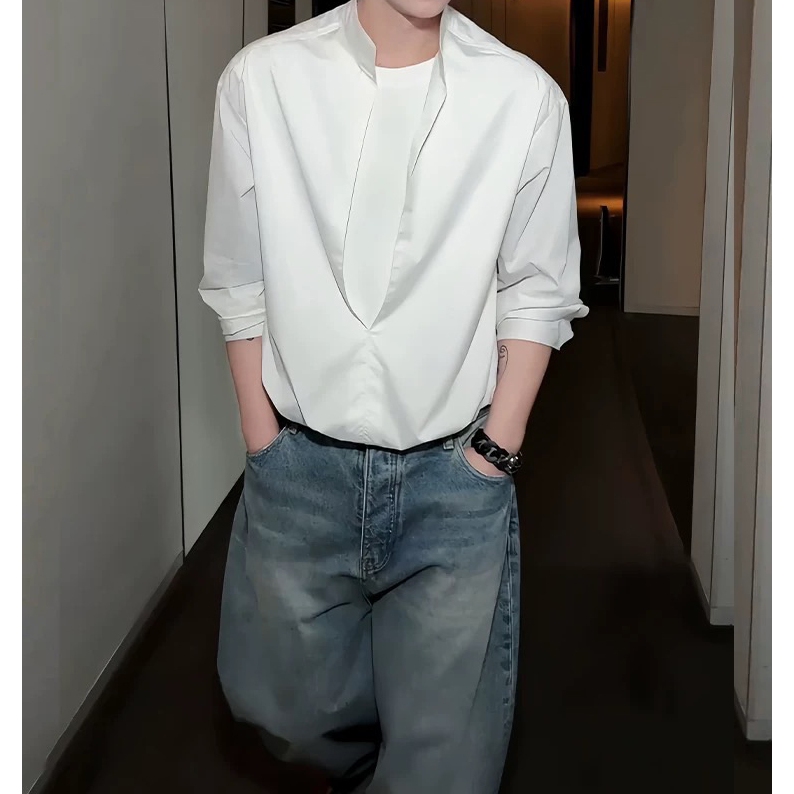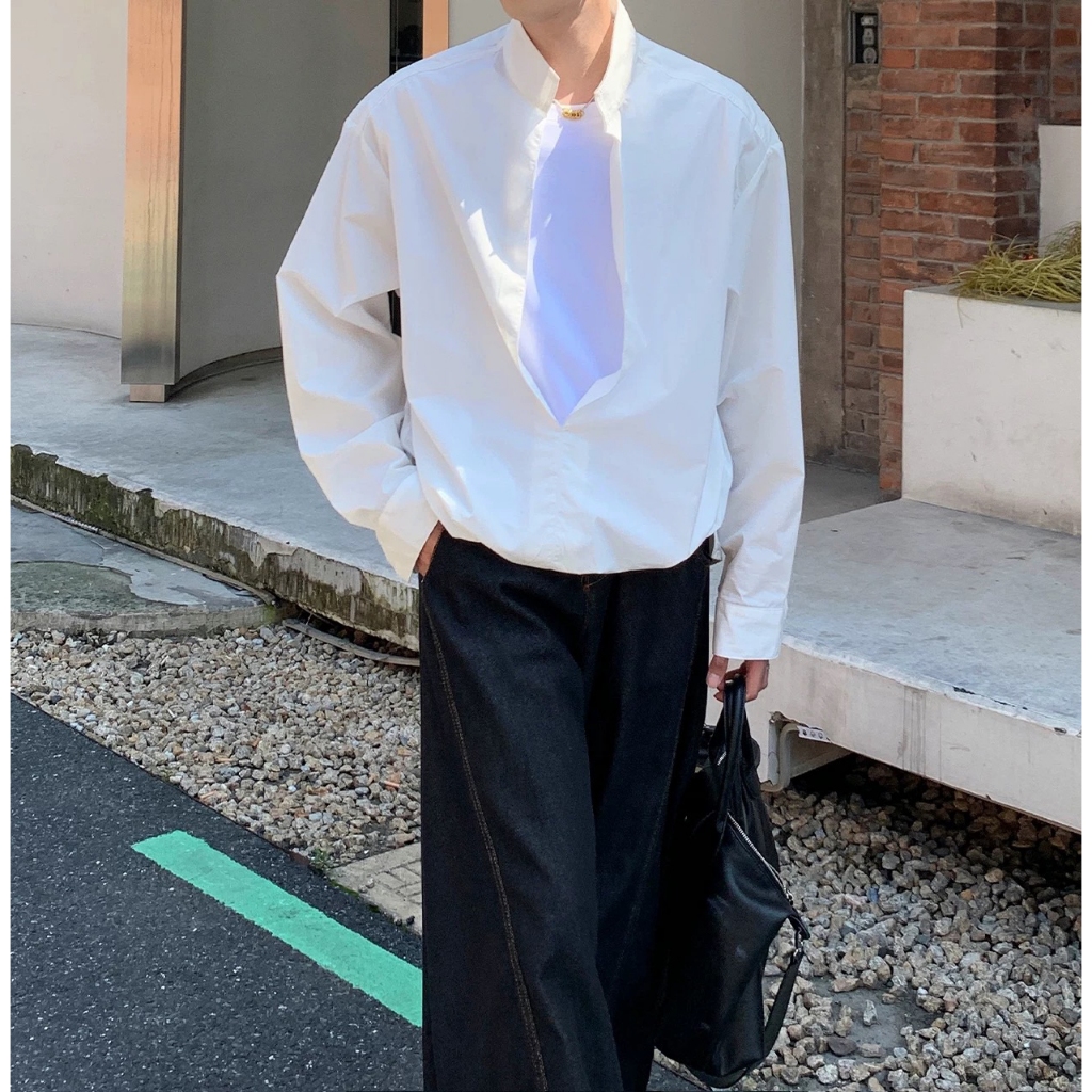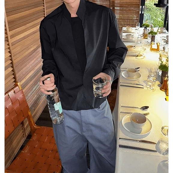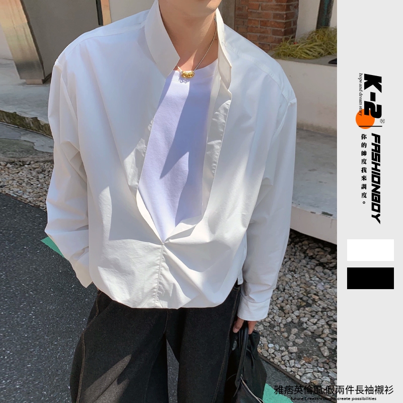 【K-2】雅痞英倫風 假兩件長袖襯衫 造型襯衫 半開 襯衫 長袖襯衫 偶像 Idol 男模會館 模子 男模【JX63】白色,L|白色,XL|白色,XXL|黑色,L|黑色,XL|黑色,XXLShirtsK-2 Fashionboy