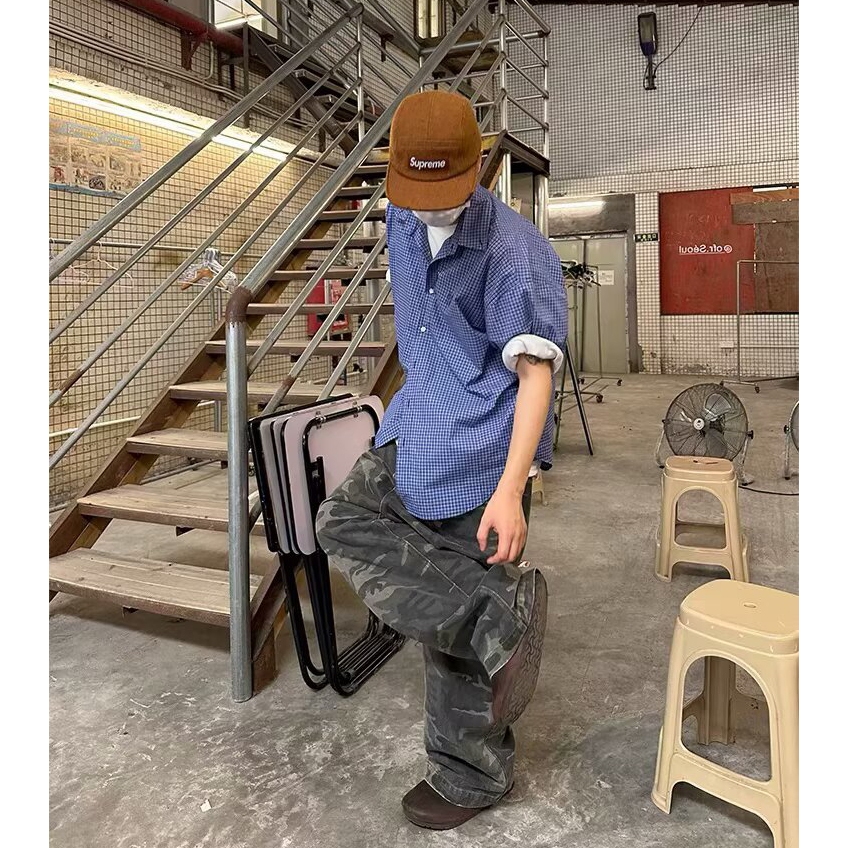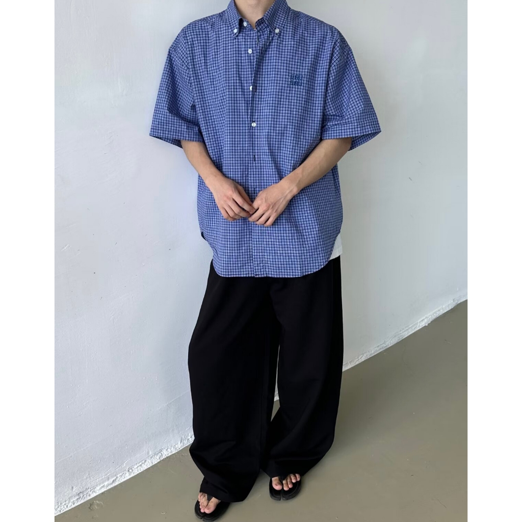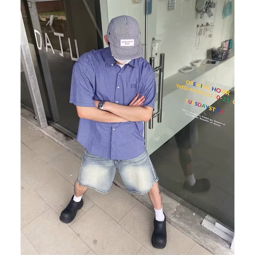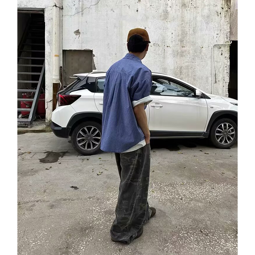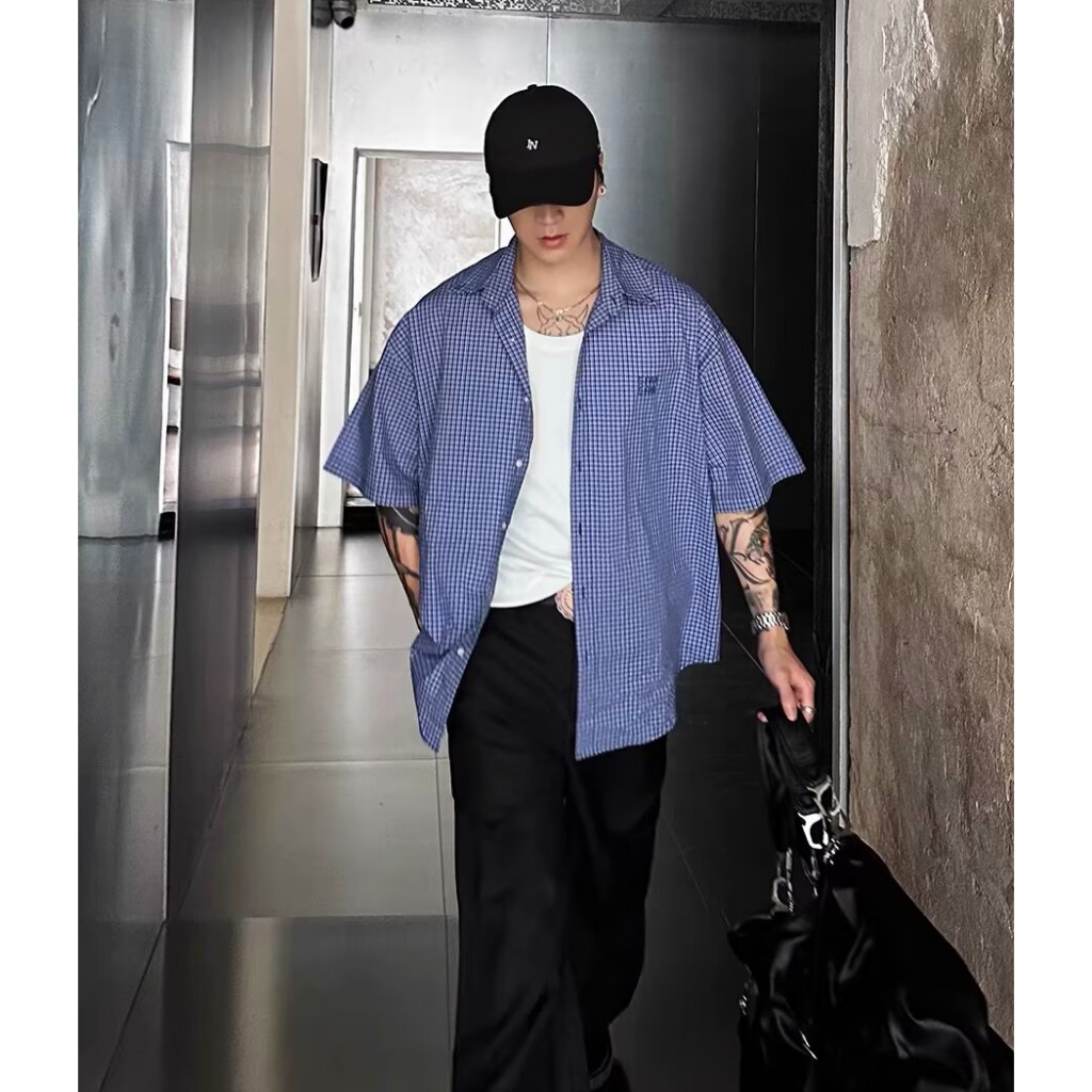 【K-2】刺繡LOGO 小格子 格紋襯衫 藍色襯衫 短袖襯衫 Y2K 襯衫 格子襯衫 復古襯衫 K2【JC354】M|LShirtsK-2 Fashionboy