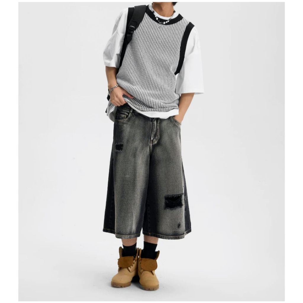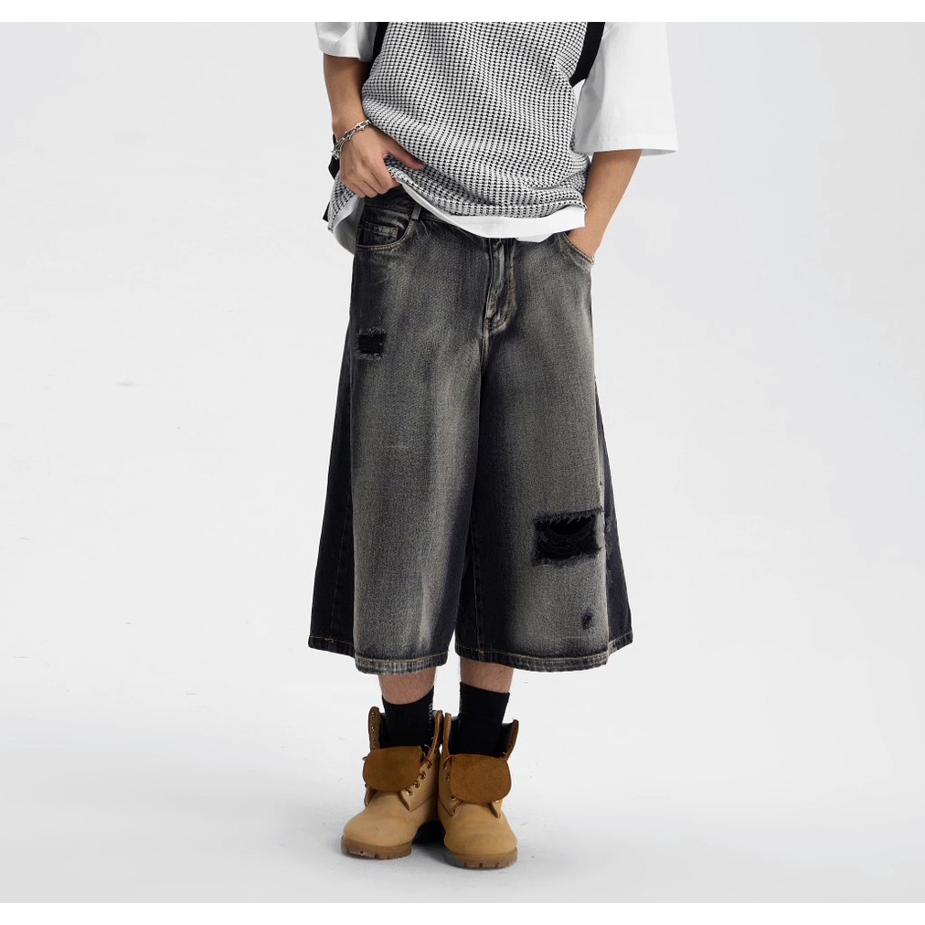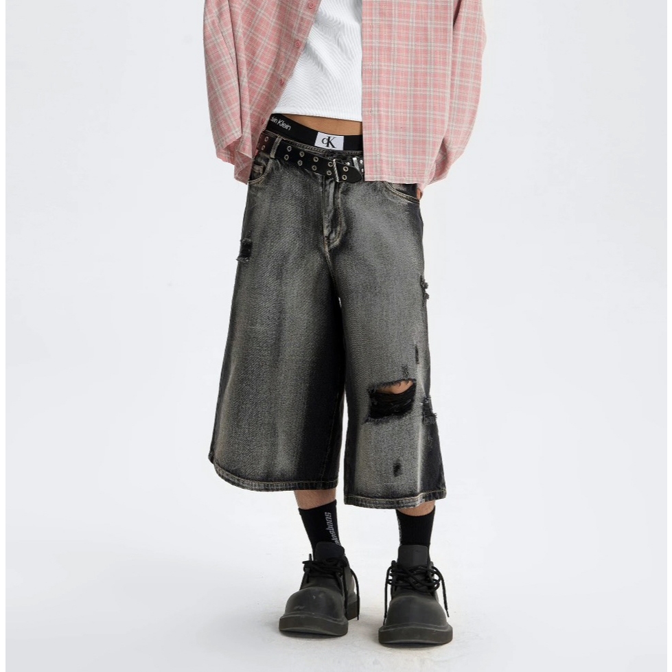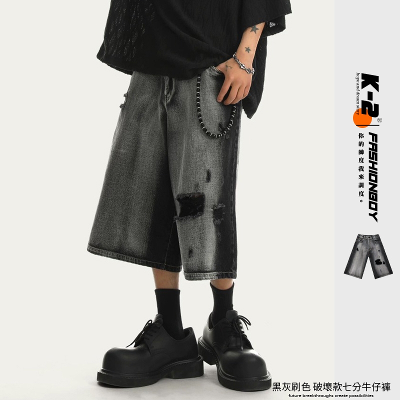 【K-2】黑灰水洗刷色 墨紋扎染設計 破洞 破壞款 七分褲 牛仔褲 短褲 牛仔七分褲 七分牛仔褲 褲子【JK2611】M|L|XL|XXLK-2 Fashionboy