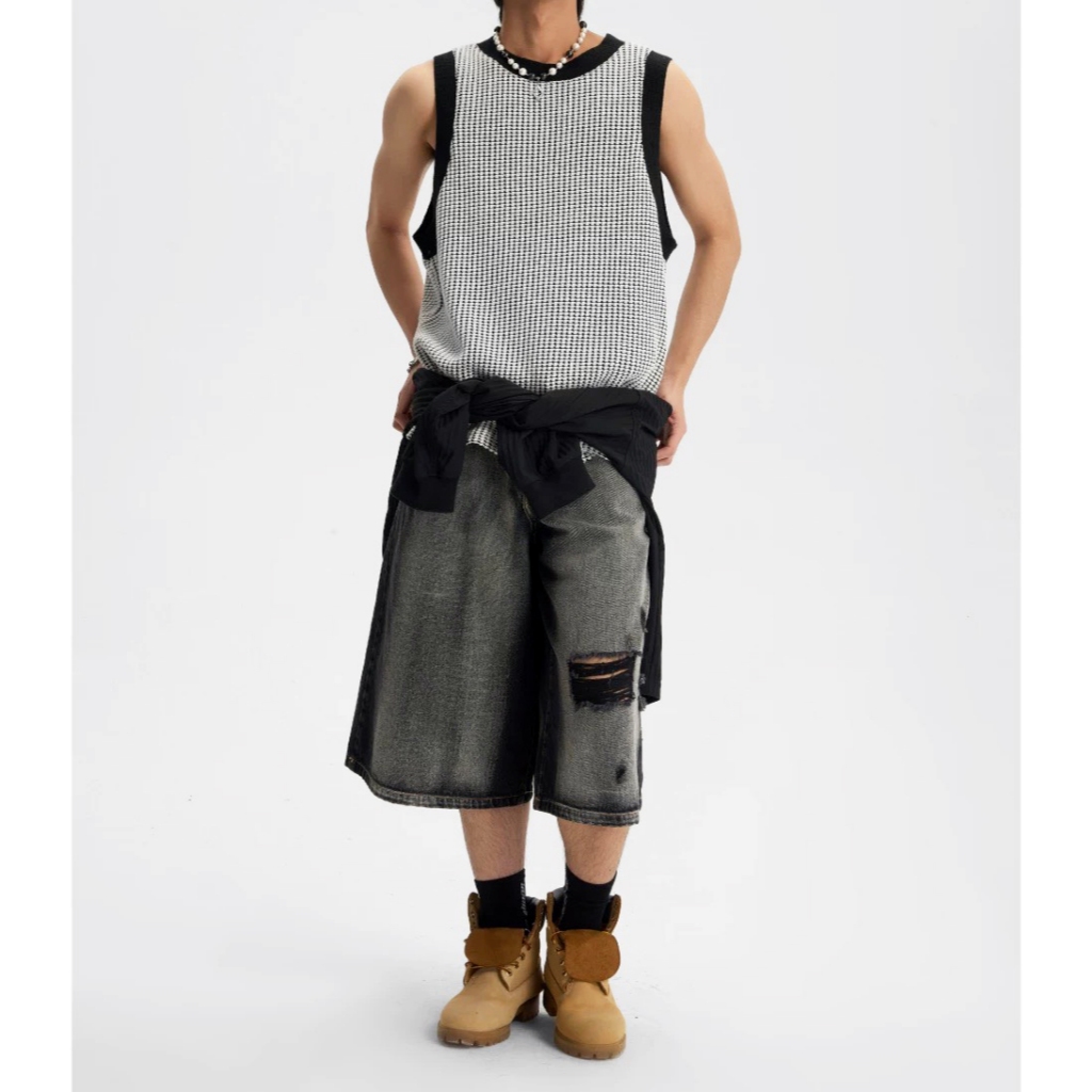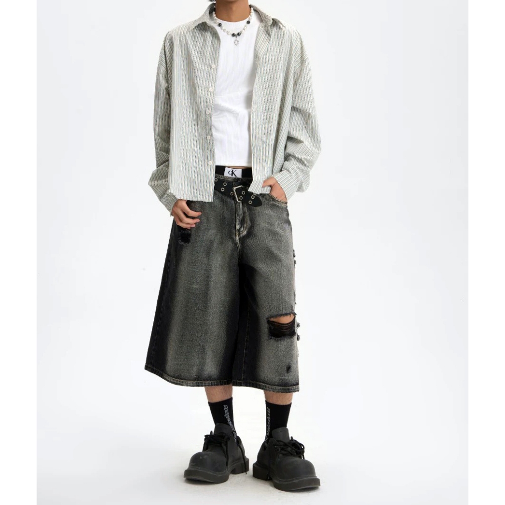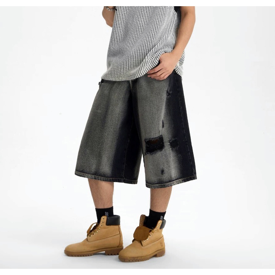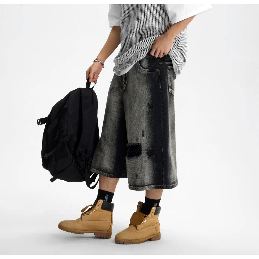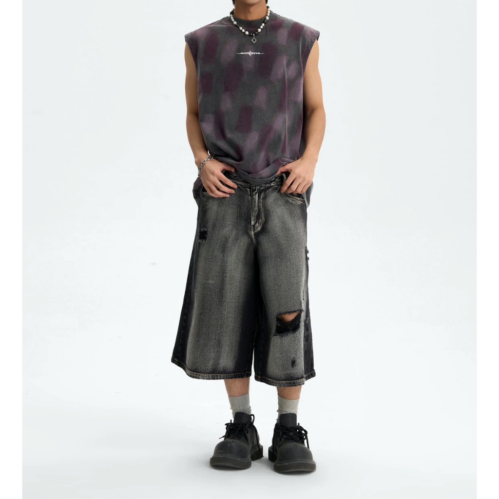 【K-2】黑灰水洗刷色 墨紋扎染設計 破洞 破壞款 七分褲 牛仔褲 短褲 牛仔七分褲 七分牛仔褲 褲子【JK2611】M|L|XL|XXLK-2 Fashionboy