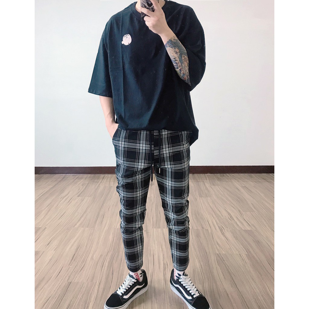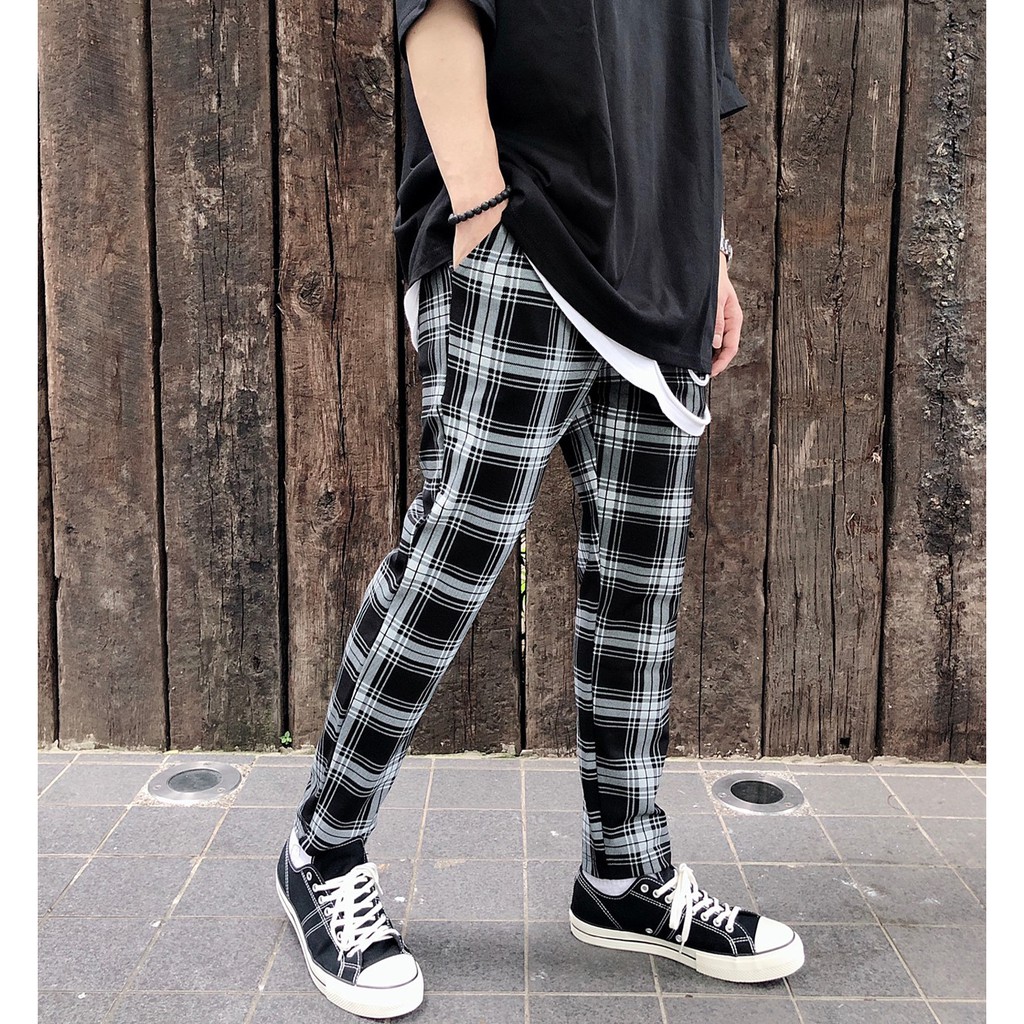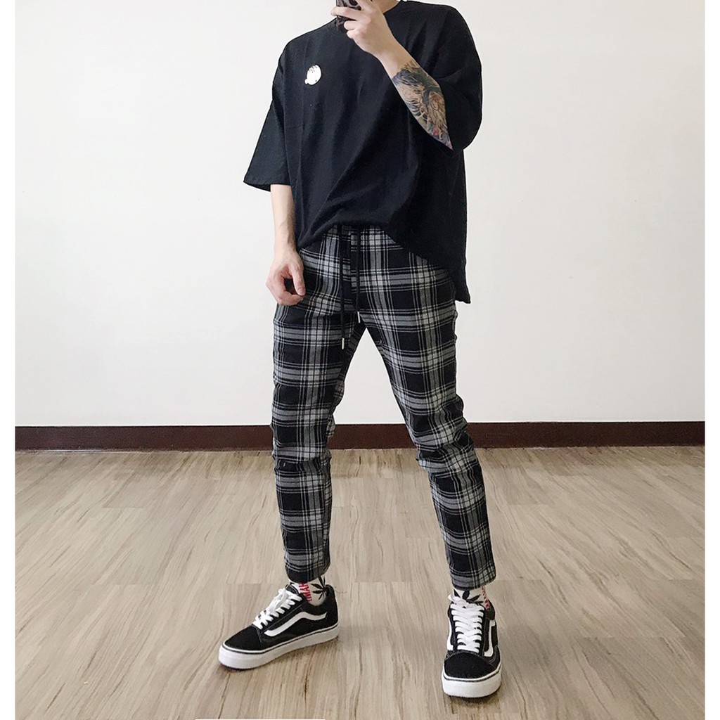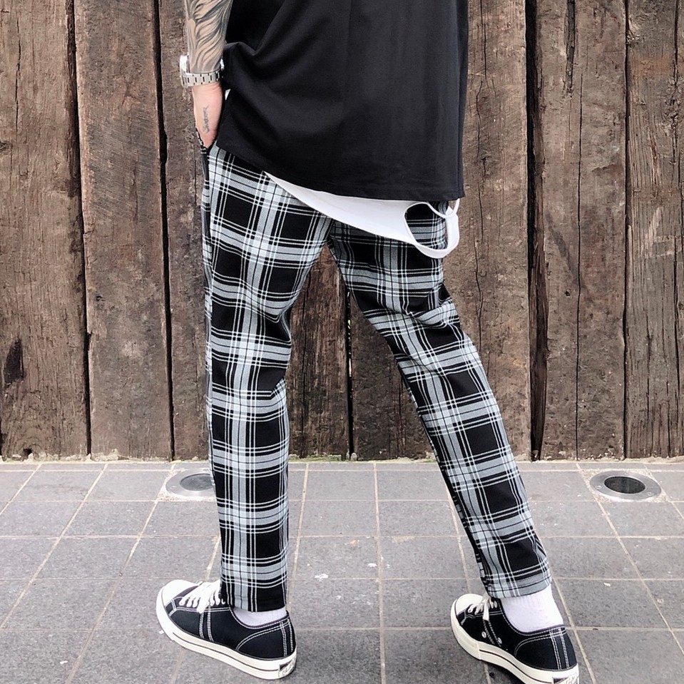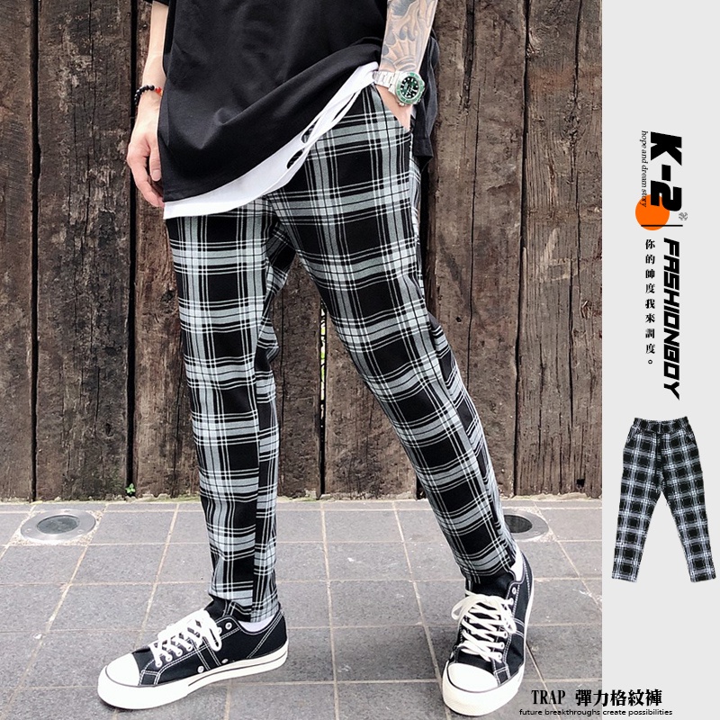 【K-2】韓國 TRAPBAE 彈性 格紋 九分褲 格子褲 微寬褲 鬆緊抽繩 休閒長褲 男女不拘 彈力褲【K25】S|M|L|XLPantsK-2 Fashionboy