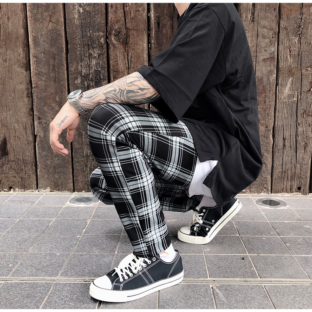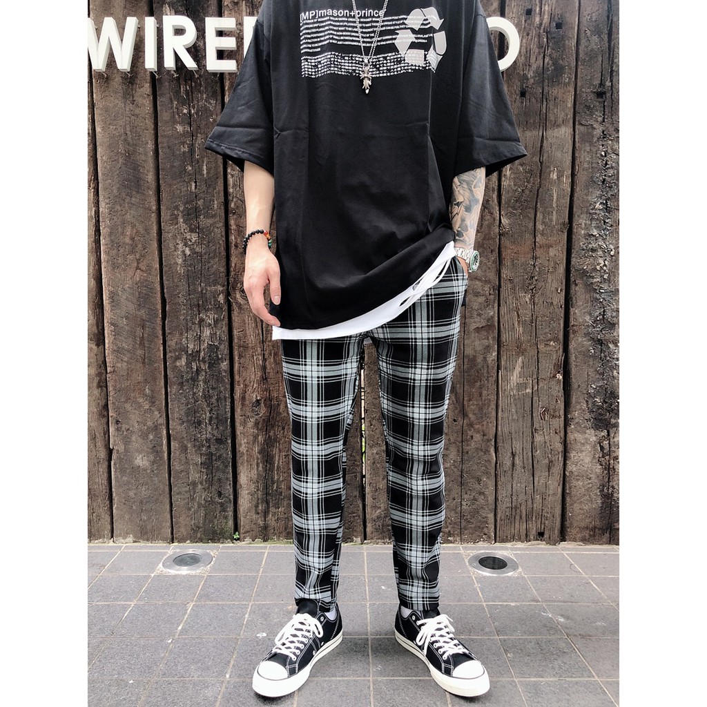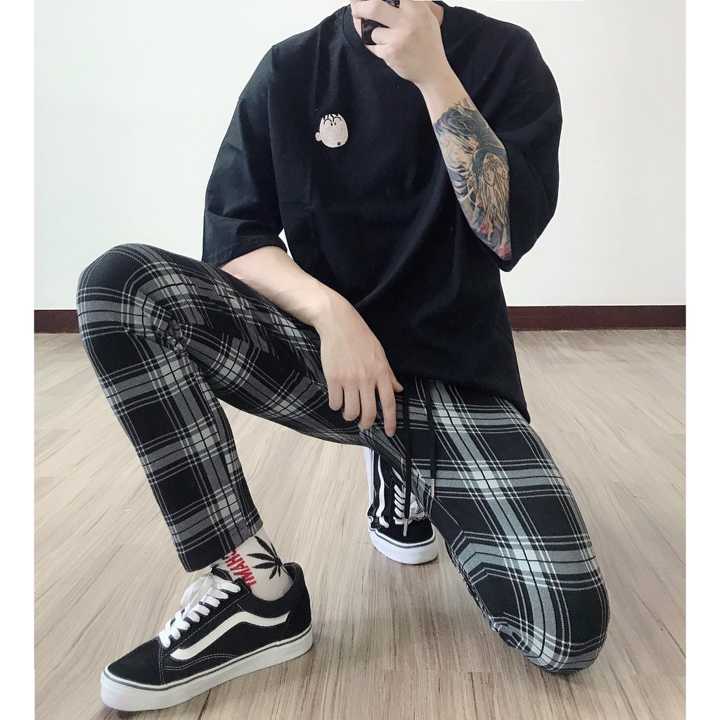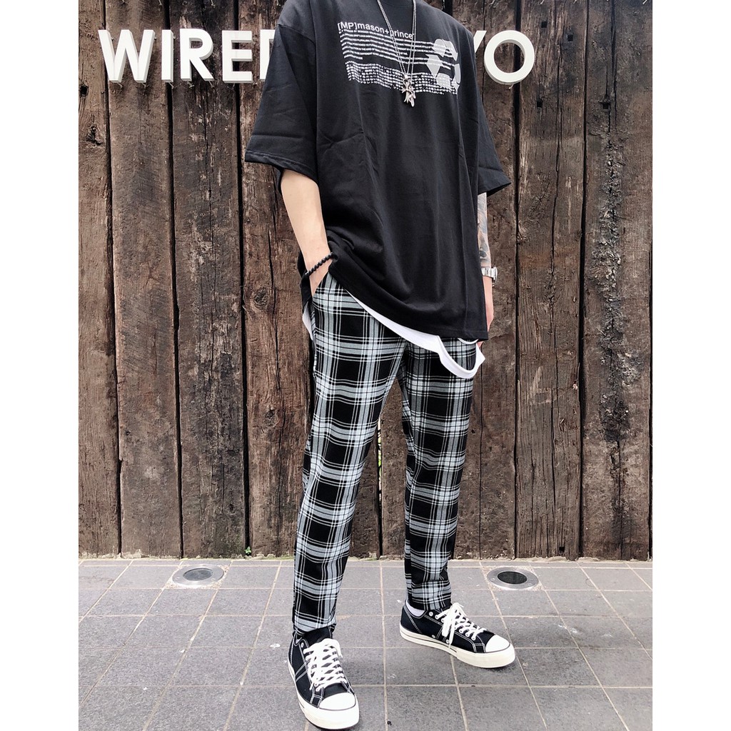 【K-2】韓國 TRAPBAE 彈性 格紋 九分褲 格子褲 微寬褲 鬆緊抽繩 休閒長褲 男女不拘 彈力褲【K25】S|M|L|XLPantsK-2 Fashionboy